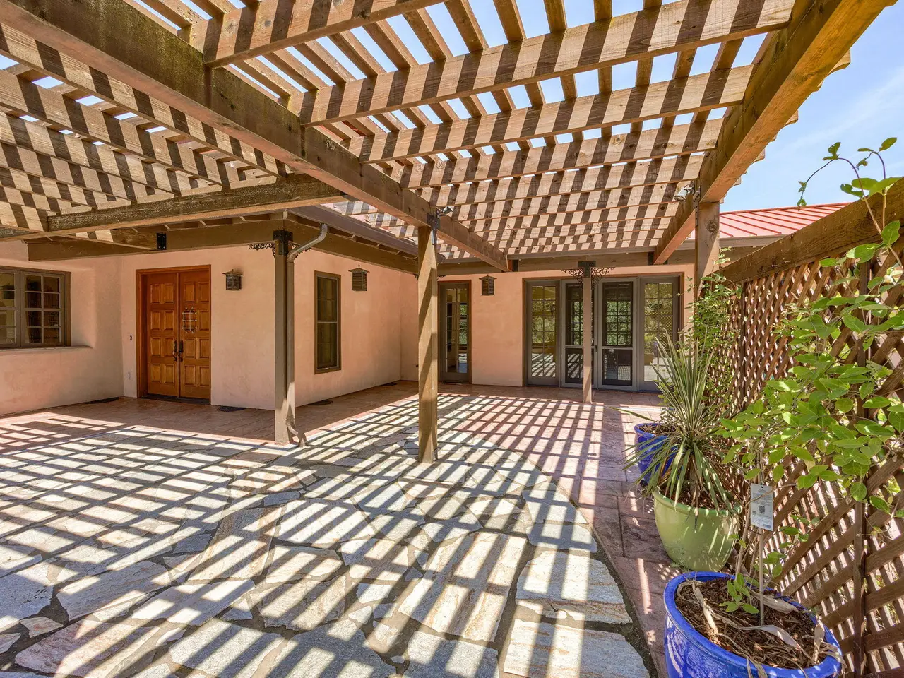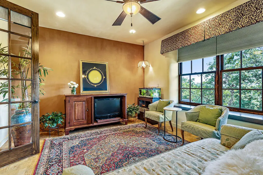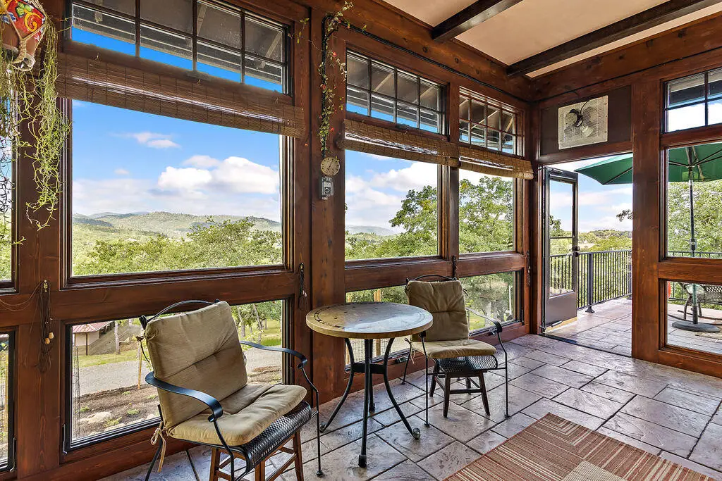 Custom Strawbale-insulated serene spa-like living w/stunning views. Paved drive w/elec gate opens to 6.62 fncd acres w/organic garden. Stucco ext w/fenced courtyard, flagstone walkways, heated swimming pool, palm trees, window boxes & nite lighting. Wood-clad alum windows. Cupolas w/elec windows. Finished 2 car garage plumbed for bathroom. Stunning interior bamboo and cork floors, great room w/10' beamed ceiling & soapstone wdstv. 8' French doors lead from dining room to sunroom which opens to patio. Open kitchen has 5 burner cooktop, dbl conv ovens, coffee bar, granite counters & cherry cabinets. Mstr suite opens to courtyard, includes dbl sinks, claw foot tub, glass shower & tiled floors. Guest ste & 3rd bedroom/den leading to crtyrd. Upstairs 230 sf office w/360˚ views. 1200 sf insul out-bldg wired for 220, HVAC, full bath, mini kitchen, professional recording studio or home theater, 300 sf deck w/valley views & 1000 sf carport. Irrigated w/10,000-gallon rainwater catchment
