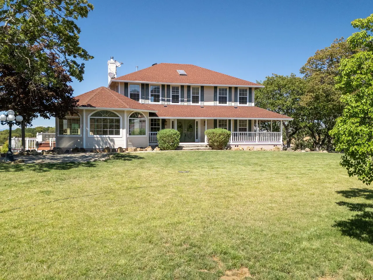 Southern Oregon Dream Ranch! Barn/shop, Playhouse and detached office with loft space, slider and 4-car garage. The home sits up on a knoll that has amazing views of the Rogue Valley, and tons of windows to take in the views. Large sunroom, library with a wood stove and built-ins, wood floors. Kitchen with Cherrywood cabinet with pull outs, slate floor convection oven, 4 door refrigerator, dual fuel oven. Master on the main level, walk-in closet, large shower, sauna, double sinks, French doors to a covered deck. Large family room upstairs with 2 bedrooms and full bathroom with a claw foot tub tile floor and 1/2 bath. Large laundry room with laundry chute and storage. Downstairs would make a great work out room or office with lots of windows and door to outside. Gated entry.