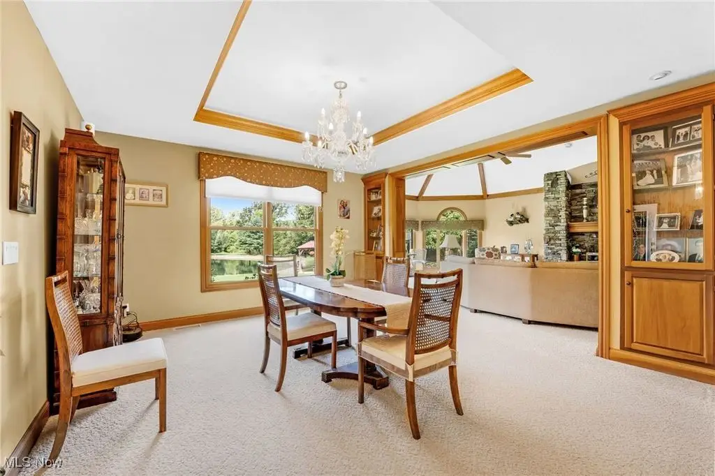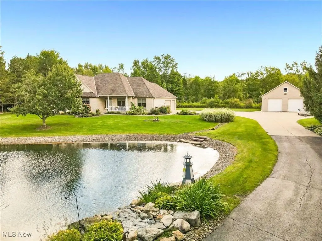 Welcome to this beautifully maintained 3 bedroom, 2.5 bath ranch offering over 4,000 sqft of total living space, nestled on a picturesque property complete with a private pond and lush tree-lined backdrop sitting 1,000 feet off the road. This home combines timeless charm with modern amenities, providing the perfect retreat for everyday living and entertaining. Step inside to find an inviting open floor plan with soaring ceilings, a gorgeous stone wood burning fireplace, and large windows that frame serene views of the outdoors. The spacious kitchen features custom hickory cabinetry, granite countertops, and a seamless flow into the dining and living areas. The sunroom with vaulted wood ceilings creates a warm, natural ambiance, while the finished basement offers an additional living area complete with a bar, recreation space, and a cozy home theater setup. The primary suite provides a private sanctuary with a spa-like bath, and two additional bedrooms are generously sized with ample closet space. The 3 car garage include a dog shower station and nature stone flooring. Outdoor living is a dream with a covered patio, fire pit, and sweeping views of the private 1/4 acre stocked pond with lighted waterfall, beach and gazebo; perfect for entertaining or simply relaxing. A 48'x30' pole barn with workshop space offers endless opportunities for hobbies, storage, or equipment. Also for sale is 5715 Vandermark, which is the front of this property, has a 2 Bedroom 884 sqft home that sits on 3.13 acres. Listed for $199,000.