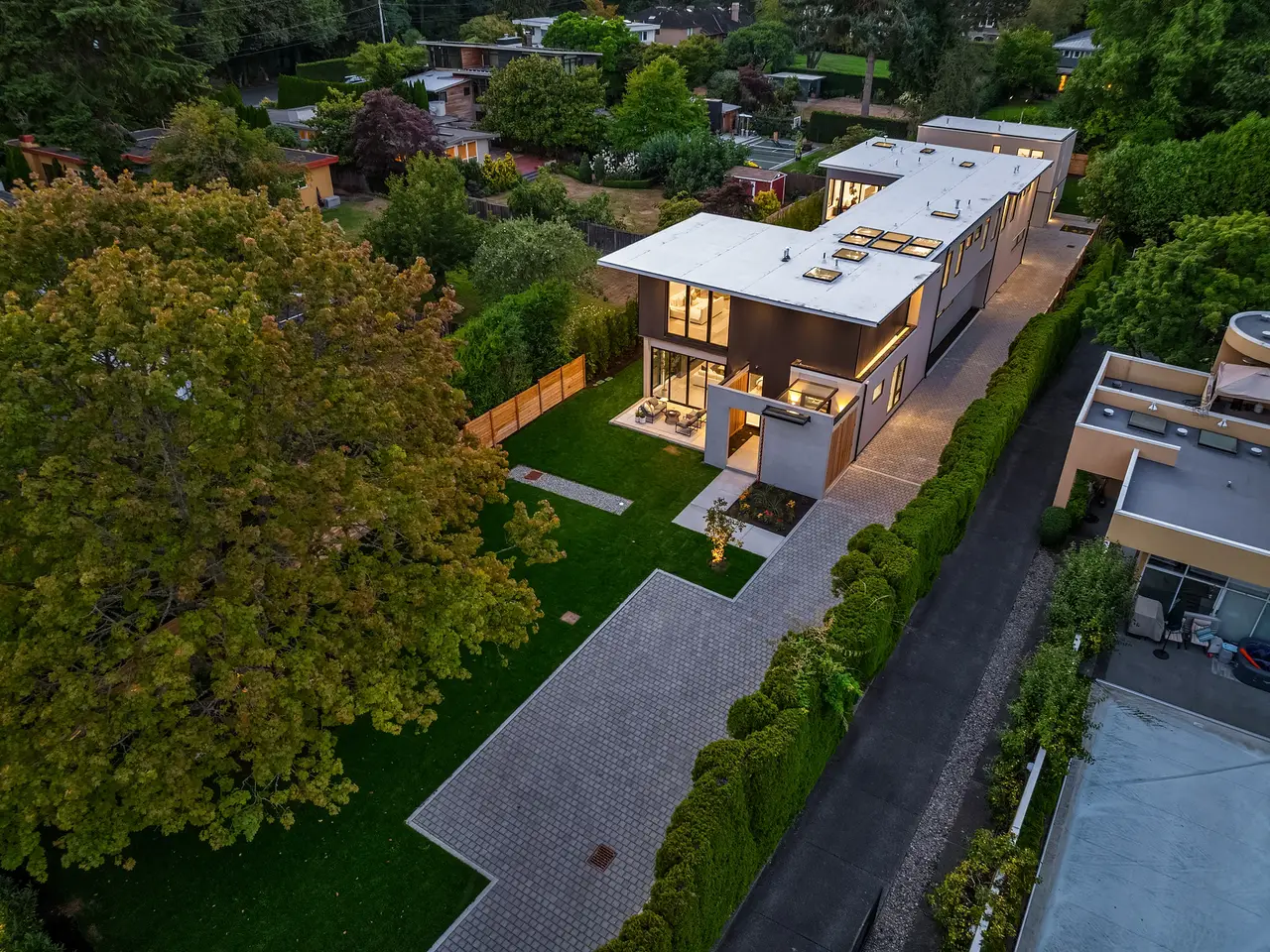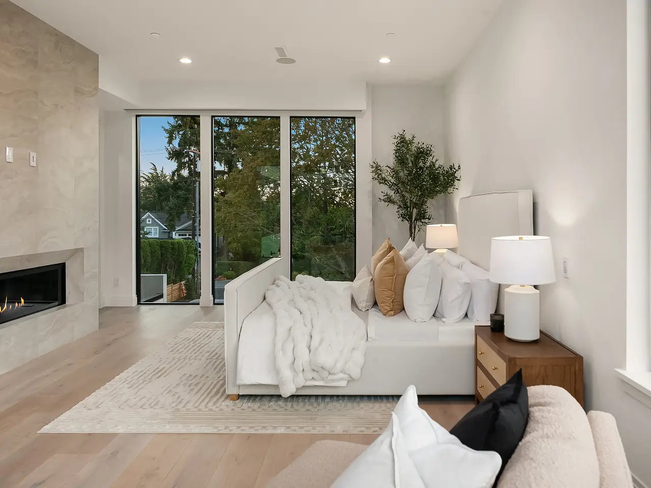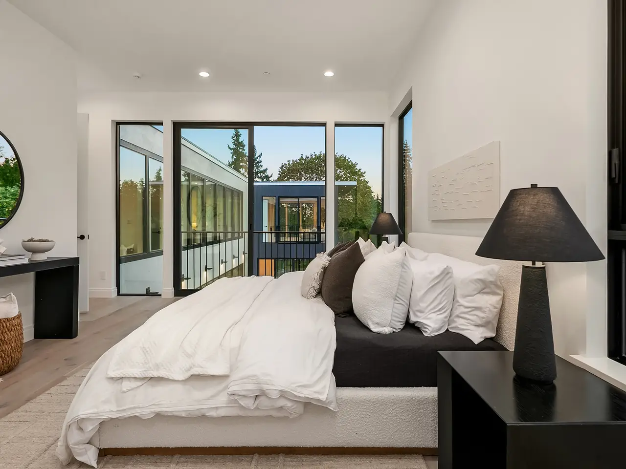 Introducing an extraordinary new build showcasing cutting-edge technology & sophisticated design. Blending luxury & innovation, this architectural masterpiece features 6 beds, bonus room & office + 935sf 1 bedroom ADU. Sited on a private lot on one of Medina's favorite streets w gated driveway. Designed for energy efficiency and convenience with 100% Electric functionality, elevator, solar, dual zero-emission fireplaces, Control4 home automation, built-in speakers, security and surveillance. Gourmet kitchen outfitted with an array of Wolf and SubZero appliances + stunning 18-ft island. Dramatic 40-ft motorized multi-slide door seamlessly connects to private courtyard. 5 beds on upper level including 2 luxurious primary suites & spa baths.