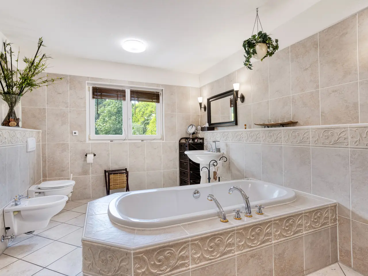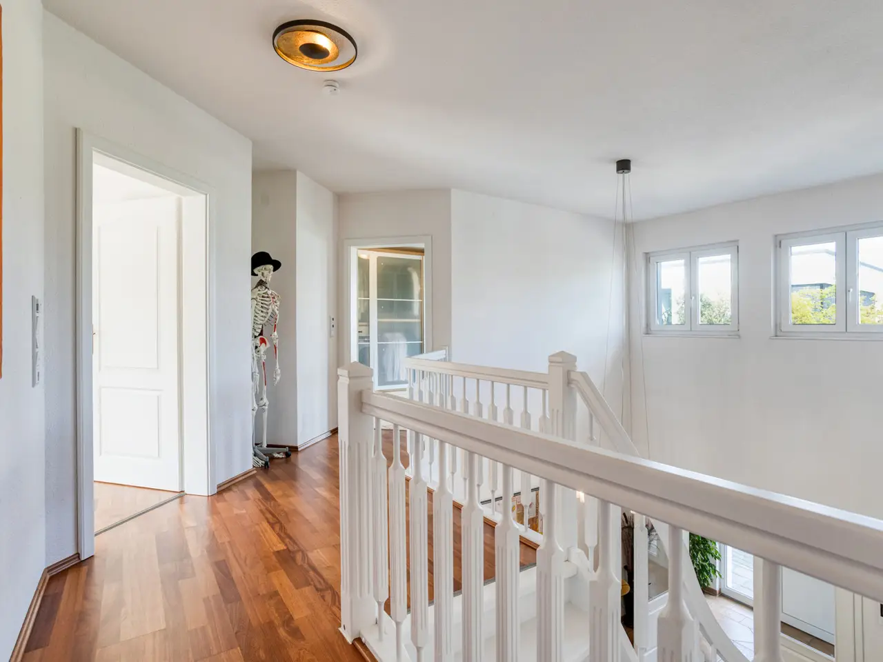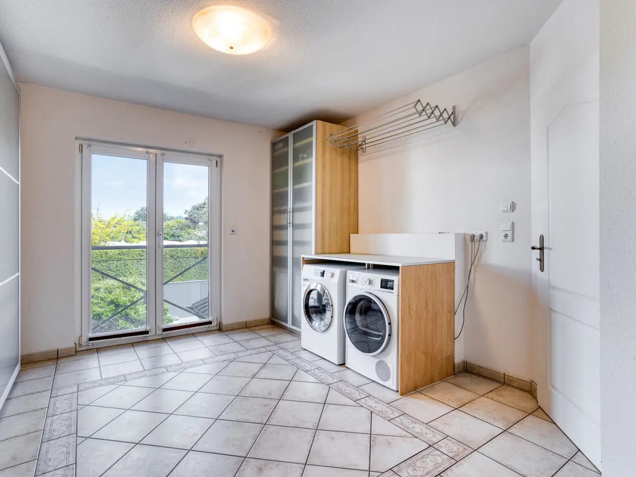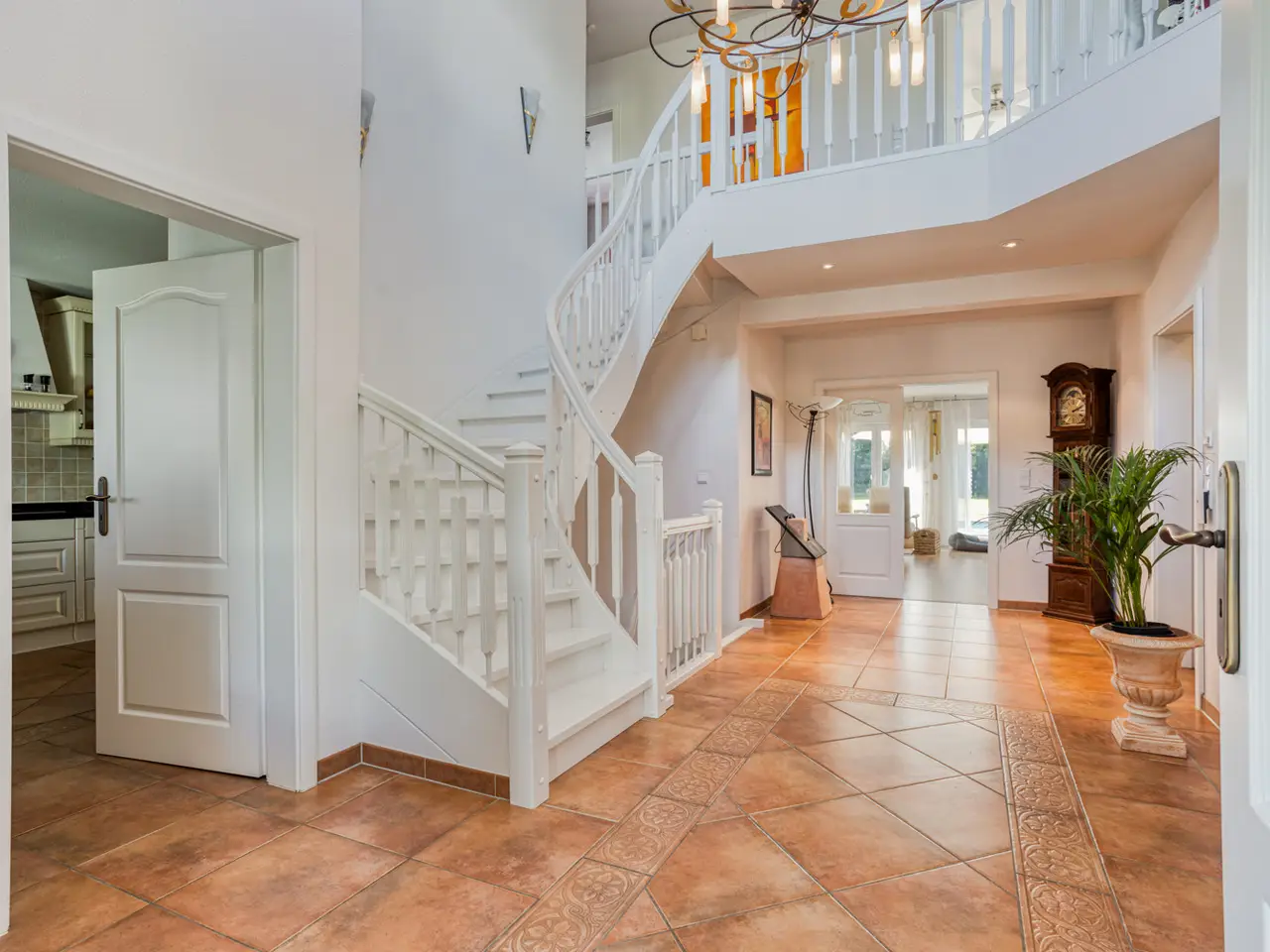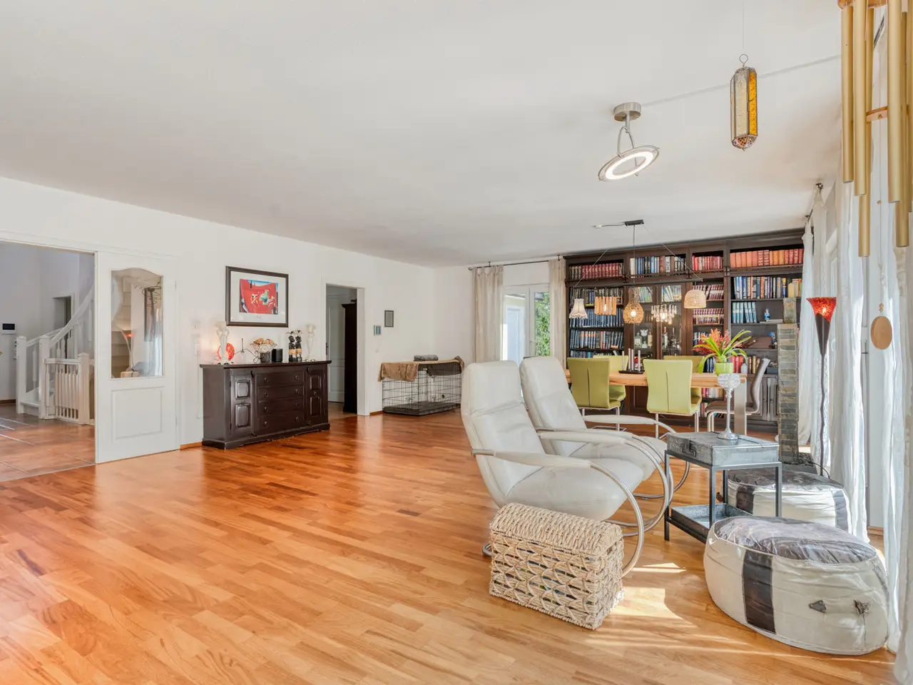 Bring your vacation home, because this villa, built in 2007 on a plot of around 1,175 m², now offers you living at the highest level on approx. 274 m² of living space and a total of 6 rooms, with the heated outdoor pool, the spacious terrace areas and the secluded garden providing a vacation feeling almost all year round. State-of-the-art building technology with fuel cell heating and a photovoltaic system with storage also ensure outstanding energy efficiency. You enter the house via the partially paved front garden, which is enclosed by a fence and wall, through a prestigious reception area into the spacious entrance hall, from where your gaze falls directly onto the high ceilings and the open gallery on the upper floor. From the entrance hall, you enter the kitchen on the left and the guest area with bedroom, small hallway and en-suite shower room on the right. The loft-like living and dining area with around 63 m² of living space is located in front of you. Here, the large marble fireplace creates a cozy atmosphere in winter, while the 5 floor-to-ceiling windows offer a seamless transition to the spacious pool area and garden in summer. This creates interesting axes of light and views, all of which lead through large window fronts into the surrounding garden and pool area. The large terrace by the outdoor pool and a covered outdoor seating area to the side of the house offer plenty of space to enjoy the beautiful days of the year with family and friends. And if you like it sporty, you will find your opponent in the pool's counter-current system. Solar panels in the pool's electric roller cover help to heat the pool in spring. The kitchen is already equipped with a high-quality country-style fitted kitchen and also has a useful storage room and direct access to the double garage. The open-plan staircase leads to the gallery on the upper floor and from there to the four bedrooms on this floor. The air-conditioned master bedroom has a spacious en suite bathroom with shower and bathtub and access to the balcony on this level. All rooms on both the ground and upper floors can be darkened with electric shutters. In the basement, which has a partial cellar, there is a hobby room and the utility room, which also houses the swimming pool equipment. The garden is densely planted and offers plenty of privacy and is barely visible, and is kept wonderfully green with an irrigation system. Next to the pool, an outdoor shower with warm water provides cooling and a small garden shed provides storage space in the outdoor area. The double garage can also be accessed through the garden. This is equipped with an electric door and offers space for further parking spaces in front of it, which are secured from the street by another door. You can also expect high-quality fittings on all levels of the house. Stone and parquet floors, a high-quality fitted kitchen and modern building technology are just a few examples. We cordially invite you to arrange a viewing appointment on site to see the charm and quality of the property for yourself.