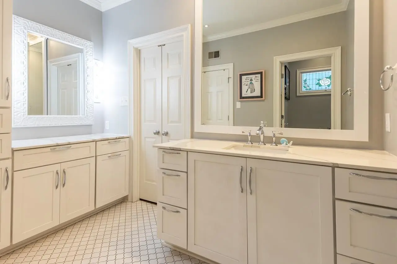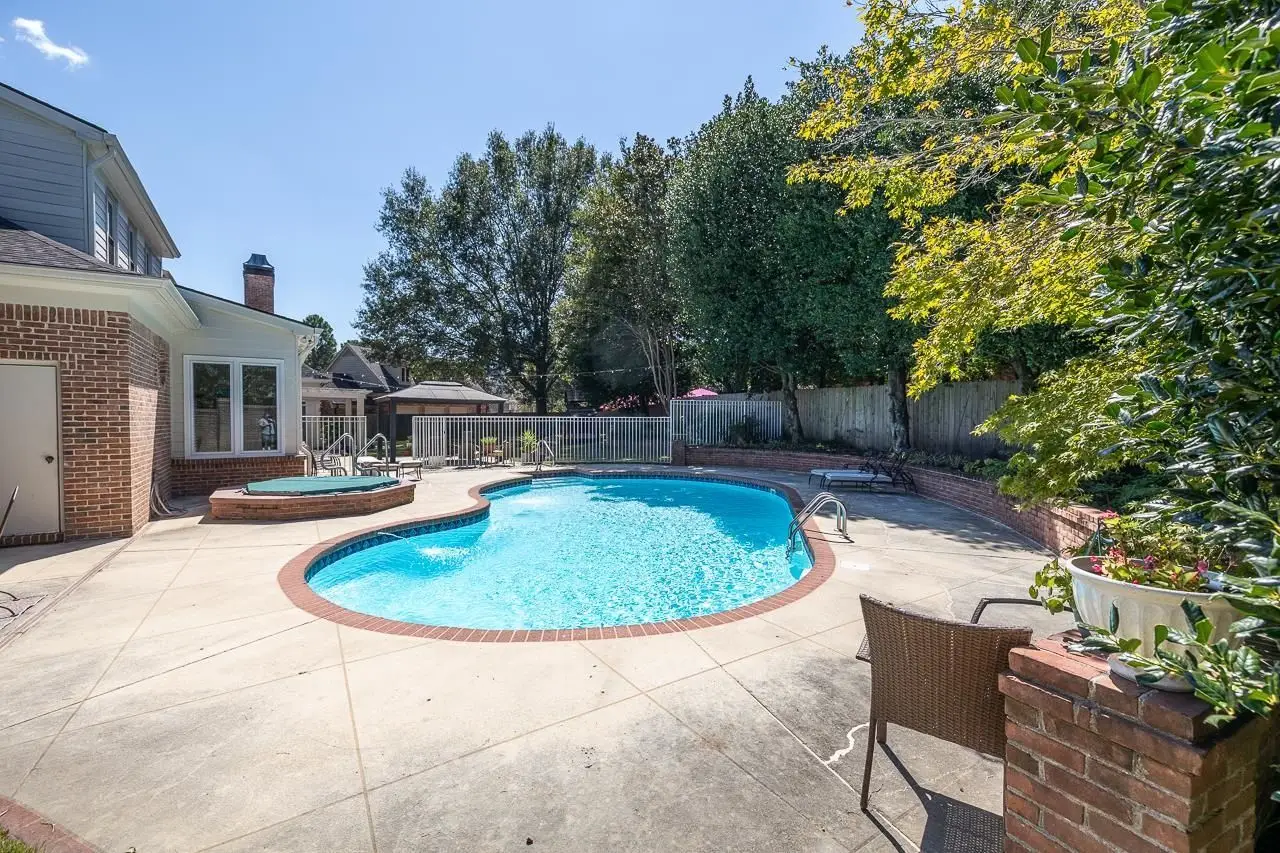 Updated Southwind Beauty w/24 hour security manned gate. Home features Gunite pool & spa, fenced separately, mature landscaped private yd w/playground and entertaining areas. Screen porch & 23x10 sunroom w/bar & pool bath. Primary renovated lux 5 piece bath w/his & her dressing areas. All bedrms ensuites. Updated Chef's kit w/2 islands, Lg eat in area, keeping rm & fp. Formal office dn, updated windows, roof replaced 2020,2-A/C 2020. Double iron doors, circular drive and inviting front porch. NO CITY TAXES