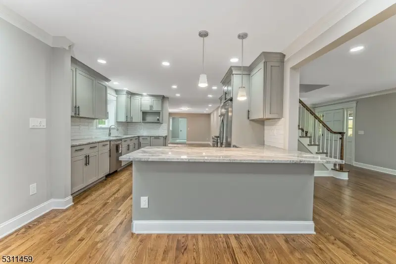 Welcome Home!!! Move-in ready. All you need to do is unpack your bags and enjoy. Renovated (2025) 1st Level - Kitchen - stainless steel appliances, granite countertops, new cabinets. Sliding glass doors open to large deck overlooking private rear yard. New windows. Upgraded molding throughout, lighting, glistening wood flooring throughout plus mudroom area, laundry room, bedroom/office with full bath, spacious living room, dining room, family room with entry access to garage complete this level. Second level includes 4 spacious bedrooms, new windows, wood flooring. Primary bath features quartz countertop vanity, curbless shower with custom door. Neutral paint colors throughout. Exterior features include new siding and poured concrete paths. There's much more to see- so schedule an appointment today - you won't be disappointed. Top rated town and school system plus easy access to major highways and trainline to NYC and vibrant Morristown area make this an ideal choice for your next home. Home is available for IMMEDIATE OCCUPANCY.