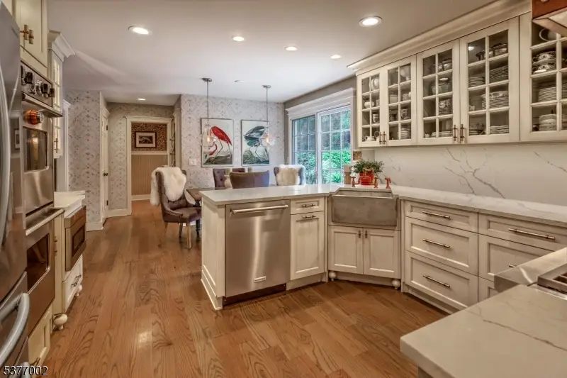 This handsome, well maintained CHC, located on Glen Gary Dr, is under 5 miles from the center of Morristown and all it has to offer while still being in the highly desirable Blue Ribbon Mendham School system. The home is well appointed with gleaming hardwood floors throughout and extensive custom millwork. The renovated kitchen with separate dining area and sliding doors to a back deck features a 6 burner Wolf cooktop, Viking double ovens, Samsung refrigerator, Kitchen Aid dishwasher and microwave drawer. The expansive living room runs from the front of the house to the back with lots of windows, ensuring plenty of natural light. A wood burning fireplace with custom mantle is the focal point of the family room. The custom built-in cabinetry and vaulted ceiling makes this an inviting, cozy place to hang out. All the bedrooms, located upstairs, offer wood floors, plenty of windows and ample closet space. The primary bedroom boasts an updated en suite with beautiful millwork and custom cabinetry. The lower level with a 2nd powder room, provides a spacious rec room, home office and a workshop. Another staircase from the basement to the garage adds convenience. Sitting on 1 private acre, the house is located across from Patriot Path, a multi-use trail system. With easy quick access to Morristown, take advantage of the train to NYC, many good restaurants, the Preforming Arts Center and nationally ranked Morristown Hospital. This home is truly move-in ready!