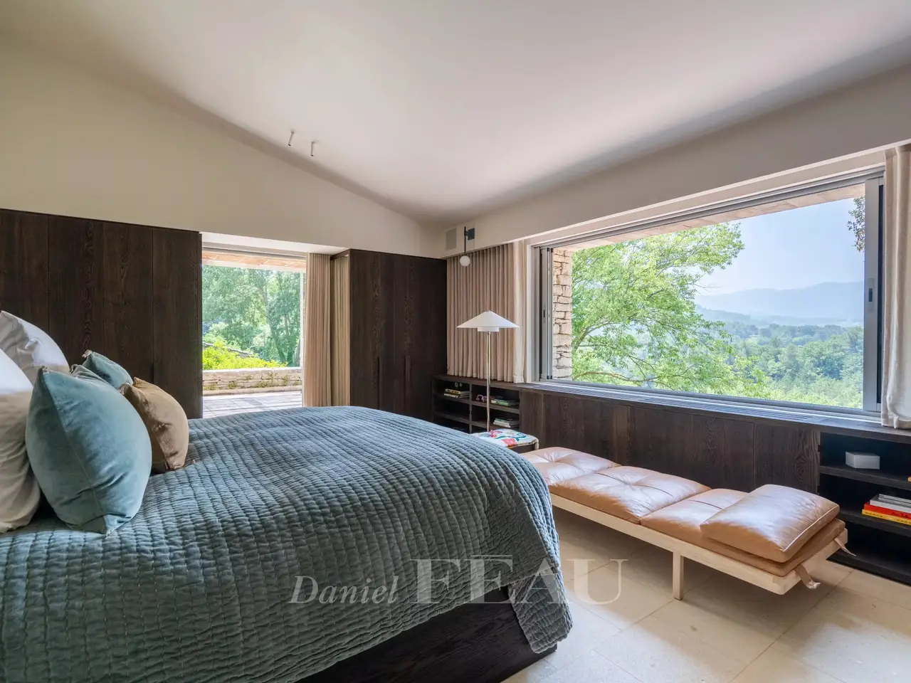 This exceptional 485 sqm contemporary property set in over 9 peaceful hectares comprises a main house, a guest house and annexes. Renovated in 2022 and bathed in sunshine thanks to wide patio windows, it includes 7 bedrooms in total. With a home cinema and a fully equipped fitness room. The ensemble benefits from a 15 x 5 heated swimming pool, and a pool house with a summer kitchen and a shower room.