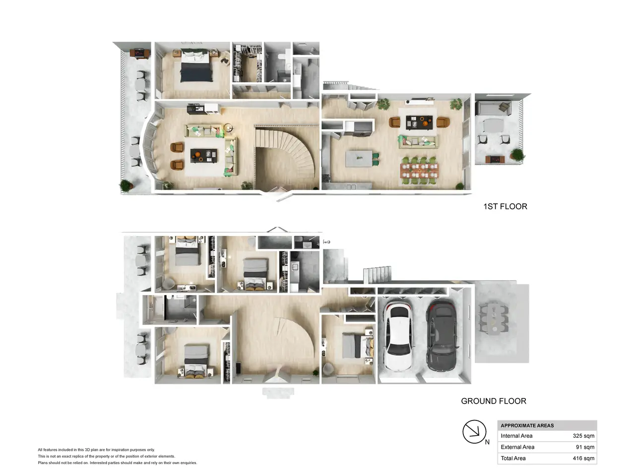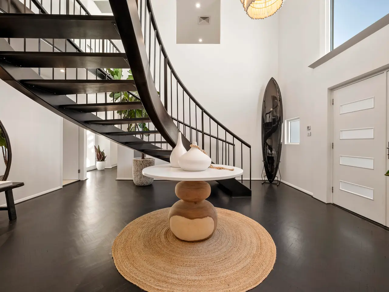 Double-height entry void with sweeping staircase