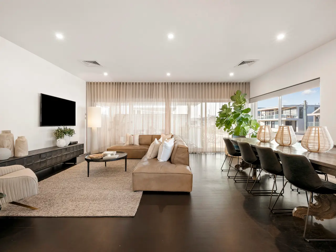 Ducted/zoned air-conditioning and gas-flame fireplace