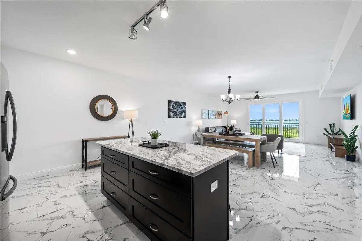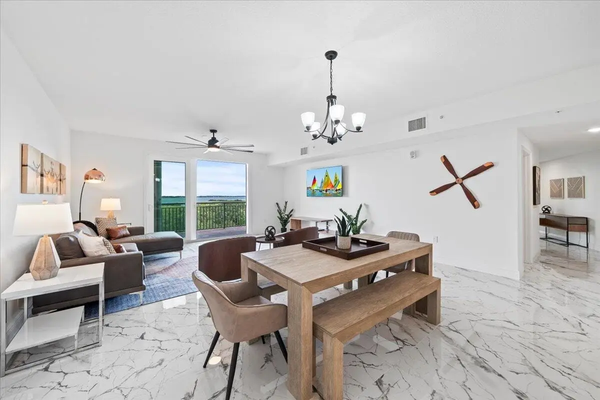 Introducing a one-of-a-kind living experience tailored for those who cherish the skies and the serenity of water. River Fly-In offers a fusion of luxury living and aviation convenience, with state-of-the-art amenities poised to elevate your lifestyle. With aviation enthusiasts in mind, you'll have seamless access to the Merritt Island airport. Embrace the tranquility of waterfront living with breathtaking views. Whether you seek peaceful mornings by the water's edge or thrilling water activities, this lifestyle caters to your every desire. Step into luxurious interiors crafted with meticulous attention to detail. From sleek contemporary designs to premium finishes, each residence offers a sophisticated retreat that perfectly complements its natural surroundings. Whether you're unwinding by the poolside, staying active in the fitness center, or socializing in the clubhouse, The River Fly-In provides an array of recreational options for everyone. The price of each unit includes a designated parking place in the parking garage. Open parking is available in the front parking lot. Additional parking spaces are available in the parking garage for an additional fee. Each unit is slightly different. Some units have white kitchen cabinets, grey, cherry wood, or black. Countertops and floors are also unique to each unit but all flooring is tile. Please call to preview the four different floorplans and interiors. Unit HOA's vary slightly according to floor plan. HOA's basically cover everything except the electric bill. If there is a power outage, a large generator maintains operations of the door to the parking garage, elevators and lights. Short term rentals are allowed, three day minimum, with certain restrictions, including participating in designated short term rental management company. Otherwise seven months is the minimum for rentals. Hangars are currently under construction and are available for purchase for additional cost. There will only be 20 boat slips in the marina. Those are also available for additional purchase. A waterfront restaurant will be built down near the marina. The elevated walkways that are in place will lead to the marina. Buyers agent must accompany prospective buyer to first showing. You can register you buyer with us for additional showings and do not need to accompany.
