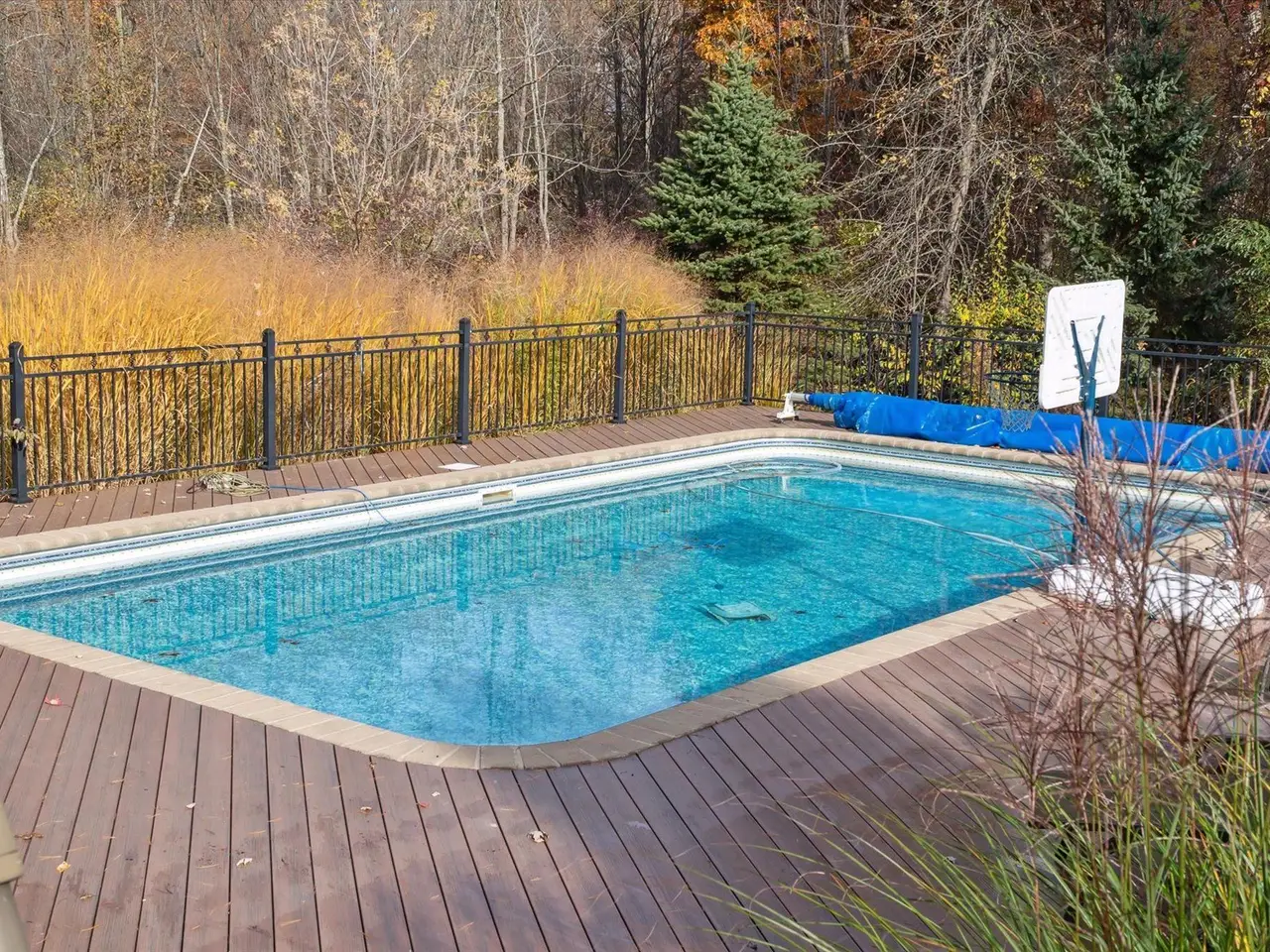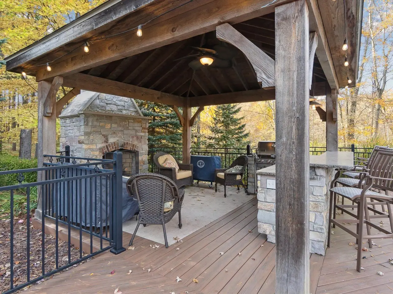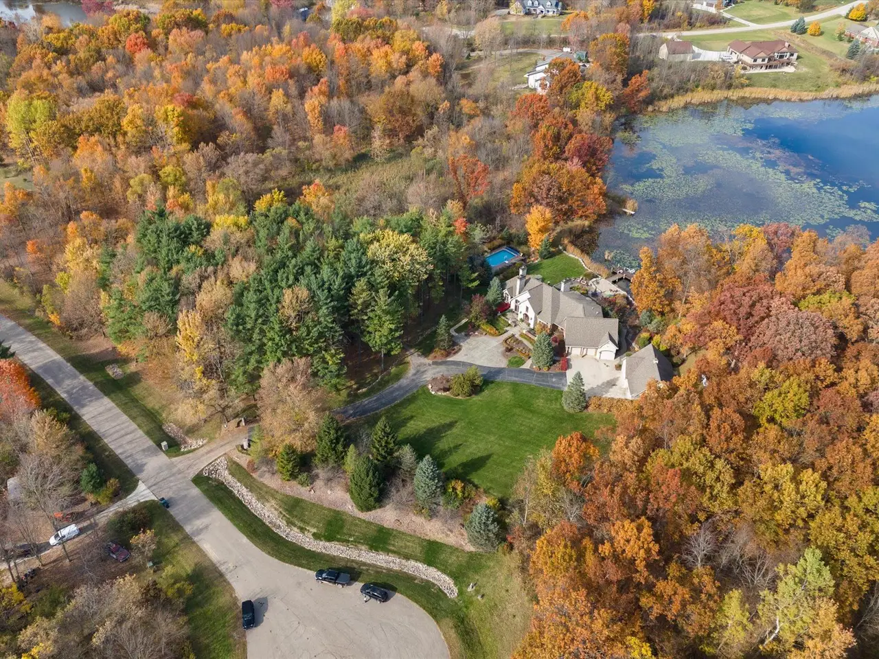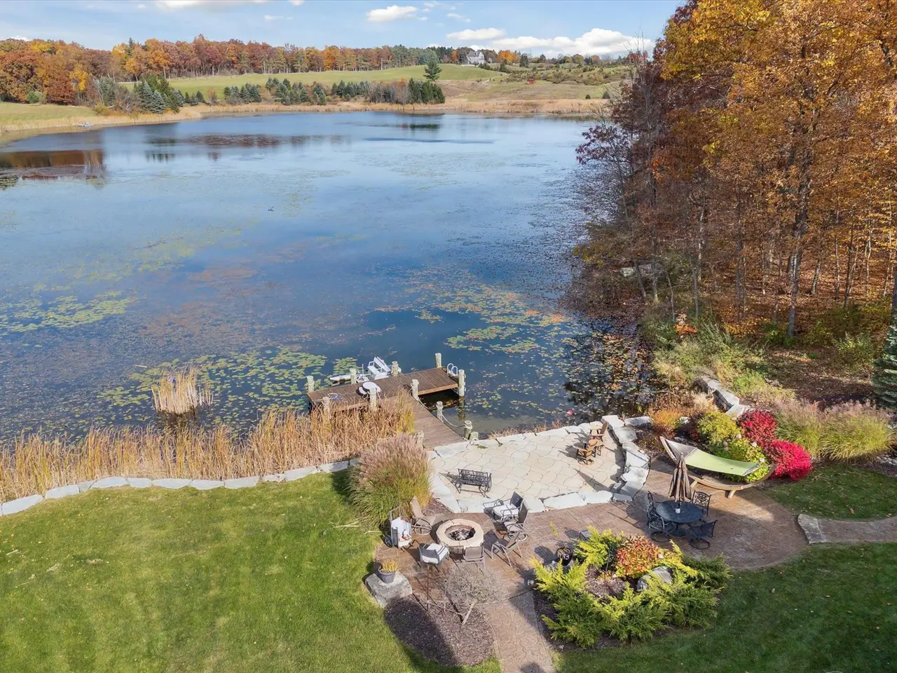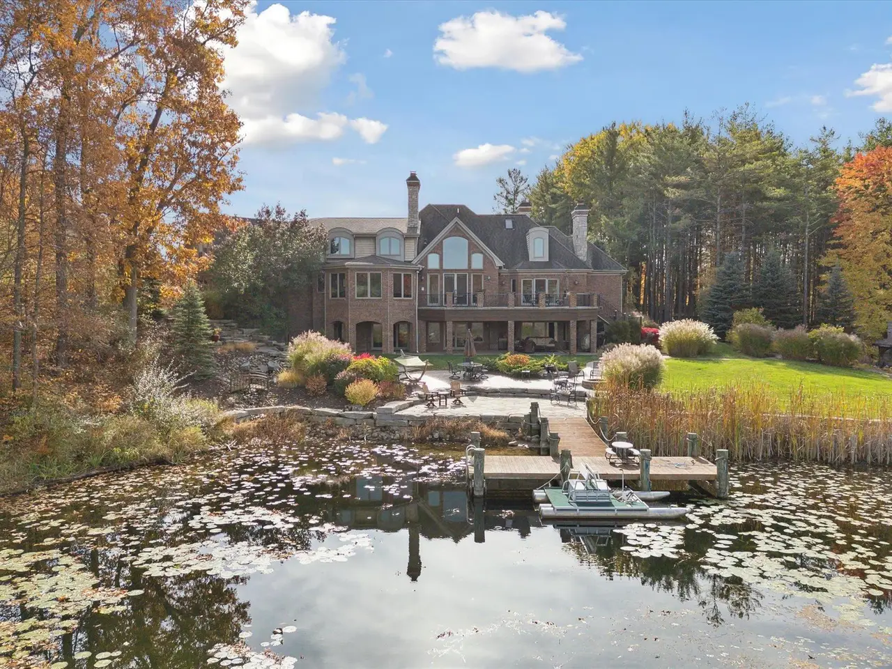 Private Lakefront Luxury on 14 Acres | Resort-Style Living with Every Amenity? Step into a world of refined lakefront living with this extraordinary 14-acre Country French estate—a true sanctuary of luxury, seclusion, and unforgettable memories. Tucked behind a private gated drive, this custom brick-and-stone masterpiece offers over 7,000 square feet of exquisite craftsmanship designed for both relaxation and grand entertaining. Inside, discover a chef’s dream kitchen featuring granite countertops, Brazilian cherry floors, a wet bar, 3 Thermador ovens, and a 6-burner stove. The main-floor primary suite is pure indulgence with heated floors, a hydro jet tub, and a custom walk-in closet. The two-story hearth room stuns with a dual-sided fireplace and flows into a four-season sunroom offering panoramic lake views and heated floors. A dedicated home office with a fireplace and private entrance makes working from home serene and seamless. The finished walkout lower level is built for entertaining—complete with a full bar, home theater, game room, cedar sauna, and a full and half bath. Outdoors, enjoy your private paradise: a heated saltwater pool and spa with a cabana, a lakeside gazebo with custom stone fireplace, electricity, bar fridge, and plenty of storage for outdoor entertaining. The kids' imagination will take them anywhere in their storybook cedar loft playhouse, complete with electricity, a fireplace, and an intercom system. Your private lake is ideal for swimming, fishing, and kayaking. A whole-house generator adds peace of mind, while an additional heated detached garage offers flexible storage or workshop space with a loft. Whether you're seeking a year-round retreat, multigenerational homestead, or a luxury family compound, this rare estate has it all—privacy, elegance, and adventure, all on one pristine waterfront setting. Now including the 8.81 adjoining acres. The property ID# must be included on the PA. Property ID# 01002700175