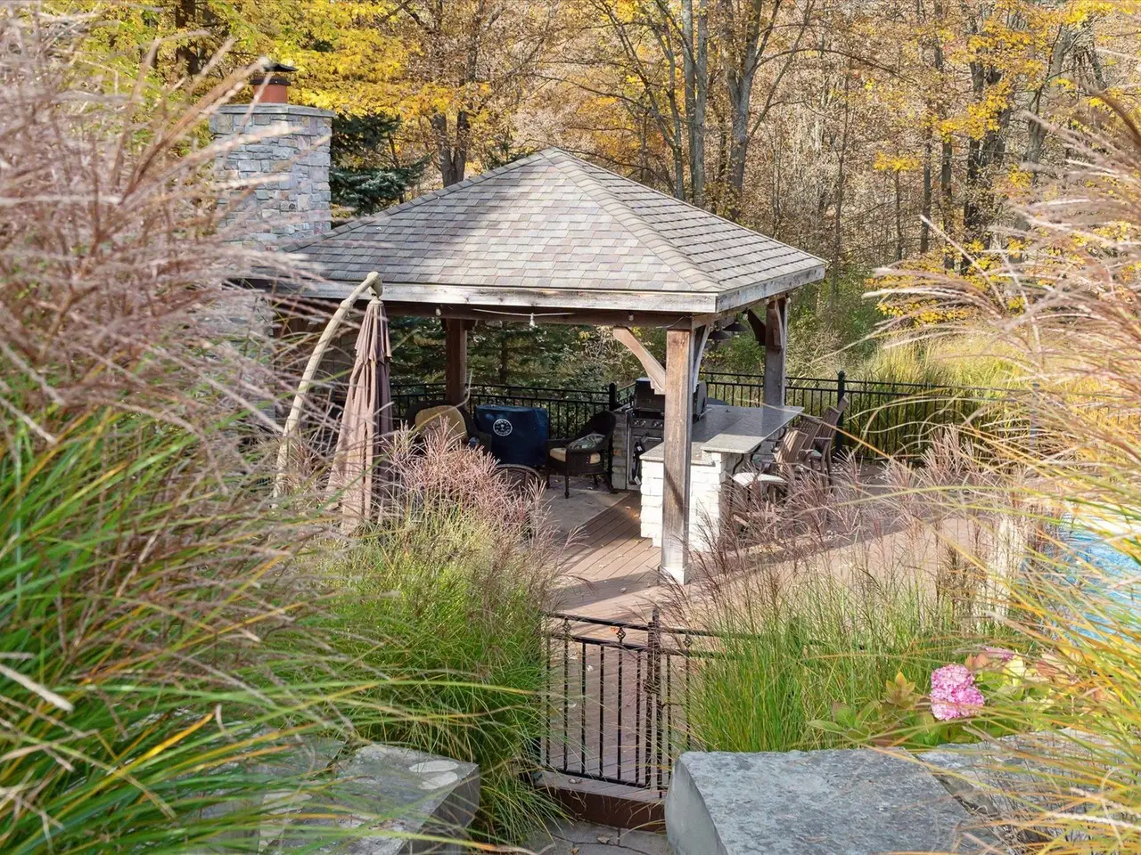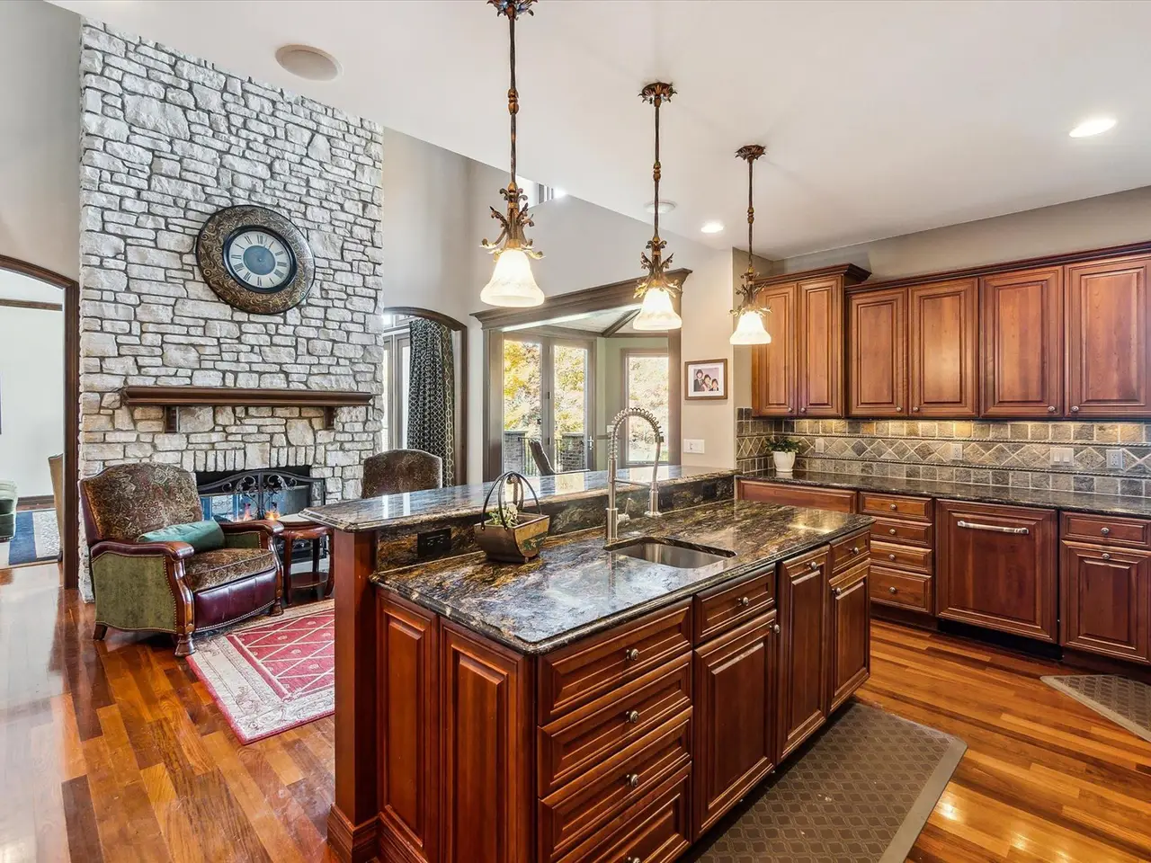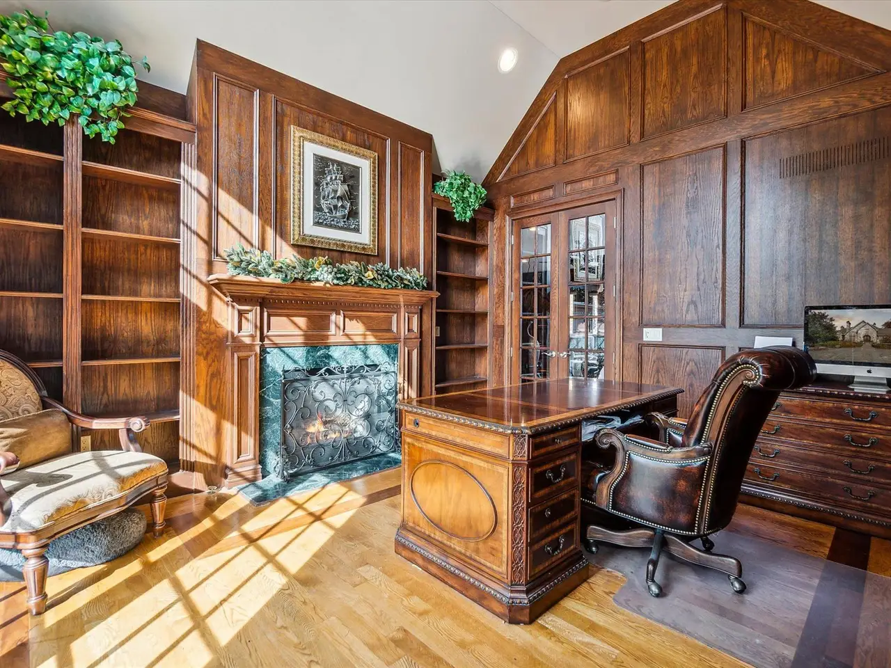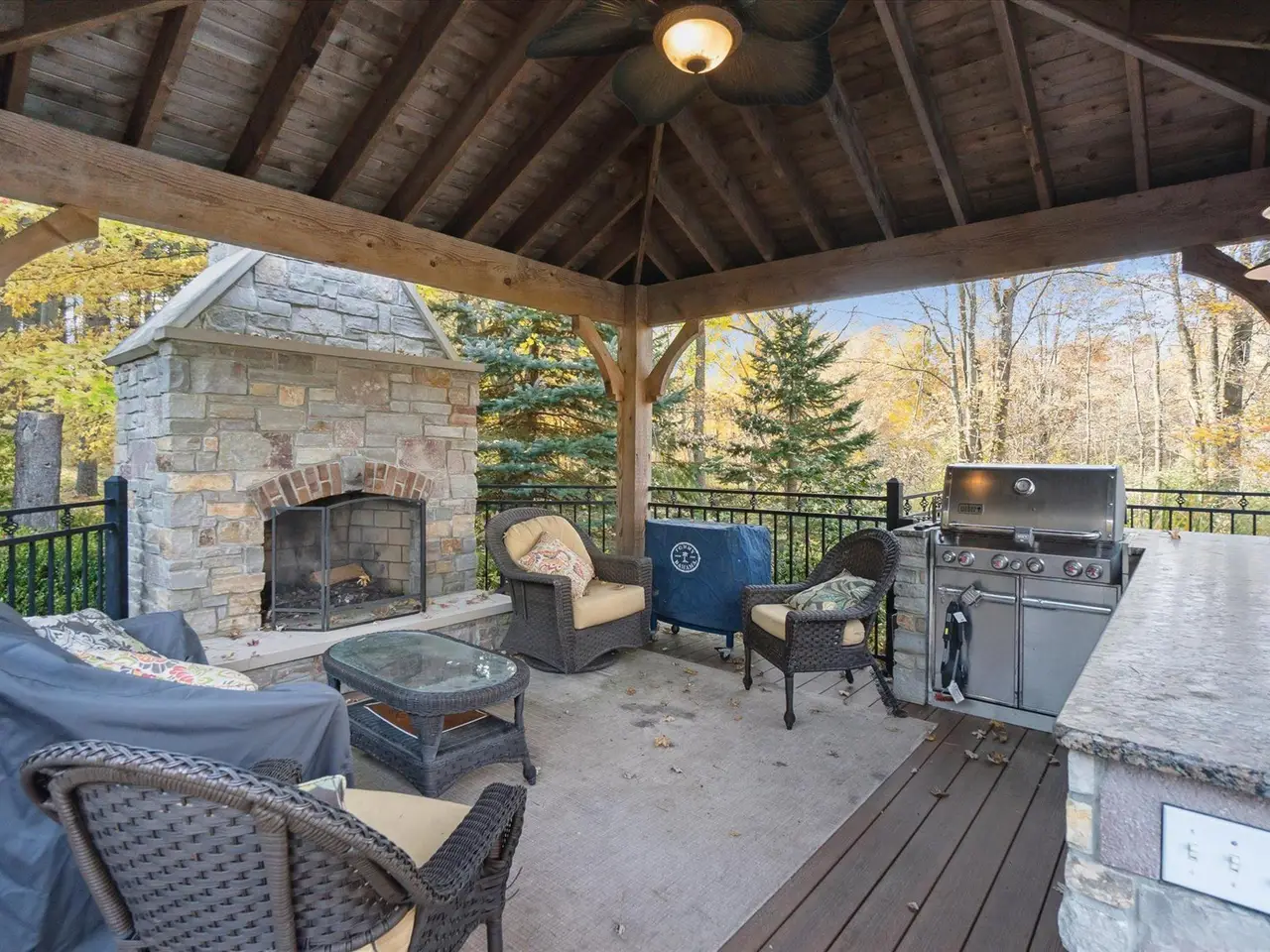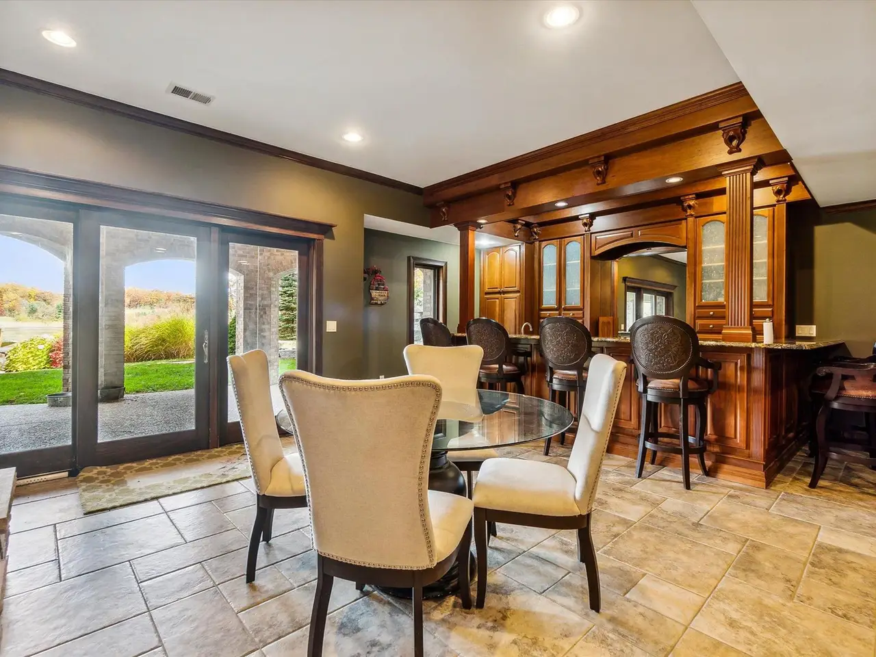 Private Lakefront Luxury on 14 Acres | Resort-Style Living with Every Amenity? Step into a world of refined lakefront living with this extraordinary 14-acre Country French estate—a true sanctuary of luxury, seclusion, and unforgettable memories. Tucked behind a private gated drive, this custom brick-and-stone masterpiece offers over 7,000 square feet of exquisite craftsmanship designed for both relaxation and grand entertaining. Inside, discover a chef’s dream kitchen featuring granite countertops, Brazilian cherry floors, a wet bar, 3 Thermador ovens, and a 6-burner stove. The main-floor primary suite is pure indulgence with heated floors, a hydro jet tub, and a custom walk-in closet. The two-story hearth room stuns with a dual-sided fireplace and flows into a four-season sunroom offering panoramic lake views and heated floors. A dedicated home office with a fireplace and private entrance makes working from home serene and seamless. The finished walkout lower level is built for entertaining—complete with a full bar, home theater, game room, cedar sauna, and a full and half bath. Outdoors, enjoy your private paradise: a heated saltwater pool and spa with a cabana, a lakeside gazebo with custom stone fireplace, electricity, bar fridge, and plenty of storage for outdoor entertaining. The kids' imagination will take them anywhere in their storybook cedar loft playhouse, complete with electricity, a fireplace, and an intercom system. Your private lake is ideal for swimming, fishing, and kayaking. A whole-house generator adds peace of mind, while an additional heated detached garage offers flexible storage or workshop space with a loft. Whether you're seeking a year-round retreat, multigenerational homestead, or a luxury family compound, this rare estate has it all—privacy, elegance, and adventure, all on one pristine waterfront setting. Now including the 8.81 adjoining acres. The property ID# must be included on the PA. Property ID# 01002700175
