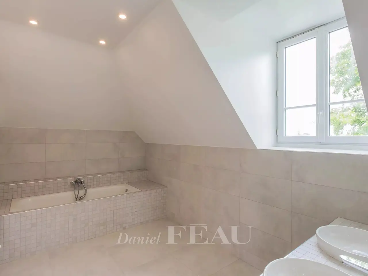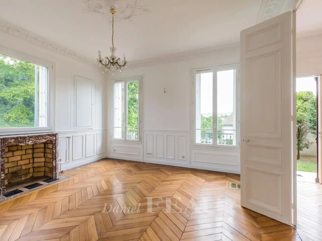This elegant millstone-built property in a leafy environment near the station offers 366 sqm of floor space and about 260 sqm of living space. Set in a 969 sqm plot, it includes a double living/reception room with a conservatory opening onto the garden, a fitted kitchen, and a study. Upstairs are two bedrooms with bathrooms and dressing rooms. The top floor comprises a bedroom with a shower room, two further bedrooms and a bathroom. Three further bedrooms, a shower room, a storage room, a utility room and a boiler room are on the entresol. With a two-car garage and two outdoor parking spaces.