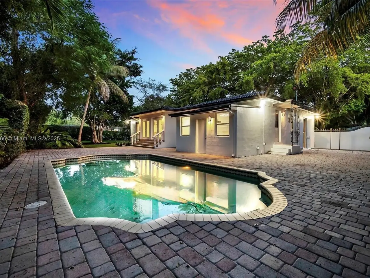 Spanish-Mediterranean home situated on a 12,000 SF double Lot (red road & 33 St), 1 mile from University of Miami & the Biltmore Hotel. This 4 bedroom/2 bath residence+1 Cabana Bath features soaring ceilings & abundant natural light. A brand new Italian style kitchen boasts Calacatta Quartz countertops, sleek cabinetry & new GE-Cafe appliances. Updated PVC plumbing & electric, wood & porcelain flooring throughout, the French doors open to a gated & fenced huge backyard oasis & a pool, surrounded by large oak trees. A semi-circular paver driveway provides ample off-street parking space for up to 8 cars +1 boat. This home has the old elegance & charm of Schenley Park/Coral Gables combined with all the modern upgrades in an unbeatable location. A-rated schools. Excellent income potential.