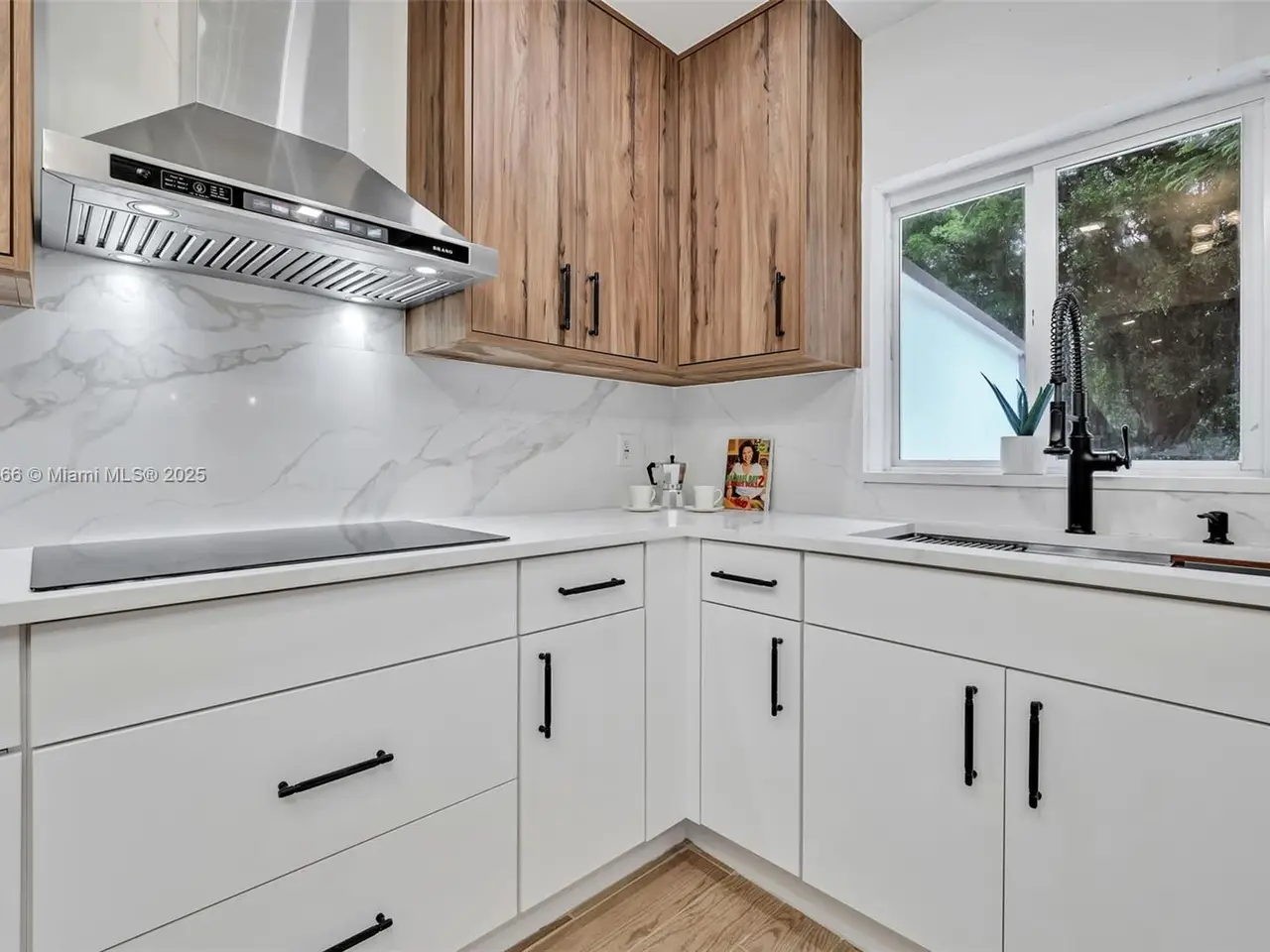• Wood and porcelain flooring throughout