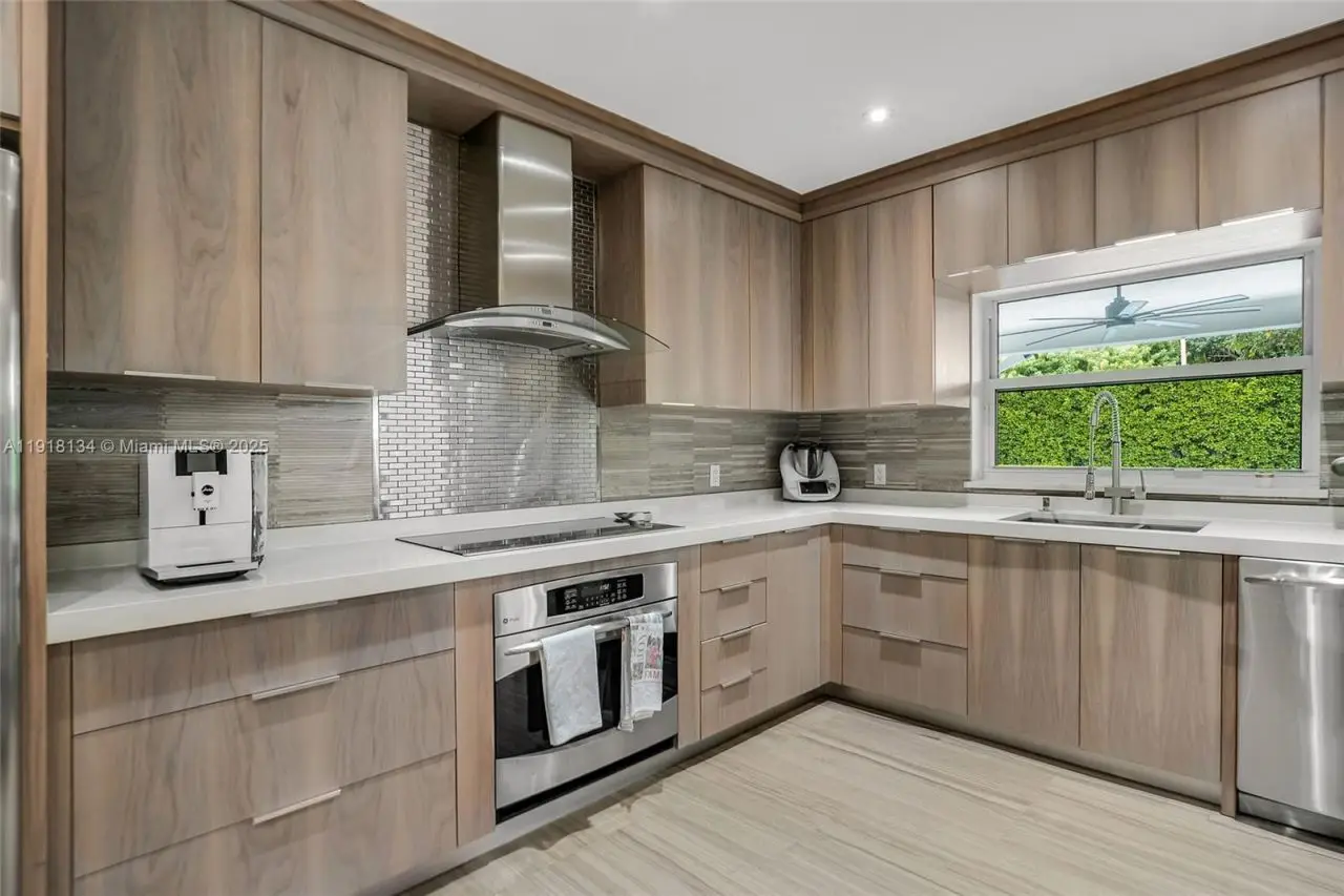 Experience luxury living at its finest in this exquisitely remodeled 4-bedroom, 3.5-bath single-family residence located in the prestigious Bay Heights community of Coconut Grove. This stunning home offers an impressive layout featuring a gourmet kitchen with top-of-the-line appliances, quartz countertops, and custom-crafted wood cabinetry. Marble floors grace the main living areas, while rich hardwood floors add warmth and elegance to the bedrooms. Designed for both comfort and sophistication, the home showcases a floor-to-ceiling wine cellar, an expansive outdoor terrace with an insulated roof - perfect for enjoying warm Miami days - and a beautiful pool surrounded by a lush backyard with mature fruit trees. Energy-efficient upgrades are found throughout, including full impact windows, a tankless water heater, an encapsulated crawl space, and a whole-house water treatment system, ensuring modern convenience and peace of mind. Ideally situated in a premium location, this property is just steps to parks and a short walk to the vibrant cafes and dining of Coconut Grove and Brickell. Youre also less than two miles from the pristine beaches of Key Biscayne and surrounded by top-rated public and private schools. Public records do not show the accurate total living area of the home, which is larger than reflected. Thoughtfully designed and beautifully upgraded, this home delivers the perfect setting for refined living and effortless everyday comfort.