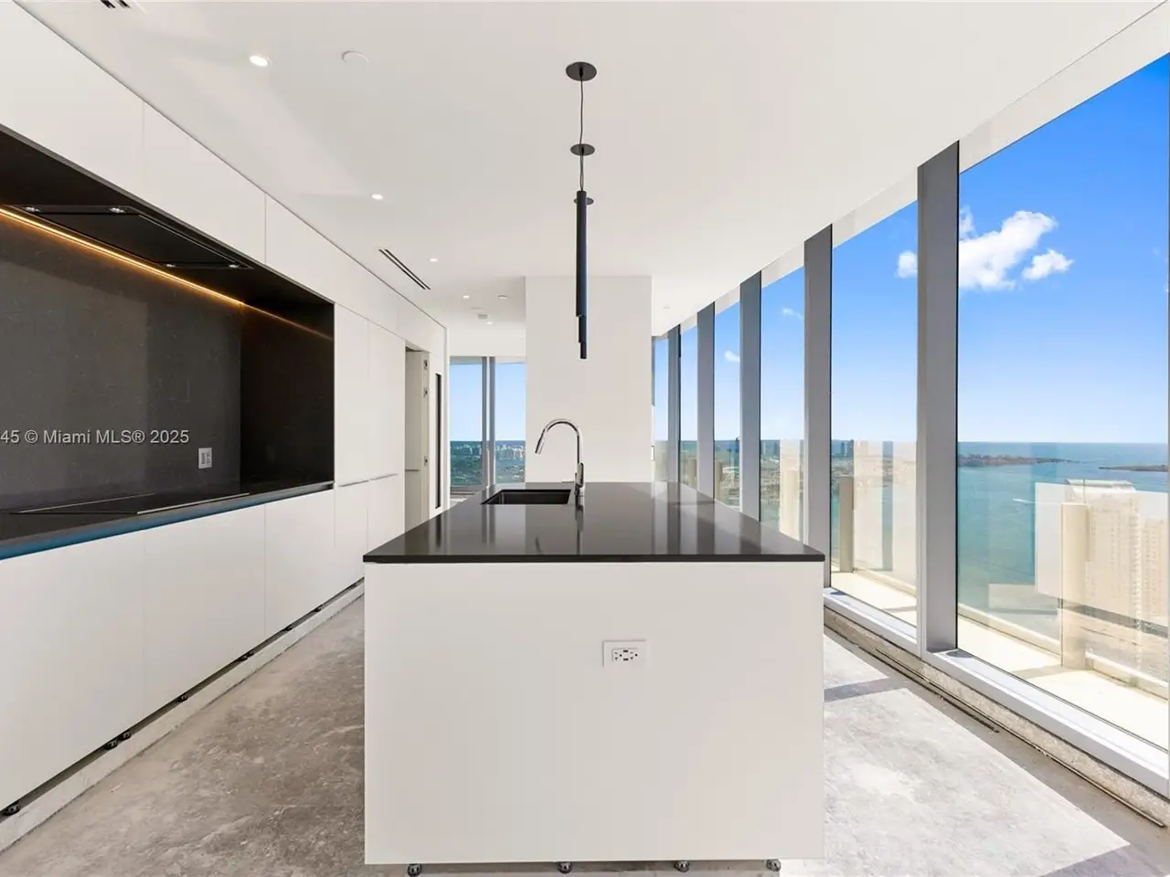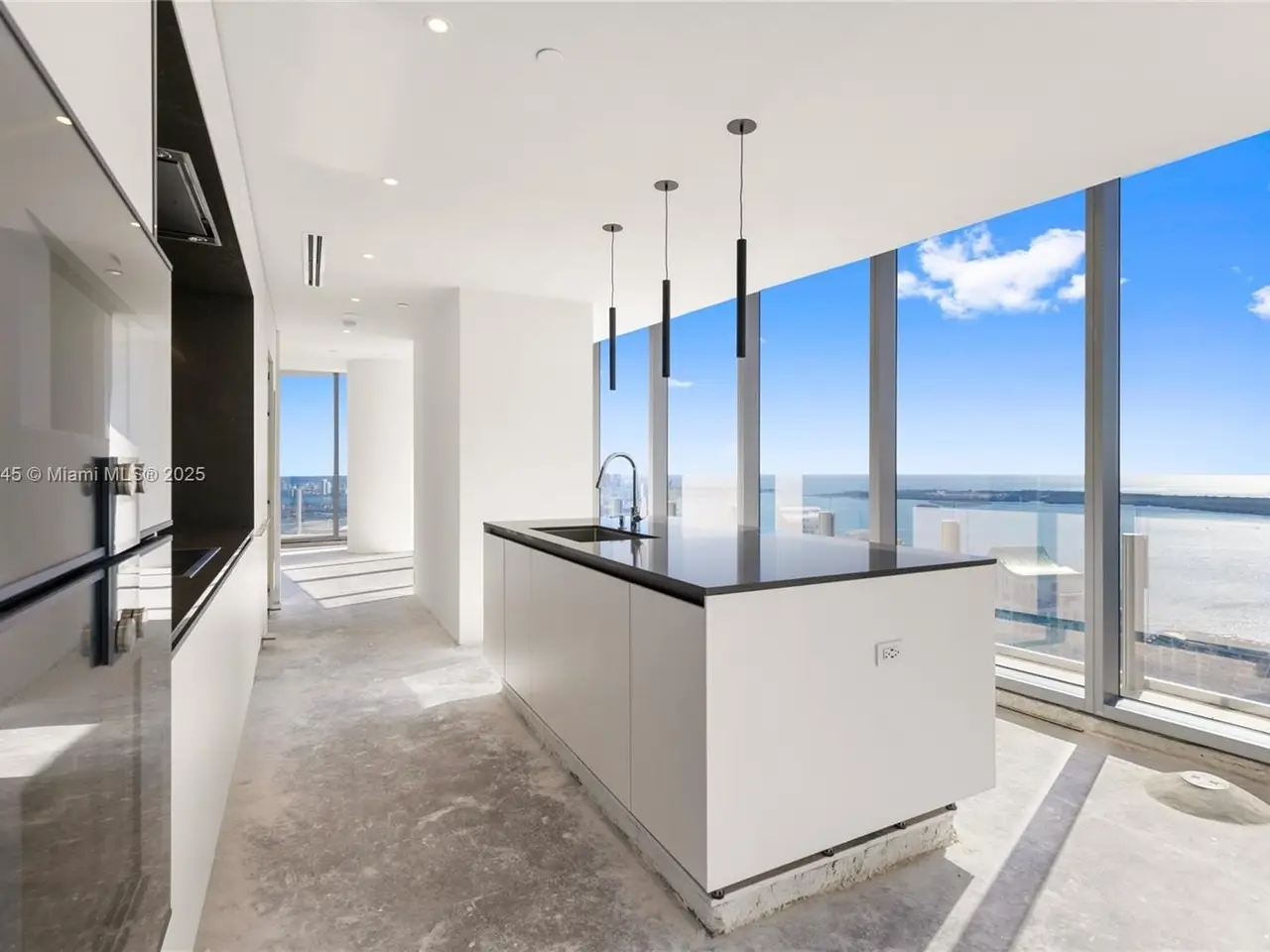 Experience breathtaking sunrises and sunsets from every room in this remarkable penthouse, the crown of the 01 line, offering 360° views of the Miami skyline, Biscayne Bay, and the ocean. With soaring ceilings and wrap-around terraces, the residence captures natural light and promotes effortless indoor-outdoor living. Delivered designer-ready, it offers flexibility with an alternate floor plan for personalized finishes. A gallery-style entry hall welcomes you into the home, ideal for displaying art, while two private elevators open into a secluded vestibule. The sleek Bulthaup kitchen, featuring pristine white cabinetry, anchors the residence in a refined, modern aesthetic that embodies Miami luxury.