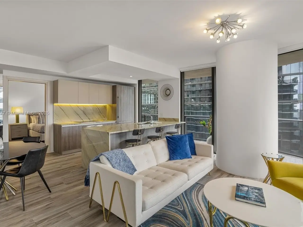 Wonderfully furnished & equipped 2 bed/2 bath unit in SLS Lux sold turn key! Biscayne bay & Miami skyline views await you. Private foyer elevator, 1 covered parking space. Designer furniture and furnishings. Upgraded unit finishes include: Italian Ciot green marble countertops & LED lighting in kitchen, white Calacatta Luxor marble vanity tops & Toto washlets in bathrms, Italkraft closet system in closets, automated window roller shades throughout. Bldg amenities include: SLS Hotel - 2 pools - Roof top private pool for residents only, Cabanas, bar & restaurant, Fitness Ctr & sauna, Spa, children's playground w/rock climbing, Billiard, Wine & cigar room, game room, putting green, tennis, 45th fl residents wine lounge. Brickell City Center w/entertainment & dining. Close to airport & M.Beach