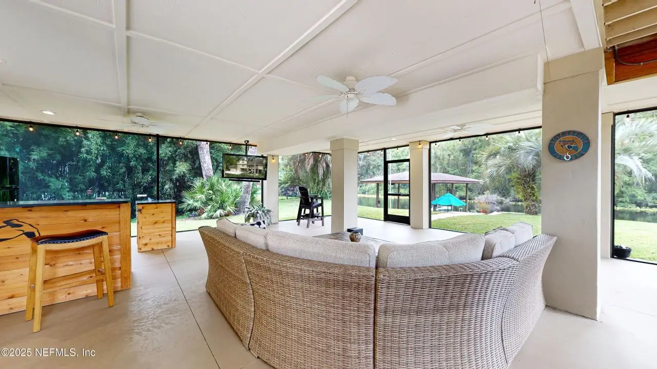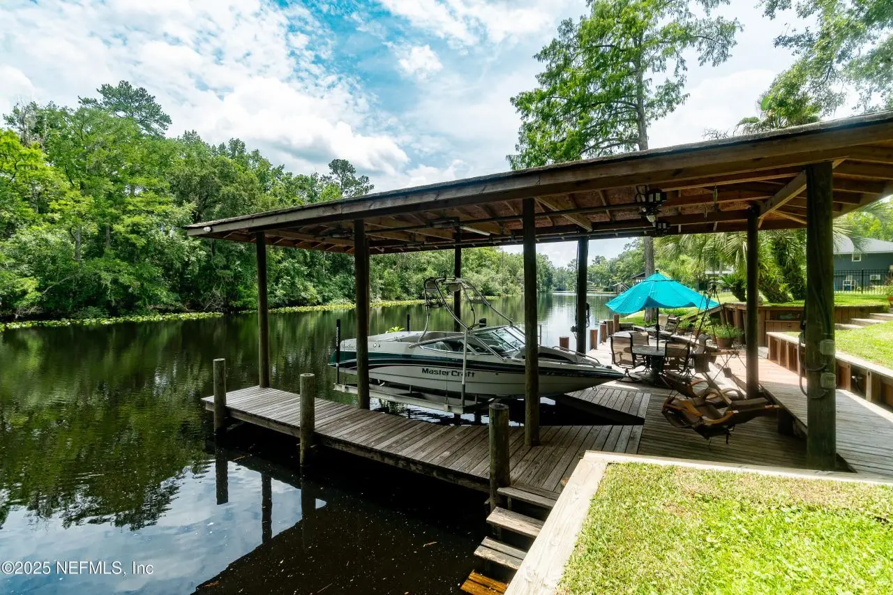 Serene Waterfront Living on Peaceful South Prong of Black Creek Welcome to your tranquil retreat nestled along the quiet, scenic shores of Black Creek. This beautifully appointed 3-bedroom, 2.5 bathroom home offers the perfect blend of comfort, functionality, and outdoor enjoyment. Enjoy the convenience of a 2.5 car garage, golf cart garage, and carport, providing ample space for vehicles, toys, and tools. Step inside from your stairs or exterior elevator to find quartz countertops, a Viking Dual Fuel convection range, Sub Zero built in refrigerator, Viking convection microwave, GE Cafe' Dish Washer, custom cabinets, and a cozy fireplace, creating a warm, inviting atmosphere perfect for everyday living and entertaining. Outdoors, this property is a dream come true for water lovers and entertainers alike. Relax or host gatherings in the screened-in entertainment area complete with an outdoor kitchen and sweeping waterfront views. Boaters will appreciate the private dock, 30' by 12' boathouse with lift, and bulkhead, offering direct access to the peaceful waters of Black Creek. The home is built above the flood zone elevation. The carport is 10 feet high, the garage has an attic storage area on the second level. Aerator, hot water heater, heat pumps are raised above the flood zone elevation as well. The lot is equipped with a 6 zone sprinkler system, over sized driveway, and across Black Creek the view is stunning with nature and wildlife frequenting the Creek. It is directly across from the Old Ravines Golf Course which has been closed for several years. This home is tucked away in a quiet, established neighborhood. It is on a dead end road so traffic is almost non-existent.