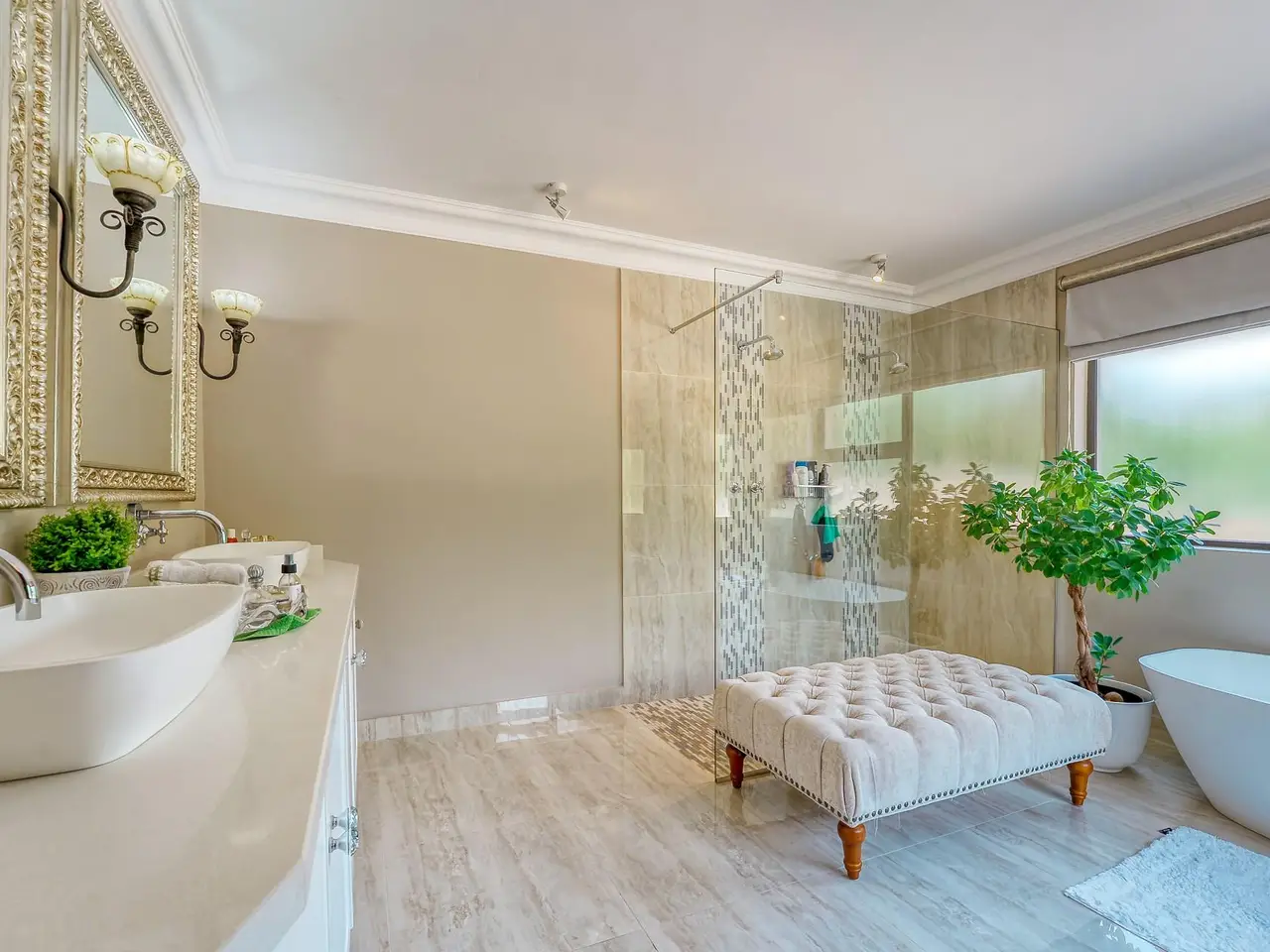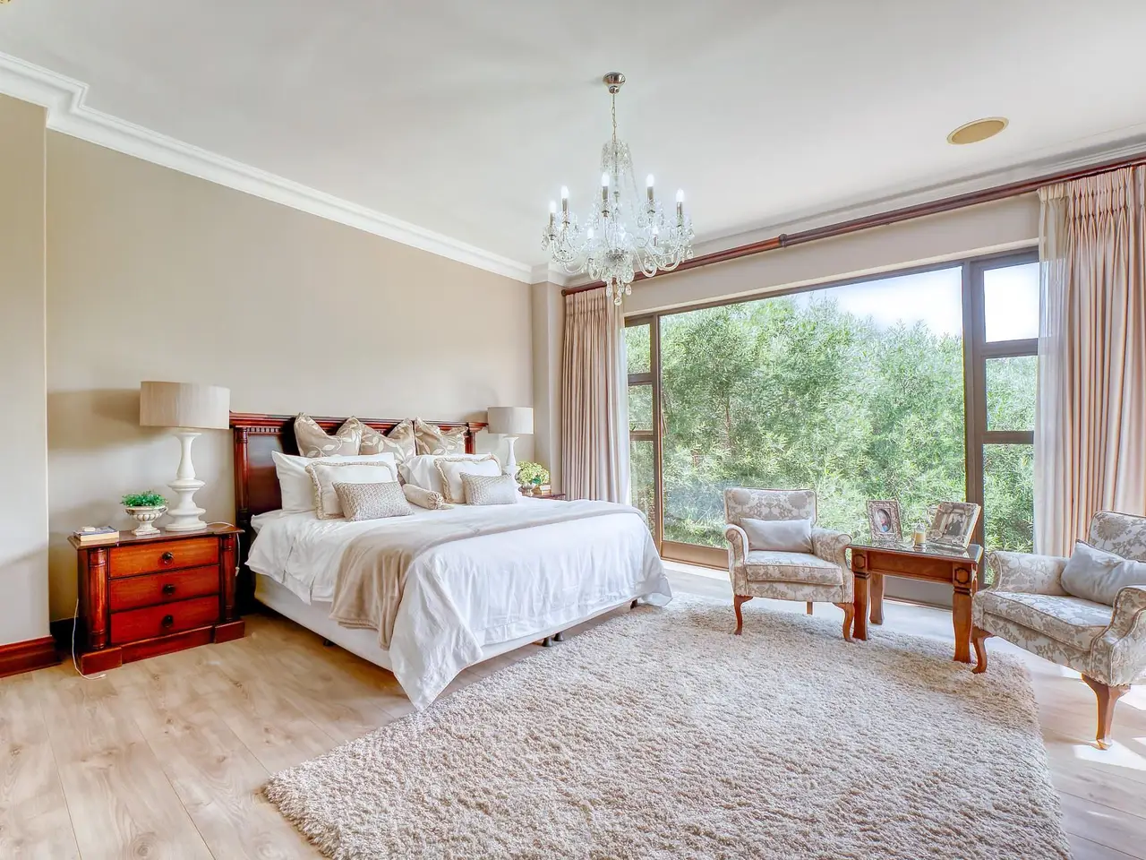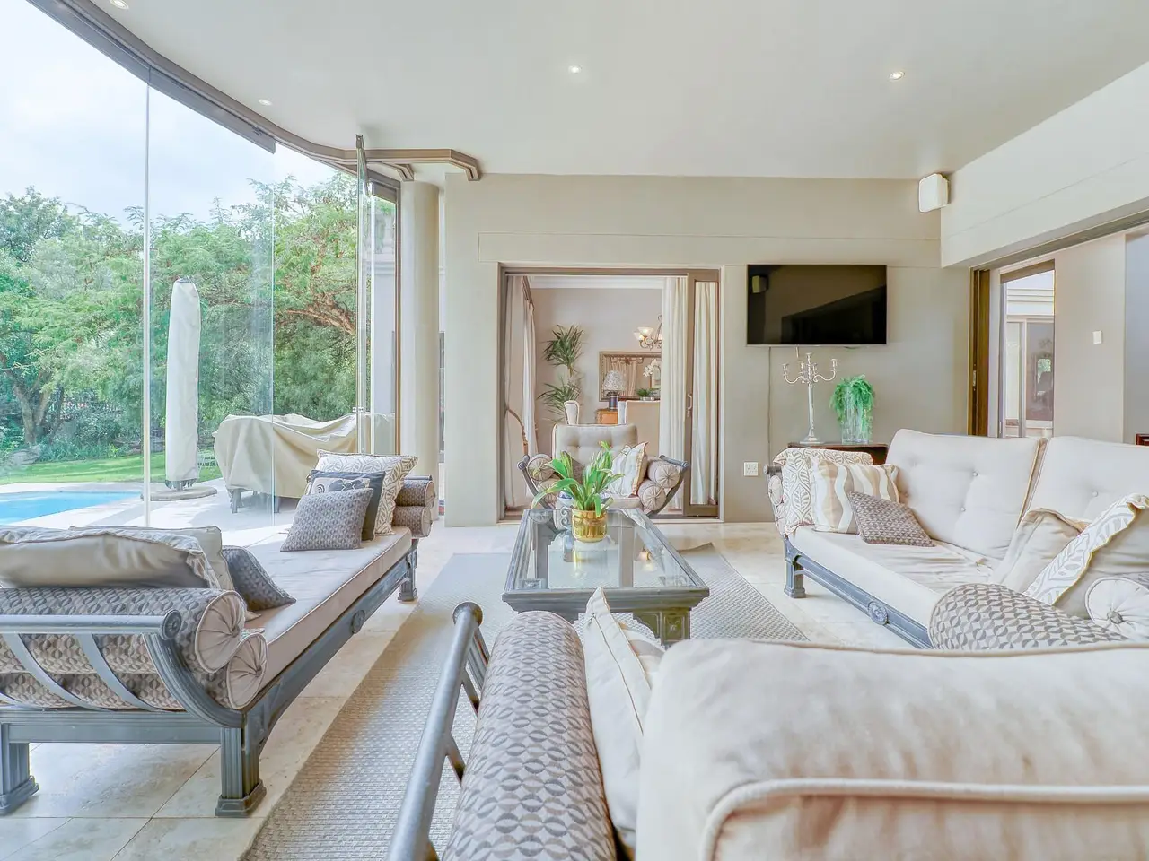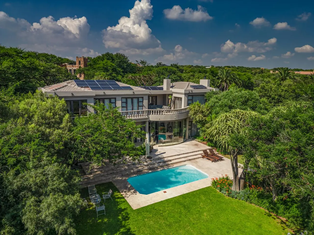 A Luxury Home Nestled in a sought after Estate in Kyalami! Step into luxury with this stunning 5-bedroom home, designed for both comfort and entertainment. The grand entrance hall, with its striking staircase, seamlessly flows into the informal lounge, where floor-to-ceiling glass doors open to the lush garden. Built-in speakers and a stylish bar area set the scene for relaxed gatherings. The formal dining room offers picturesque views of the atrium, while the open-plan kitchen boasts ample cupboard space, built-in ovens, a microwave, and a gas stove. A separate scullery leads to the informal dining area, which transitions effortlessly into the third lounge, creating a perfect space for family living. Of the homes 5 bedrooms,2 of them can be used as additional accomadation or guest wings. In addition there are house keeping quarters on the property. A private study provides the ideal work-from-home setup, while the pajama lounge offers a cozy retreat. It can double as a craft room or display area. The formal lounge, also fitted with built-in speakers, adds another layer of sophistication. Upstairs, the main bedroom impresses with a walk-through closet and a full en-suite bathroom, while all bedrooms feature air conditioning for year-round comfort. Speakers are thoughtfully placed throughout the home, enhancing the living experience.Elegantly staged to allow guests to absorb all that this luxury property has to offer.Outdoor living is just as impressive, with a beautifully landscaped garden and a sparkling pool, perfect for relaxation and entertainment. A balcony offers exclusive access to the rooftop, where you can enjoy breathtaking views. A double garage completes this exceptional property, ensuring both convenience and security. This home is an entertainerGÇÖs dream, combining elegance with modern functionality in every detail.So call today.!!!Make your dreams come true!!