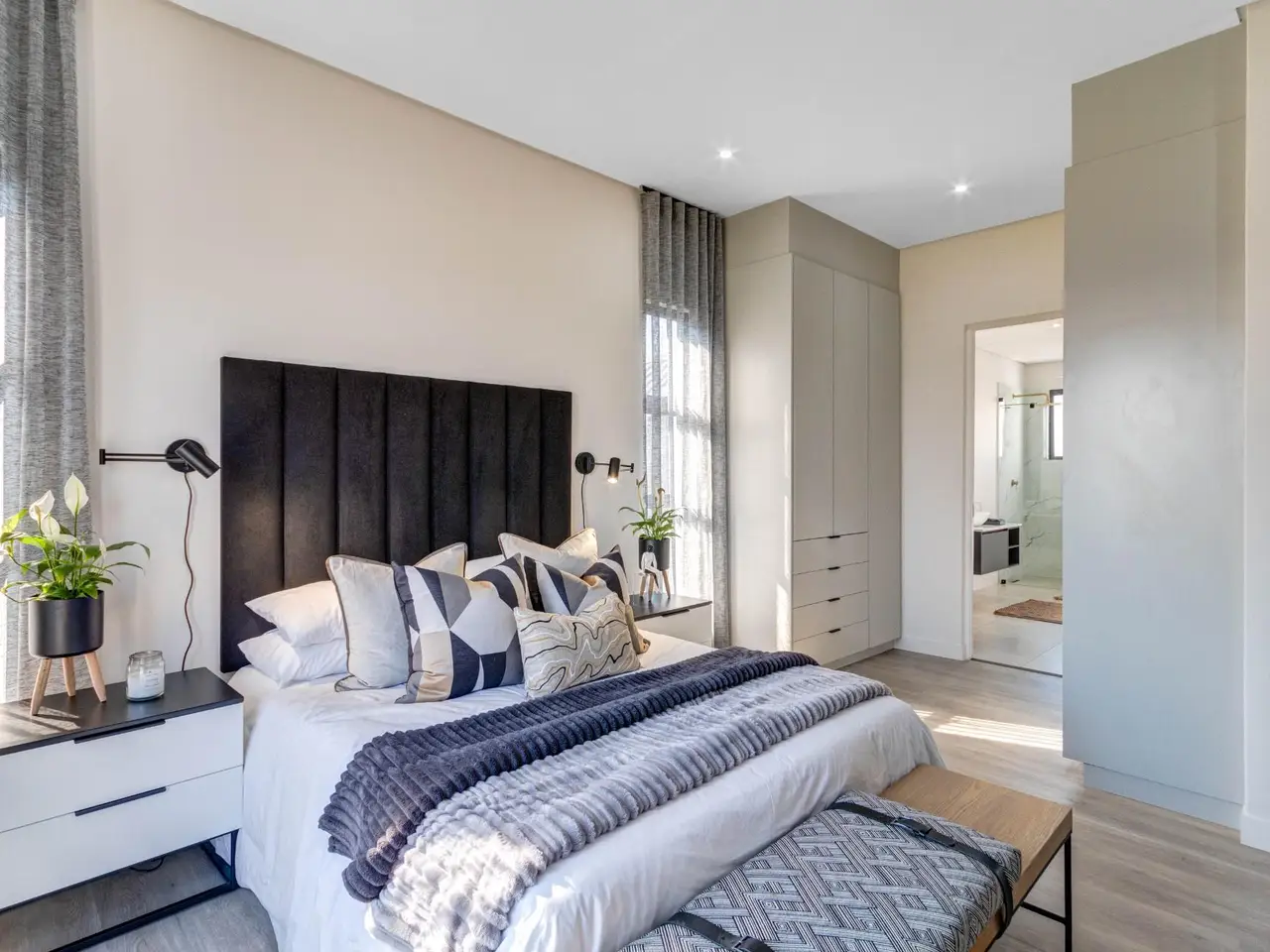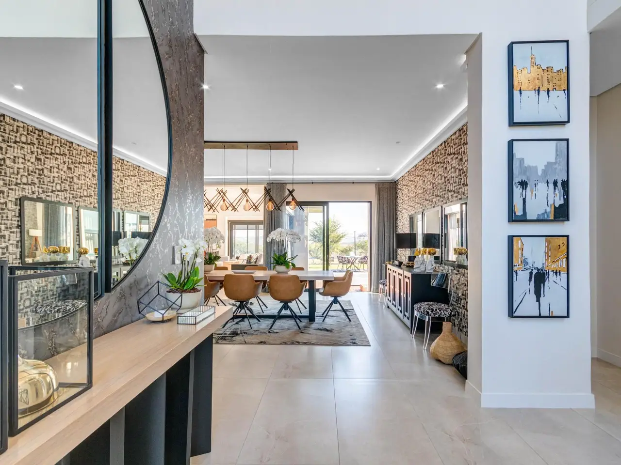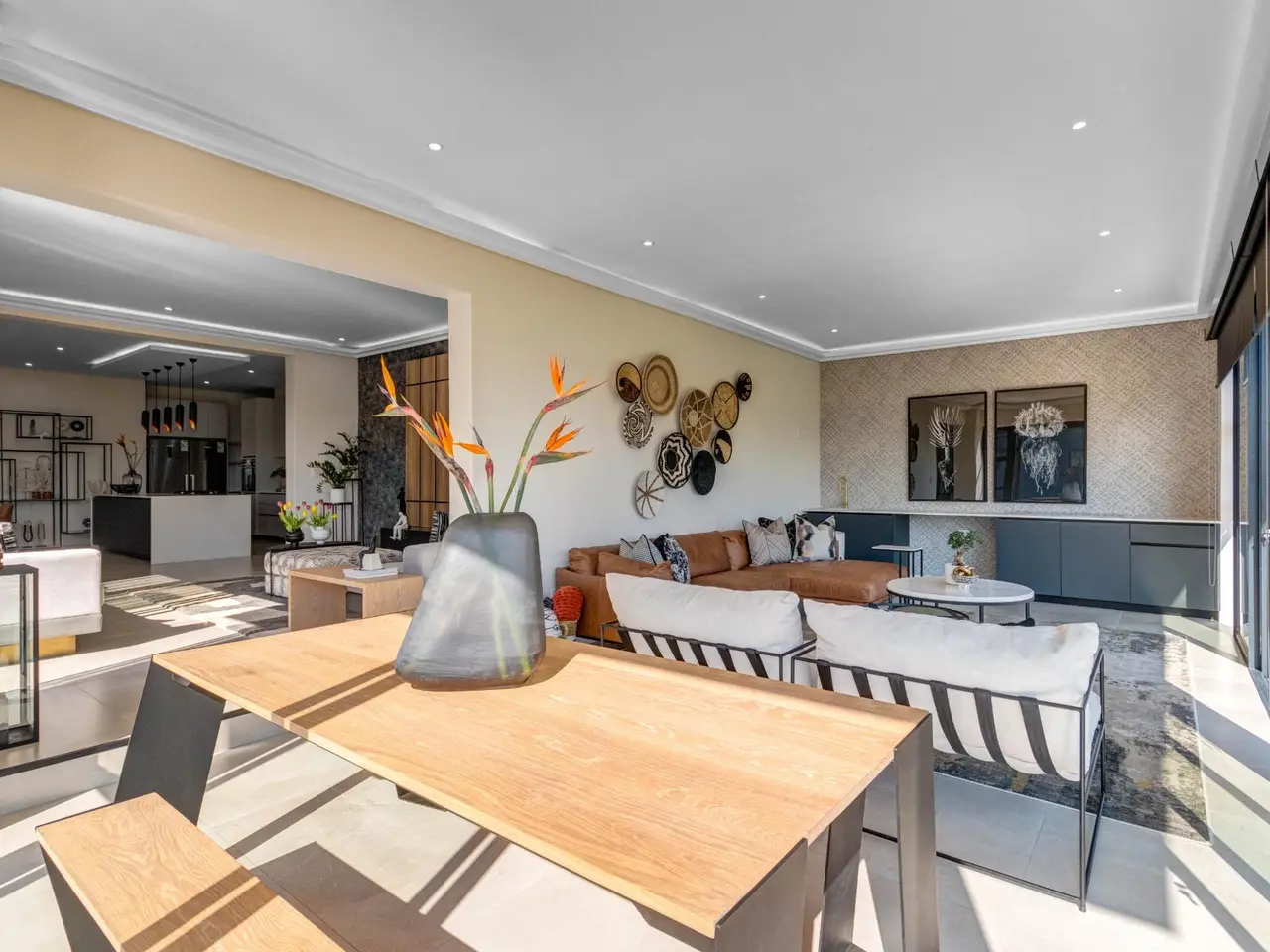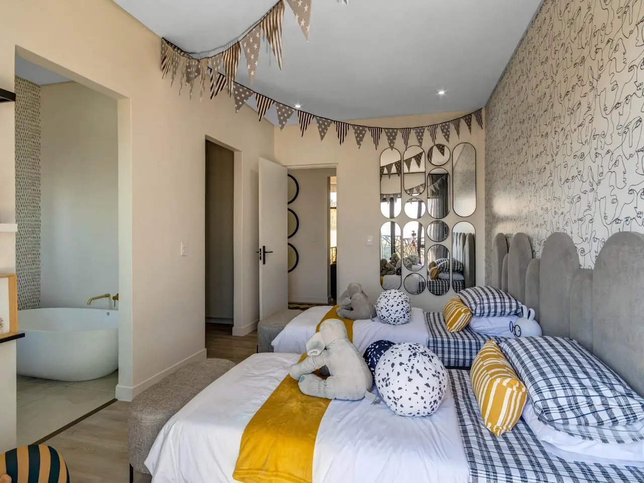 Discover luxurious living in this modern 4-bedroom home nestled in the prestigious Helderfontein Estate. Designed with contemporary elegance, the open-plan kitchen features built-in ovens, a 5-hob gas stove, and a scullery with space for three appliances. The kitchen seamlessly flows into the spacious lounge and dining area, creating a perfect setting for family gatherings and entertaining. The scullery leads to a triple garage and versatile staff quarters, which can also serve as a fifth bedroom with private access, maintaining the home's cohesive aesthetic. Enjoy an indoor-outdoor lifestyle with the home's expansive patio, an extension of the living space that includes a built-in braai, making it an ideal spot for relaxed evenings and social events. The lush garden and inviting pool can be accessed from the lounges, dining room, patio, and the downstairs guest bedroom, offering a seamless connection to the outdoors. The downstairs guest suite, complete with an en-suite bathroom and powder room, provides comfort and privacy for visitors. Upstairs, the home features three en-suite bedrooms, each with built-in cupboards and private balconies. The pajama lounge offers a cozy retreat for family relaxation. The master suite is a true sanctuary, boasting breathtaking views, a spacious walk-in closet, and a luxurious bathroom with double basins, a double shower, a bathtub, and a private toilet. This exquisite property also includes a solar system and water heating system, ensuring energy efficiency and sustainability. Live in unmatched comfort and style in this exceptional Helderfontein Estate home. Contact me today for an exclusive tour of this home!!