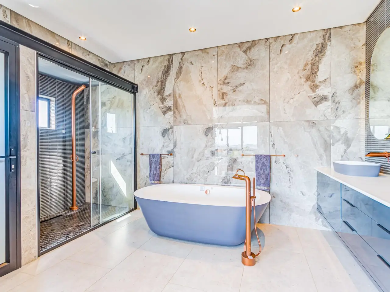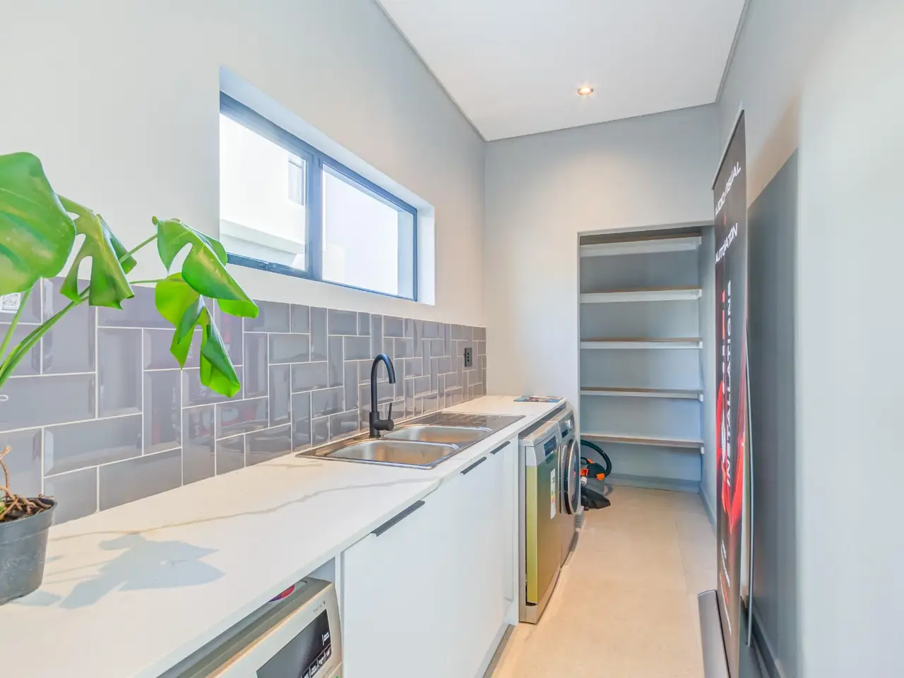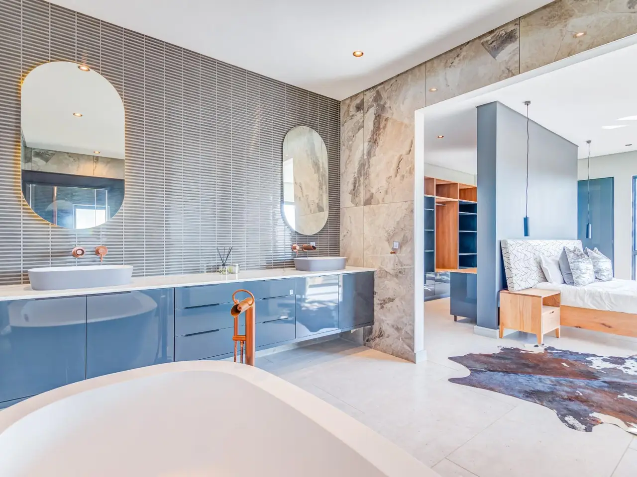 Welcome to this exquisite 5-bedroom home nestled in the sought-after estate of Helderfontein. This luxurious residence boasts a modern open-plan kitchen equipped with a built-in oven and microwave, a gas stove, and abundant cupboard space. The kitchen seamlessly connects to the pantry and scullery, which accommodates three appliances, making daily chores a breeze. The kitchen overlooks the elegant dining and lounge area, highlighted by a stunning statement chandelier and staircase. These living spaces extend to a patio equipped with a gas braai and extractor, perfect for entertaining. Outside, you'll find a spacious boma and a sparkling pool, ideal for relaxation and outdoor gatherings. Each of the five bedrooms in this home is en-suite, offering privacy and unique designs. The guest bedroom, conveniently located on the ground floor, provides easy access for visitors. Upstairs, the four additional bedrooms include the master suite, which features a beautiful view, a walk-in closet, and a luxurious bathroom with a double basin, dual shower heads, a unique modern bath, and a private toilet. The upper level also hosts a sizable pajama lounge, offering a cozy retreat for family time or relaxation and a kitchen net with an extended desk for your convenience. Completing this impressive property is a triple garage with direct access to the kitchen and a staff room at the back, ensuring convenience and functionality. The home is equipped with solar power and a heating pump, providing energy efficiency and sustainability. This residence in Helderfontein Estate is the epitome of luxury living, combining elegant design, practical amenities, and a prime location for an exceptional lifestyle. Don't miss out on this beautiful home, contact us for a viewing!!