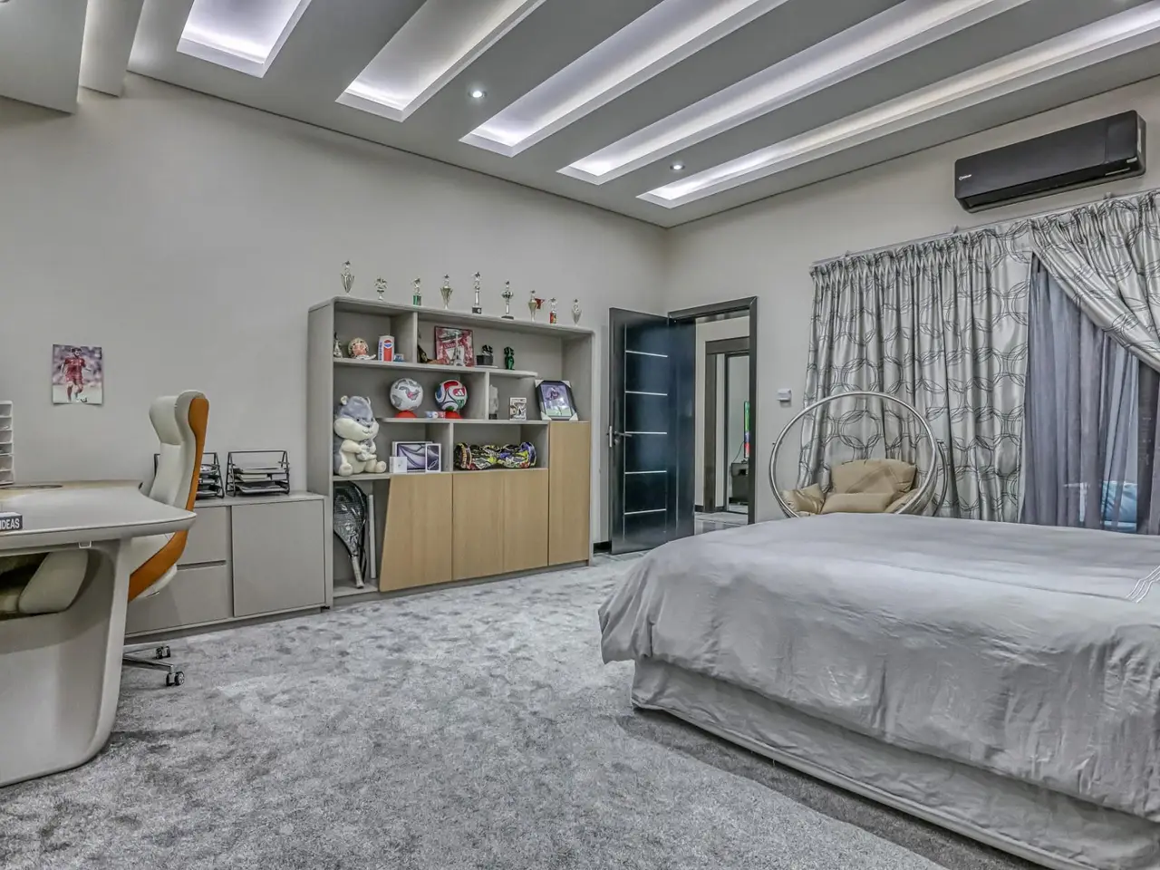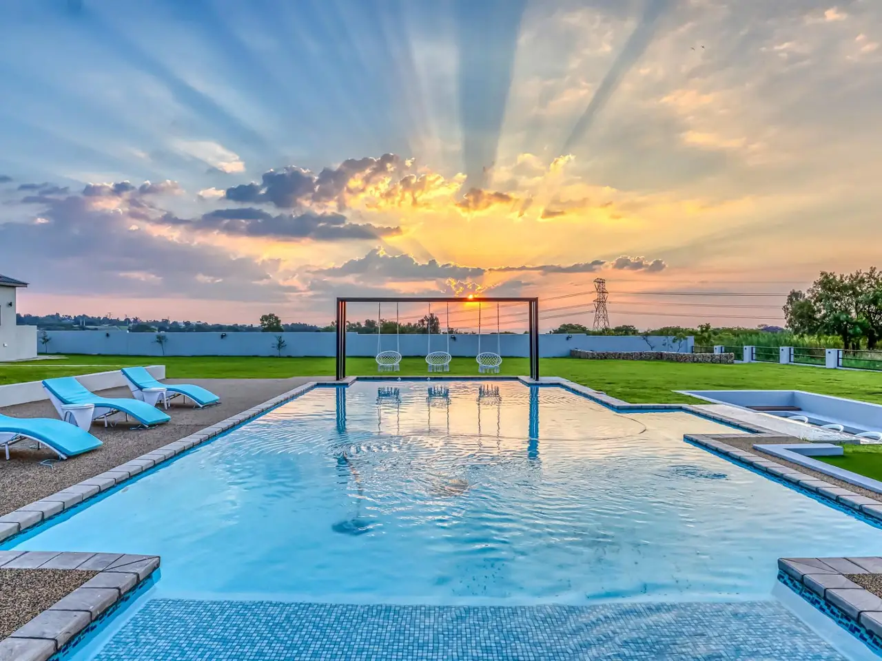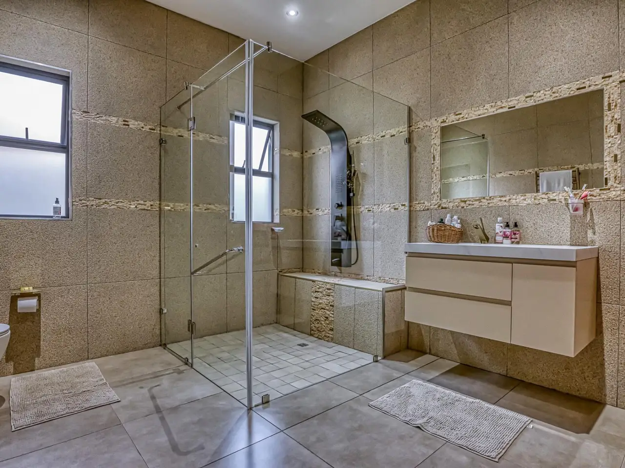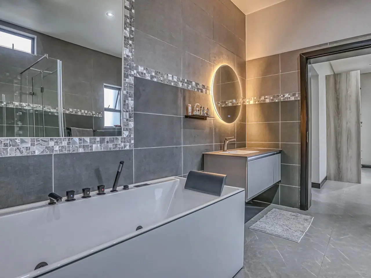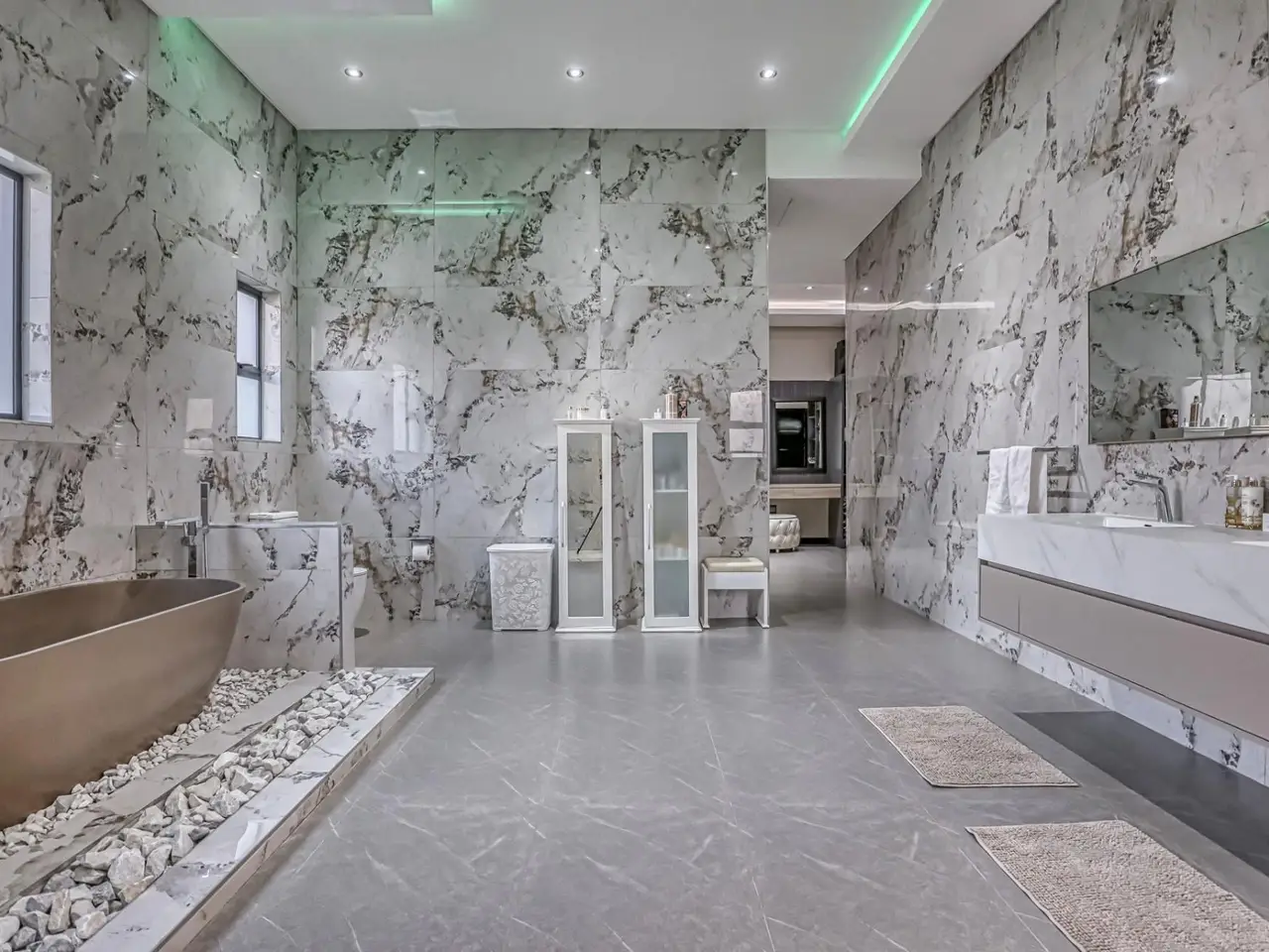 A Symphony of Glamour, Prestige & Modern Grandeur Excellence, prestige, and pure glamour define this ultra-luxurious 1,500sqm contemporary masterpiece set on a 5,000sqm stand in the elite Blue Hills Equestrian Estate GÇö a sanctuary for those who appreciate bold architecture, indulgent finishes, and the art of sophisticated living. From the moment you arrive, flowing water features, sleek lines, and grand proportions set the tone. The welcoming entrance hall unfolds into a world of opulent living GÇö formal lounges, a statement bar and champagne bar, and a series of entertainment zones designed for lavish gatherings and sunset soir+¬es. Expansive glass doors open to sun-drenched terraces where gold hues of the evening sky meet modern glamour. At the heart of the home lies a state-of-the-art kitchen, fitted with premium appliances, designer lighting, and bespoke cabinetry GÇö complemented by a walk-in pantry and meticulously planned scullery for seamless functionality. Five sumptuous en-suite bedrooms, each with elegant walk-in dressing rooms, offer privacy and comfort GÇö all thoughtfully positioned on the ground level. A private cinema room and family lounges invite relaxation in ultimate style. Ascend to the upper level, where an entire floor is dedicated to recreation and leisure GÇö featuring a fully equipped gym, library, billiards and ping pong area, and breathtaking panoramic views of the countryside. Outdoors, a west-facing pool house steals the show GÇö complete with a designer kitchen, gas cooking facilities, bathroom, and expansive seating and dining areas overlooking the sparkling pool. Perfect for sunset entertaining and endless summer nights. Luxury meets performance with a 20kW solar backup system with 28 panels, 10,000L water backup, staff suite, four spacious garages, and ample parking for five additional cars. This is a home for the connoisseur of fine living GÇö bold, beautiful, and utterly unforgettable. A once-in-a-lifetime opportunity to own a residence that redefines luxury.
