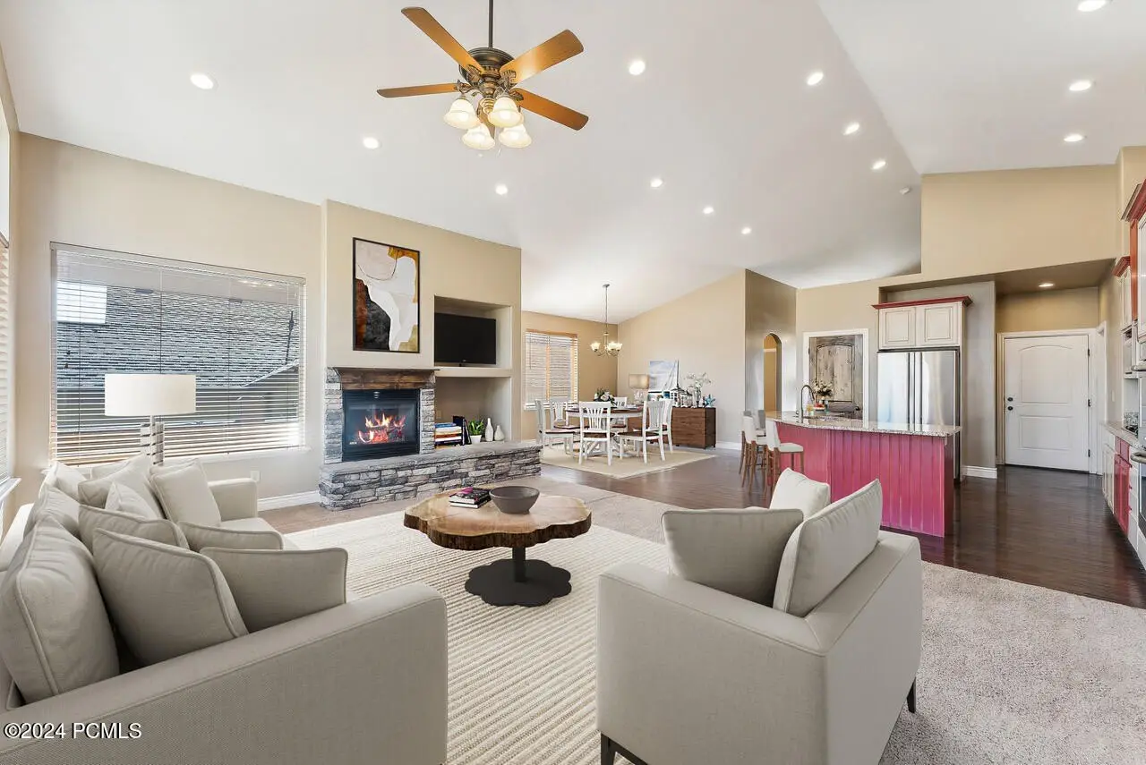 This perfect-sized home is designed for easy living and entertaining. Granite countertops and high-end finishes throughout. It features a comfortable open floorplan with a great room that has high vaulted ceilings and windows where you can enjoy views of the horse pastures and mountains. The master bedroom and bath are located on the main level along with 2 bedrooms and a full bathroom. A huge wraparound deck provides an excellent space to host family gatherings, outdoor dining to simply sit and enjoy the sunset. The lower level features a walkout entrance and game room with a large family room. The oversized garage has plenty of room for two cars, skis and bikes. Freshly painted interior Close to year round recreation including 5 local golf courses and world-class fly fishing. Just minutes from ski resorts, and water sports on Deer Creek and Jordanelle reservoir. an excellent HOA provides yard maintenance and snow removal. More info at www.sunburstranchhoa.com Info is courtesy only. Buyer to verify all info to buyer's own satisfaction.