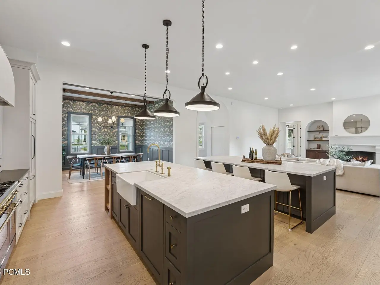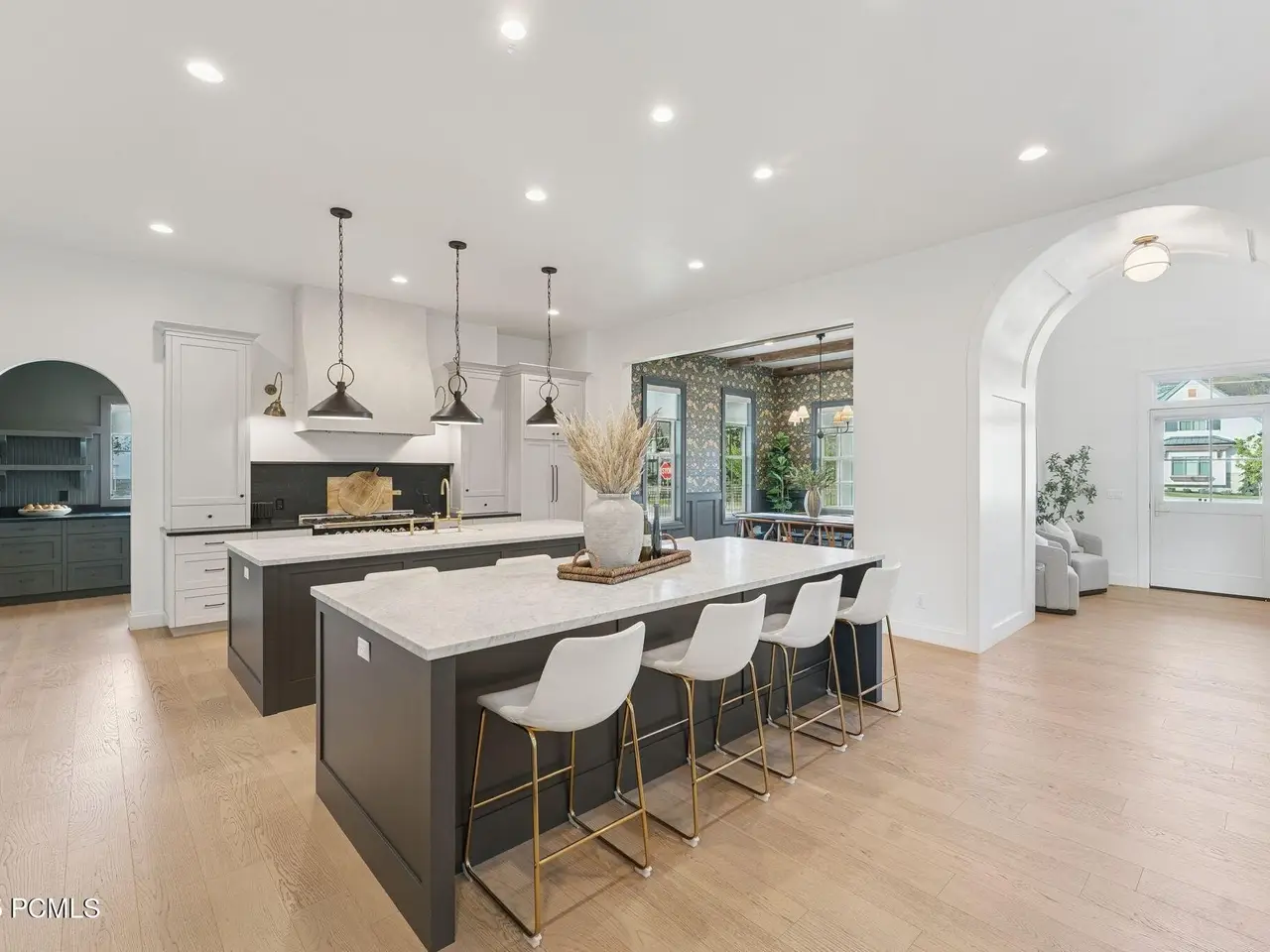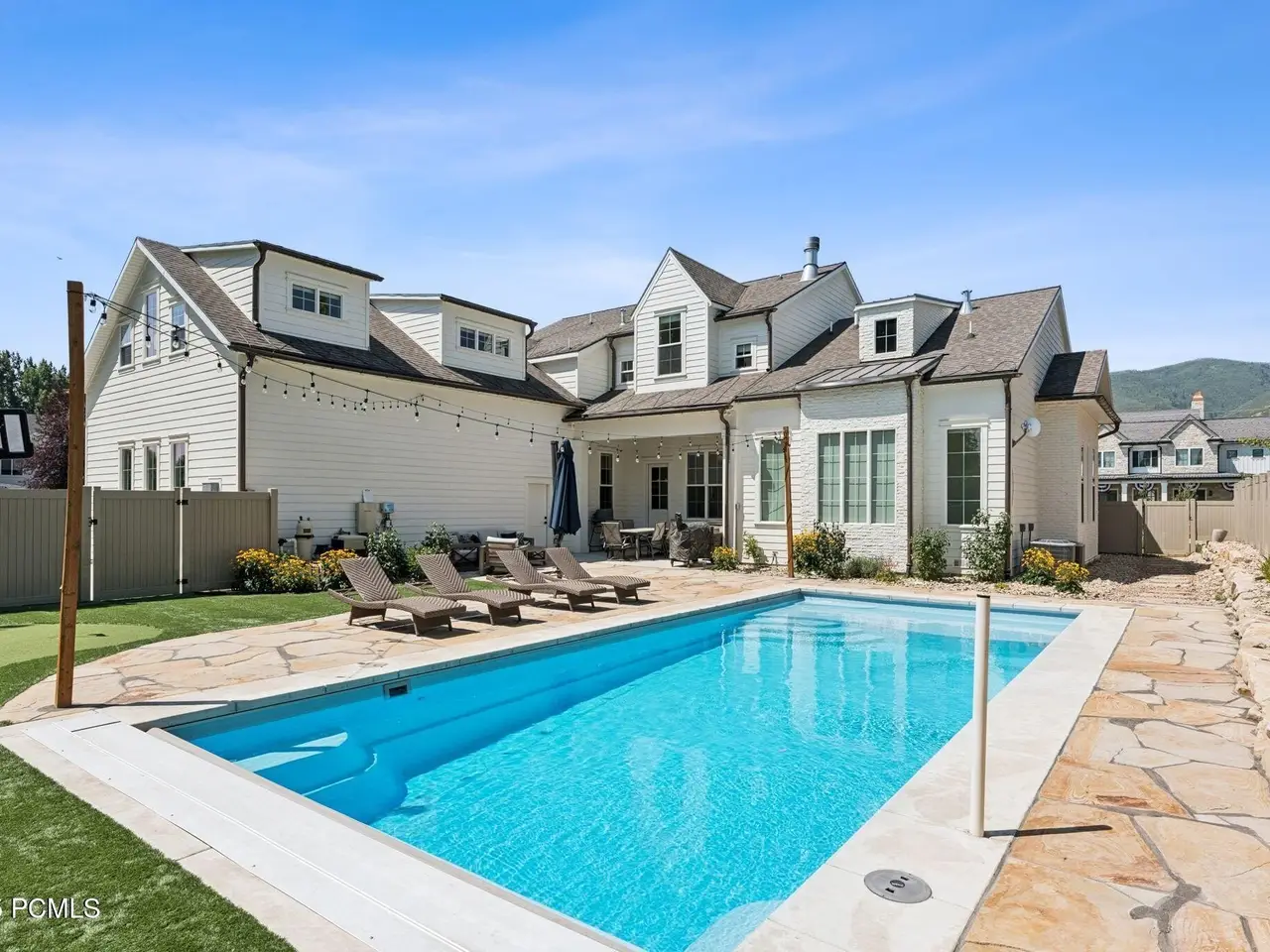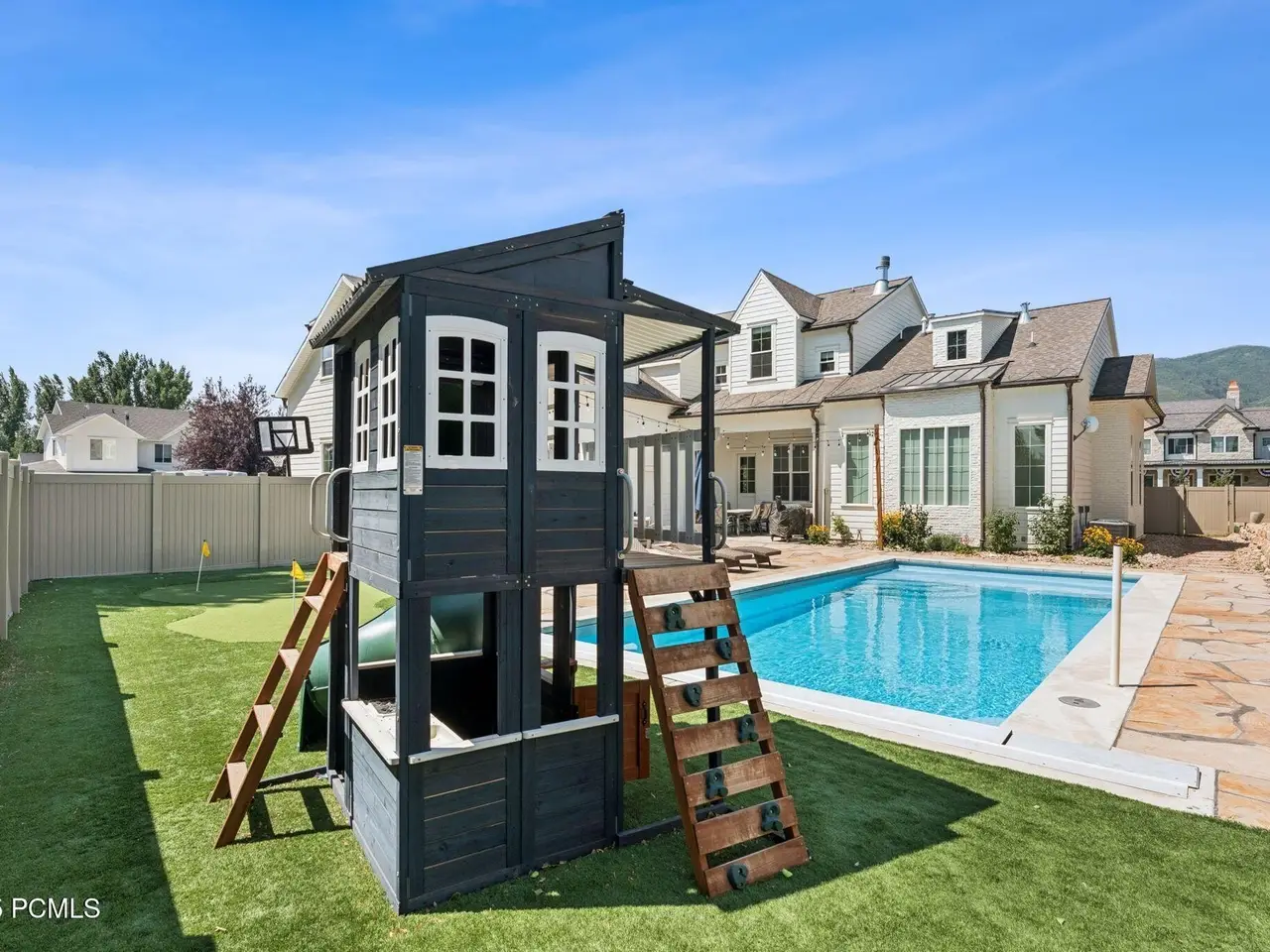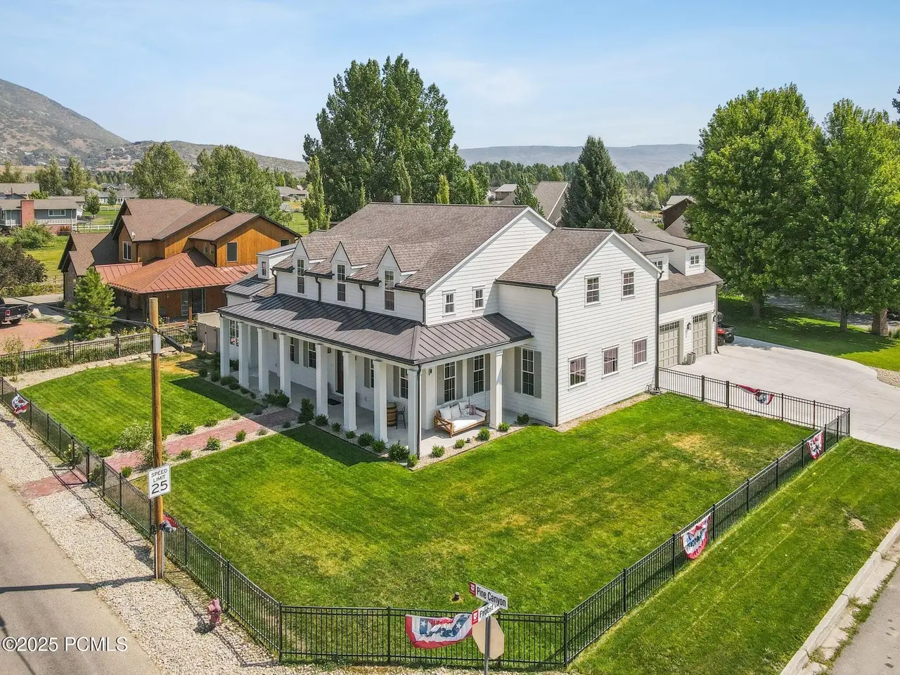 Built in 2022 on a cul-de-sac in charming Midway, this stunning custom home blends timeless elegance, modern comfort, and resort-style living. From its wrap-around porch to its professionally curated interior, every detail has been crafted to impress. Inside, a light-filled open floor plan connects inviting gathering spaces with private retreats. The chic chef's kitchen is a dream boasting an Italian made ILVE gas range, double islands, a Venetian plaster hood, and a spacious butler's pantry with an extra oven, dishwasher, sink and second refrigerator. The main-floor primary suite features dual closets, a soaker tub, spa like shower and its own laundry. Next to the main-level suite is a home office with custom built-ins that can double as a sixth bedroom or nursery. Four additional bedrooms (two are ensuite) and a bonus room upstairs offer comfort and privacy for all. The fully fenced backyard is your private resort—complete with a heated fiberglass pool with automatic cover, a putting green and playhouse. Additional highlights include 3 car garage, craft room, mud room, laundry on each floor and extra RV/boat parking. Just a short stroll to historic Main Street's shops, dining, and farmer's markets—and minutes from hiking, biking, golf, skiing, and Utah's pristine lakes and rivers—this home blends mountain charm, thoughtful design, and everyday luxury in perfect harmony.