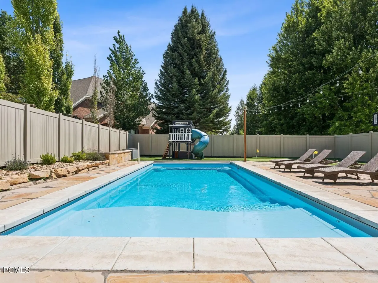 • Heated fiberglass pool with automatic cover
