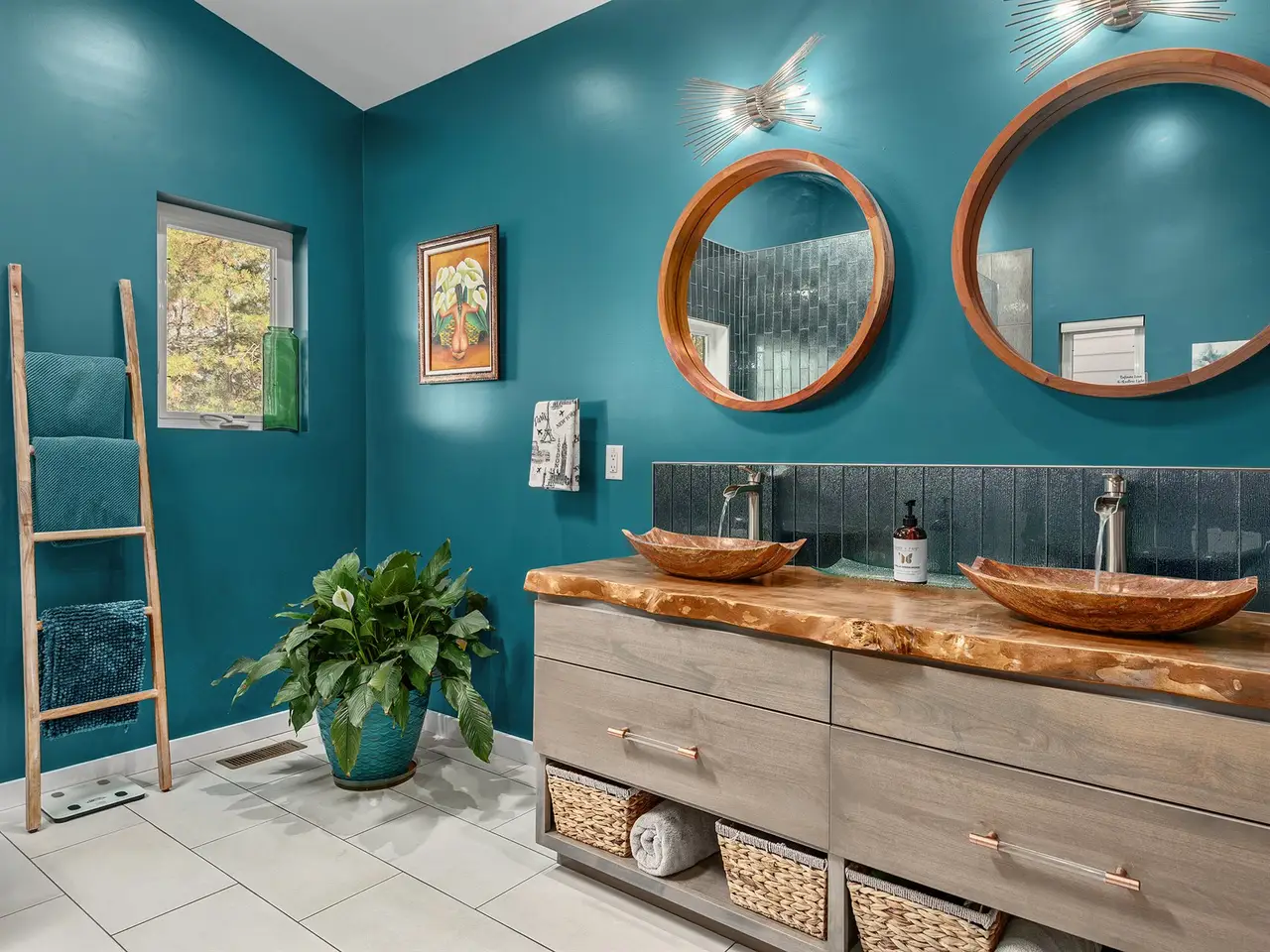 Natural edge Maple slab vanity in primary bath