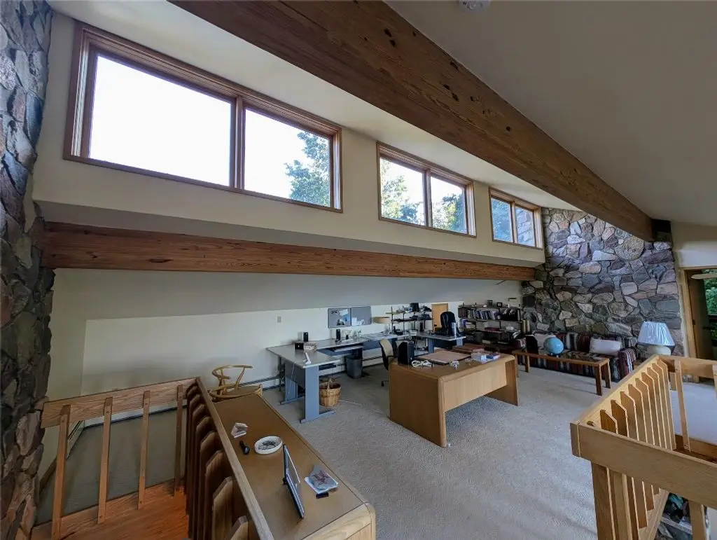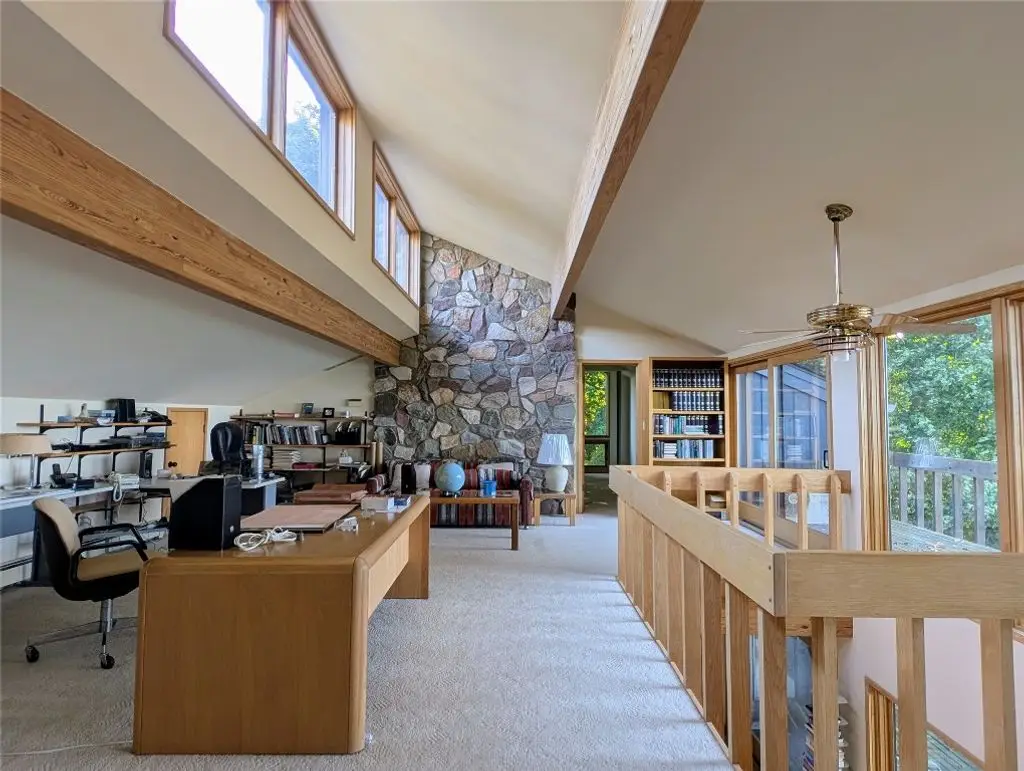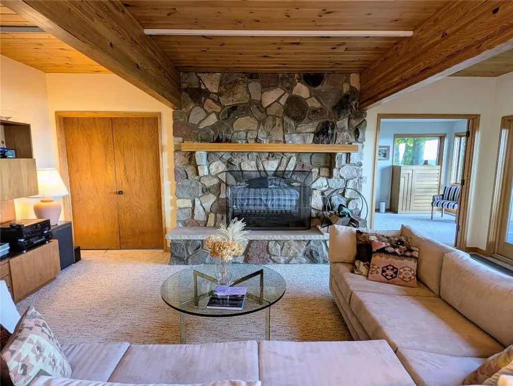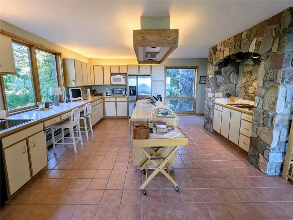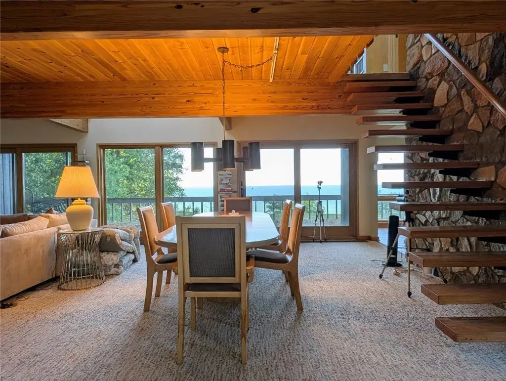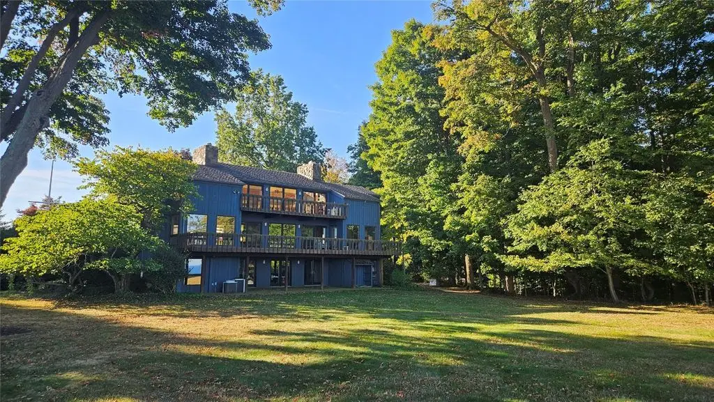 Experience lakeside luxury in this 3-level home, where panoramic views of the lake fill every window. Enjoy complete privacy and refined comfort, elegance, and ease. Elevator connects all floors plus a beautiful staircase to 3rd. floor. stunning woodwork ceilings enhances the warmth of the home. Double-sided masonry fireplace warms both the living room and primary suite, creating a cozy, elegant retreat surrounded by nature. Chef-inspired kitchen with expansive counter space for prep, abundant storage, layout designed for efficiency and entertaining. Home features gas well and a lifetime fiberglass roof.
