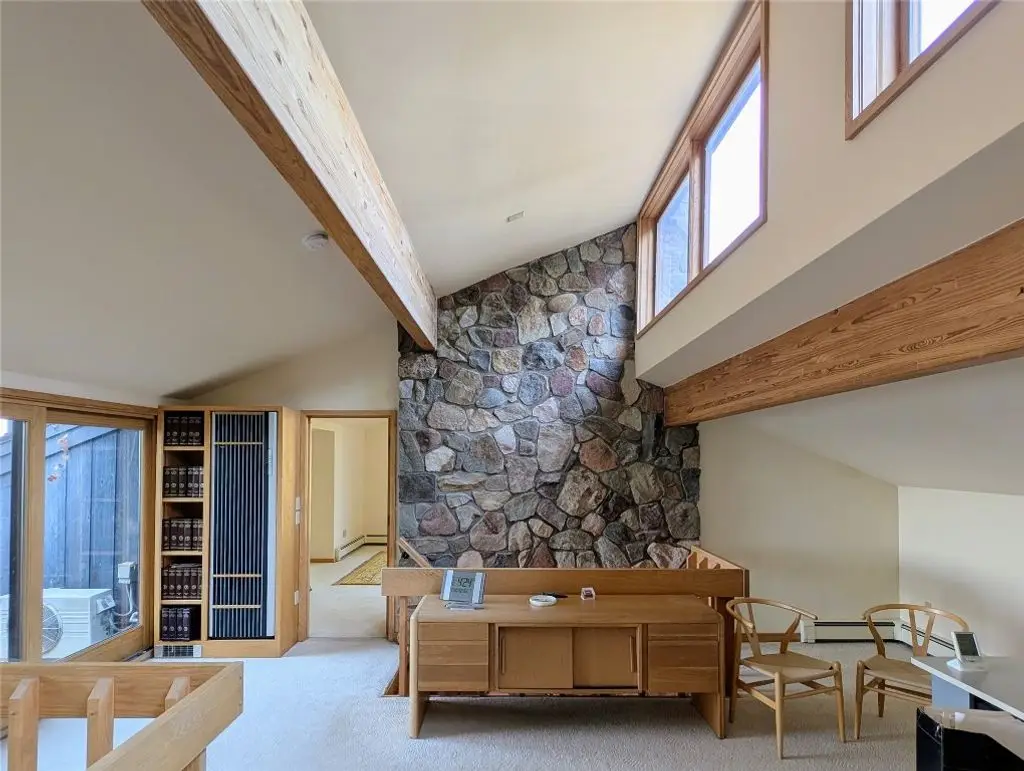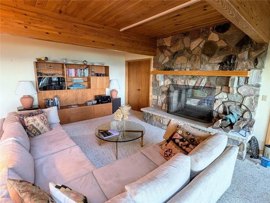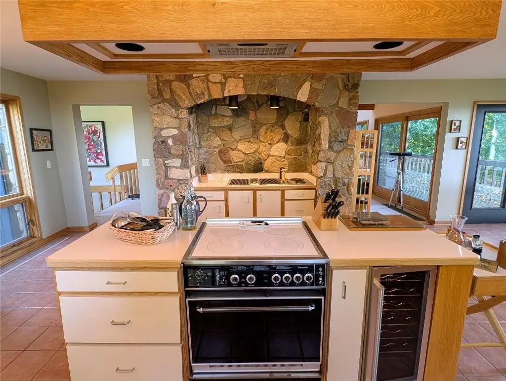 Stunning woodwork ceilings Double-sided masonry fireplace
