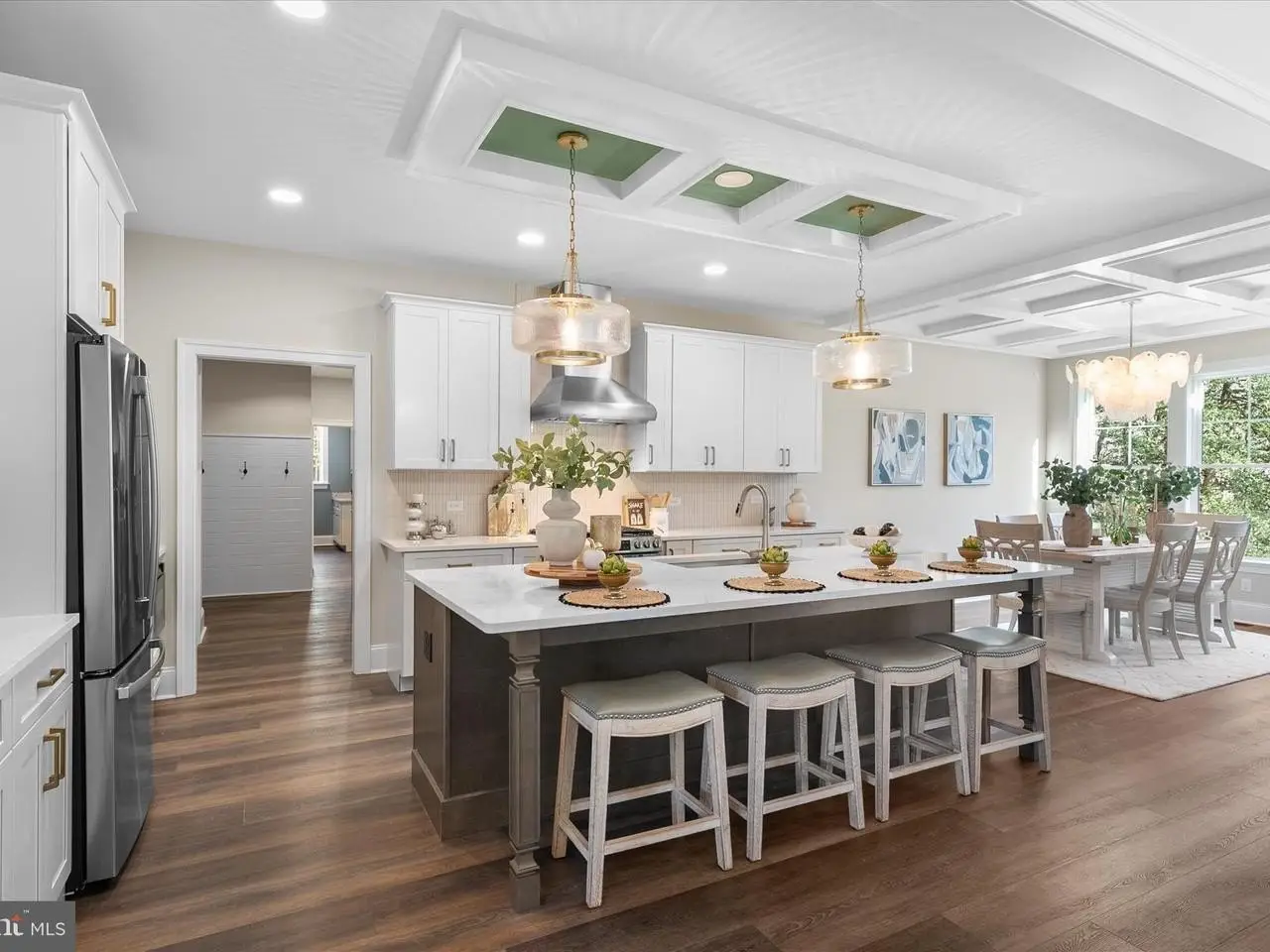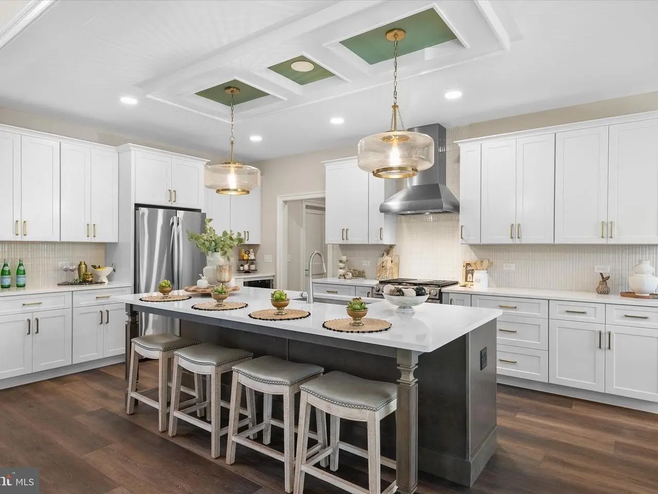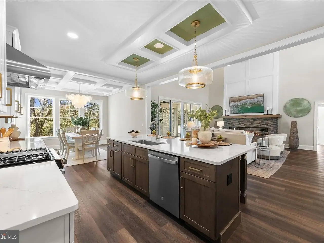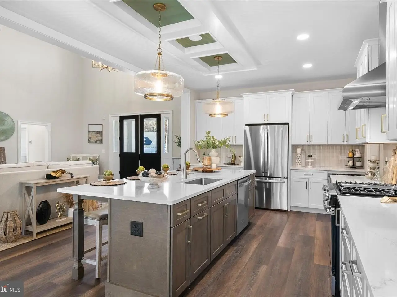 Introducing 24102 Ingram Drive, an architectural masterpiece crafted by Garrison Homes. This distinguished Georgetown model sits on a .82-acre homesite, privately backed by mature trees and designed to impress from every angle. The exterior blends modern and coastal elements with multiple roof peaks, a mix of horizontal, vertical, and shake siding accented by stone, and striking metal roof details. A sweeping walkway leads to the covered front porch, anchored by stately columns and double entry doors framed with sidelights, setting an inviting tone for what awaits inside. Step through the doors into a beautiful two-story great room featuring a sleek linear gas fireplace wrapped in stone, accented by a crisp white accent wall that carries to the ceiling. A dramatic wall of glass doors opens to the screened porch and composite rear deck, perfectly framing the wooded backdrop and flooding the interior with natural light. The open floor plan transitions effortlessly into a designer kitchen that is both functional and beautiful. A quartz island, illuminated by elegant pendant lighting, offers comfortable seating for casual meals and gatherings. The space is equipped with a full suite of stainless-steel appliances, including a five-burner gas range with a striking range hood, complemented by 42-inch soft-close cabinetry, detailed trim, and a stylish tile backsplash. Luxury vinyl plank flooring extends throughout the main level, unifying each space with a warm, contemporary aesthetic. The adjacent dining area, highlighted by coffered ceilings and a statement chandelier, provides the perfect atmosphere for entertaining. Just off the kitchen, a deep walk-in pantry offers ample storage, while a laundry room with cabinetry and a sink adds everyday convenience. A nearby mudroom with hooks creates an ideal drop zone for coats, bags, and shoes. The primary suite is a showpiece of craftsmanship and serenity, highlighted by a cathedral ceiling with white shiplap ceiling, dual walk-in closets, and a spa-like bath showcasing two vanities, a freestanding soaking tub beneath a chandelier, and a walk-in subway-tiled shower with dual showerheads and niches. Three additional bedrooms, each with walk-in closets and ceiling fans, provide comfortable accommodations on the main level. The side-entry two-car garage includes a separate exit door and a storage closet for convenience. Outside, the property is enhanced by professional landscaping with an irrigation system to keep it lush and green. The lower level offers endless potential with a full footprint of the home, walk-out access through glass sliding doors to a patio, and rough-in plumbing ready for customization. A third upper-level space with its own rough-in and two rooms adds flexibility for a future home office, gym, or guest retreat. Outside, the Ingrams Point community offers enchanting nature trails weaving through woodlands and along serene streams, as well as parks and open spaces, providing limitless opportunities for outdoor recreation. Indulge in nearby dining, shopping, and entertainment, while relishing the convenience of Delaware beaches and coastal amenities just a short drive away. Do not miss this rare opportunity to immerse yourself in the pinnacle of luxury living in the breathtaking Garrison Homes Georgetown model at Ingrams Point. Schedule your exclusive private tour today and embark on a journey of unparalleled refinement and sophistication.