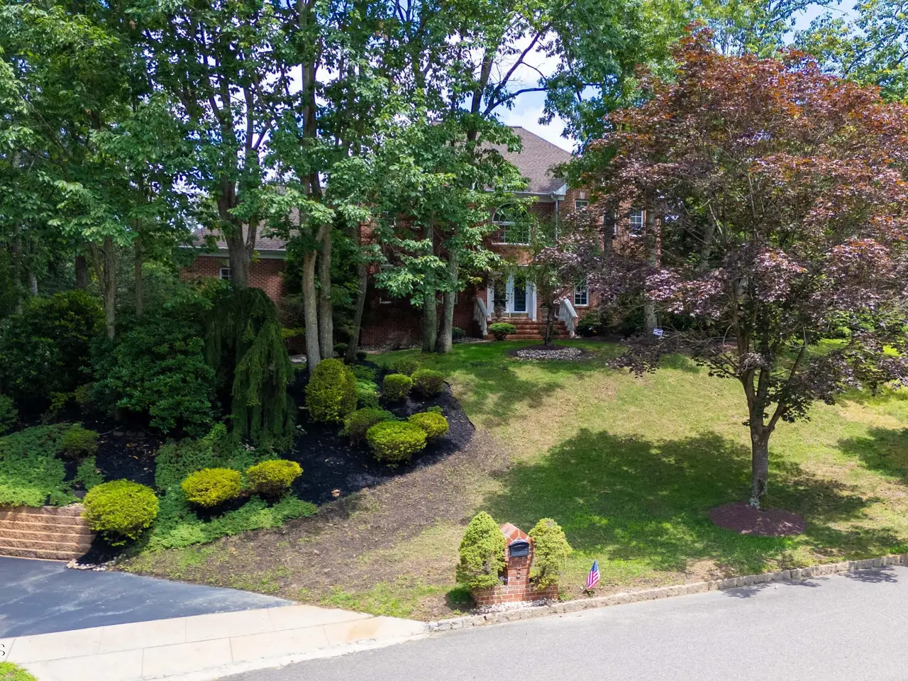 Beautiful full brick front center hall colonial located on a cul-de-sac, private lot, and professionally landscaped. Two story foyer and 9' ceilings on the first floor. Huge kitchen with maple cabinets, center island, and energy saving appliances. Spacious sunken great room with marble gas fireplace. Primary bedroom has sitting area, walk in closet and updated full bath with walk in shower and freestanding tub. All the bedrooms are good size with abundant closet space. Updated main bathroom. Full finished basement with storage area and half bathroom. 44x 13 deck that overlooks the private backyard. Roof replaced 12/2023. All this in a beautiful private development.