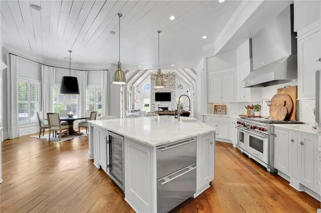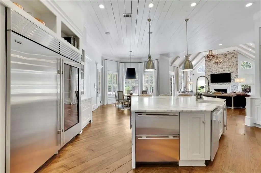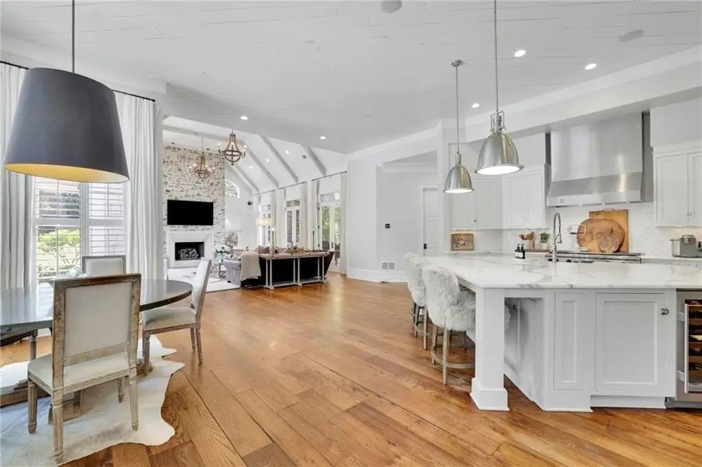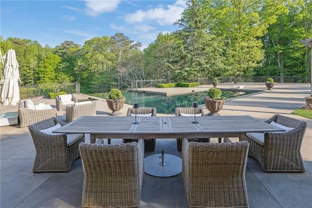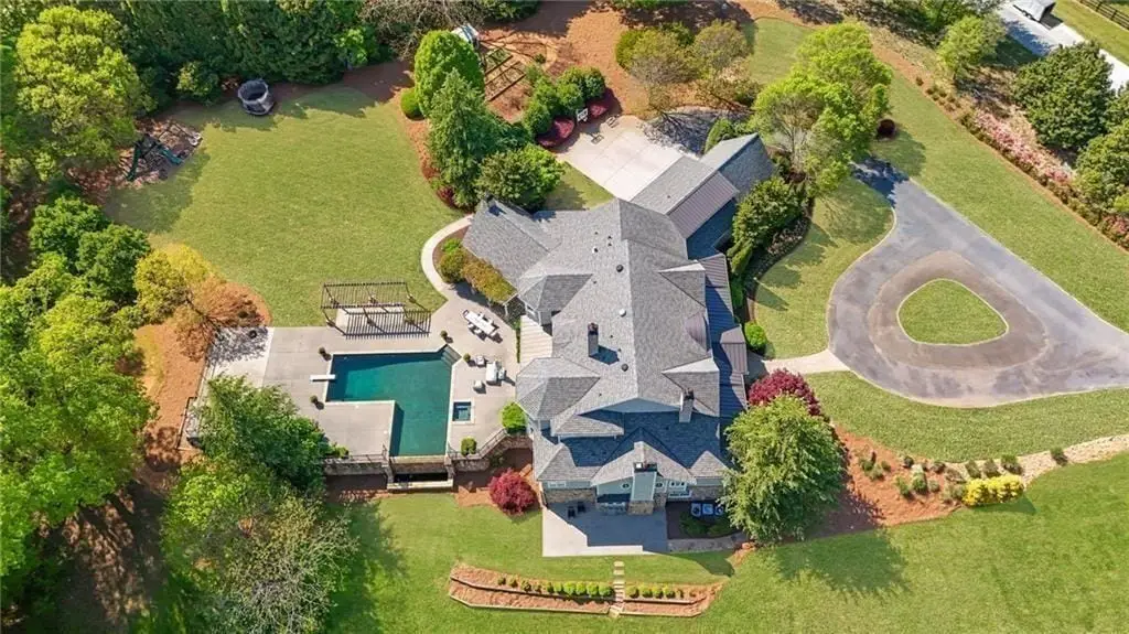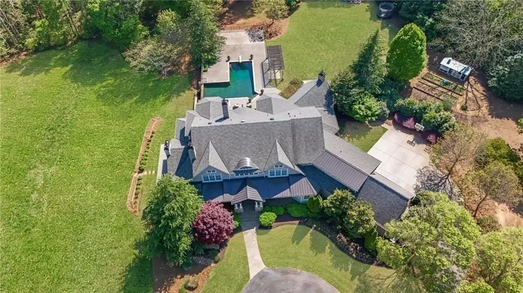An engaging masterpiece reminiscent of a Hamptons estate awaits on a tranquil 5-acre property, complete with an infinity pool, in coveted close-in Milton. Bordered by a Conservation Easement, the home offers rare privacy and natural beautyjust minutes from Milton, Alpharetta, and Roswell. Inspired architecture and exceptional design create a home that soothes, inspires, and stands apart from the predictable landscape of newer builds. Reclaimed rustic oak flooring and classic millwork grace the expansive foyer, where twin staircases frame a breathtaking view of the two-story fireside living roomworthy of Architectural Digest. An elegant formal dining room and rich office with built-ins and a fireplace make a striking first impression. Light-filled living spaces seamlessly connect to the outdoors, with walls of windows and French doors opening to an exquisite infinity pool and sprawling patio enveloped by lush greenery. The organic blend of stone, wood, and marble brings warmth to the spectacular gourmet kitchen, outfitted with high-end appliances and a large center island ideal for entertaining. A dramatic two-story family room features a stone fireplace and wood-beamed ceiling, awash in natural light. Privately set in its own wing, the stunning main-level primary suite boasts a wooden tray ceilings, a luxurious spa bath with coffee bar, and a versatile bonus spaceperfect for a quiet reading nook or home gym. Upstairs, discover four ensuite bedrooms and a spacious recreation room designed for creativity and play. The terrace level is the ultimate blend of fun and function, with exposed brick walls, a full bar, game room, gym, and an additional guest suite.With elevator access to all three levels, no one misses out on the festivitiesespecially on game day. Rarely is a home of this caliber so conveniently located near the charm of Historic Roswell, Downtown Milton, and Alpharetta. Retreat to this architectural gem where casual sophistication meets the best of Metro Atlanta livingclose to award-winning schools, premier shopping, and top-tier dining.Love Where You Live. Experience the Best of Both Worlds.