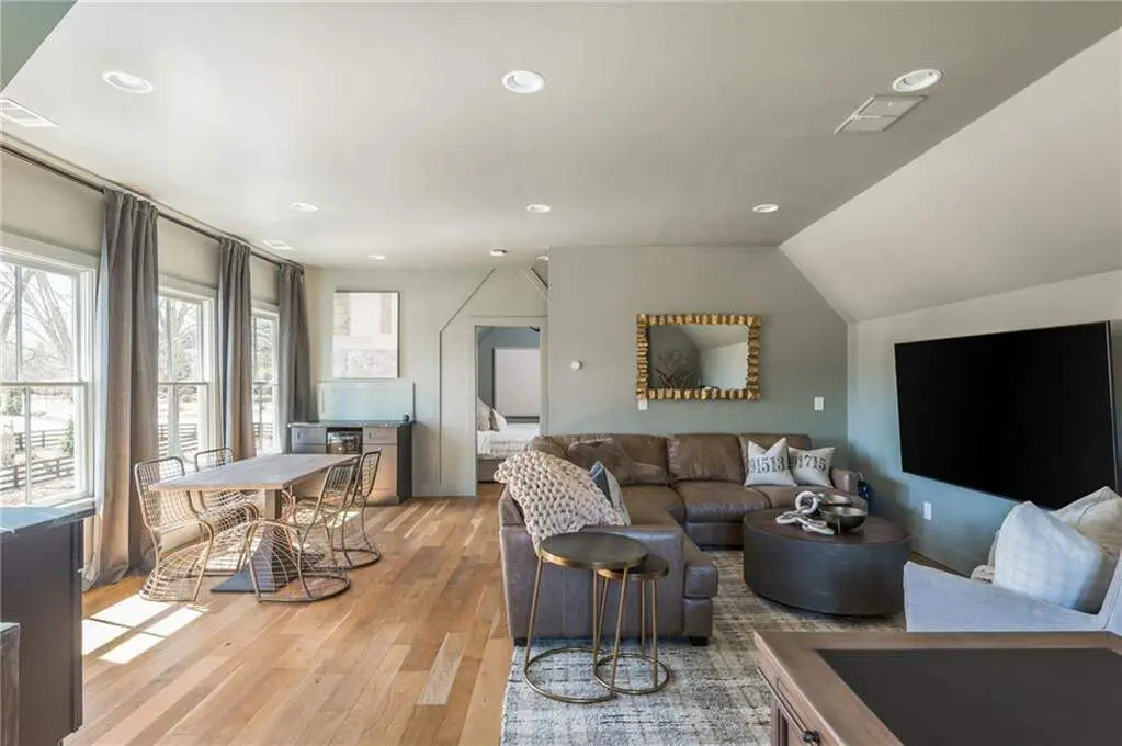 Experience the best of Milton living at 13815 Cowart Road, a truly one-of-a-kind property where thoughtful design meets unmatched outdoor living on over 3 spectacular, flat, private, and buildable acres. Tucked away on a peaceful dead-end street with no thru traffic, this coveted walk-out home is surrounded by natural beauty including protected wooded land across the street owned by Summit Hill Elementary that will never be developed. From the moment you arrive, the paved circular driveway and manicured landscaping welcome you with timeless curb appeal. Every detail of this home has been professionally designed with high-end finishes, custom lighting, and hardwood flooring throughout. The main level has an abundance of natural light and was made for entertaining and everyday comfort. Accordion doors open the living room to an enclosed porch with a wood-burning fireplace, creating a seamless indoor-outdoor flow. The chef's kitchen is a true showpiece, featuring dual islands, leathered marble countertops, Wolf appliances, custom cabinetry, and designer lighting. A walk-in butler's pantry offers exceptional storage and functionality. The formal dining room shines with its own fireplace and space for large gatherings, while a spacious mudroom includes laundry, extra fridge, workstations, and built-ins for effortless organization. The primary suite on the main level offers a luxurious, private retreat with rare separate his and hers closets with custom closet systems. The en-suite bath features custom tilework, designer mirrors, and high-end lighting. Floating stairs lead to three upstairs bedrooms, two bathrooms, and a secondary laundry room, while a separate staircase leads to a private guest suite above the garage with its own living space-perfect for guests, teens, or multi-generational living. Outside of the spectacular home, the land and outdoor wonderland is what makes this property truly unforgettable and special. The backyard is a private oasis designed with bot