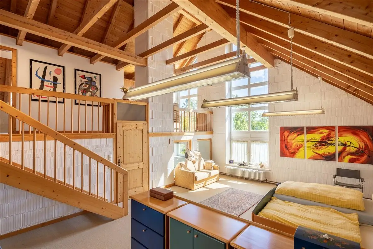 This unique property is far more than just a former farmhouse - it is a retreat for people who are looking for something special: Peace, space and a deep connection to nature. On a generous plot of approx. 5,092 m² (+8500 m² optional), this lovingly preserved and modernized farmhouse offers around 409 m² of living space and a total of 9 rooms. The origins of the house date back to 1900. In 1996, an adjoining barn was demolished to make room for a well-designed new extension. Great importance was attached to preserving the original character and style of the property - the result is a harmonious ensemble that harmoniously combines old and new. The property has been regularly modernized and maintained over the years, always with great sensitivity to the original charm. The last major measure was carried out in 2008 with the installation of a modern air-to-water heat pump, which has served as the central heating system ever since - efficient, environmentally friendly and contemporary. The spacious living area with open fireplace and the cozy parlor with traditional tiled stove provide additional cozy warmth and an unmistakable feeling of home. A special highlight is the upper floor with an individually designed studio, its own sauna and an exclusive master bathroom en suite. The house offers a total of five bedrooms and three modern bathrooms - ideal for large families or discerning guests. However, the real special feature is revealed outside: the extensive plot provides space to live, dream and create. Whether for gardening, keeping small animals or simply enjoying the almost untouched tranquillity, here you will experience a natural idyll that feels like a secluded location - far away from the hustle and bustle, but still well connected. Optionally, an adjoining plot of land with a further approx. 8,500 m² of green space can also be purchased, impressively extending the already generous area. The property has ample parking spaces, including a double garage, two large carports and plenty of outdoor parking spaces. There is also plenty of space for larger vehicles such as vans, motorhomes or trailers. This property is perfect for people who appreciate spaciousness, closeness to nature and privacy - without having to compromise on modern living comfort. The combination of traditional flair and contemporary furnishings makes this home a real place of the heart. Be inspired by the magic of this property during a viewing - your new life in the countryside awaits you here