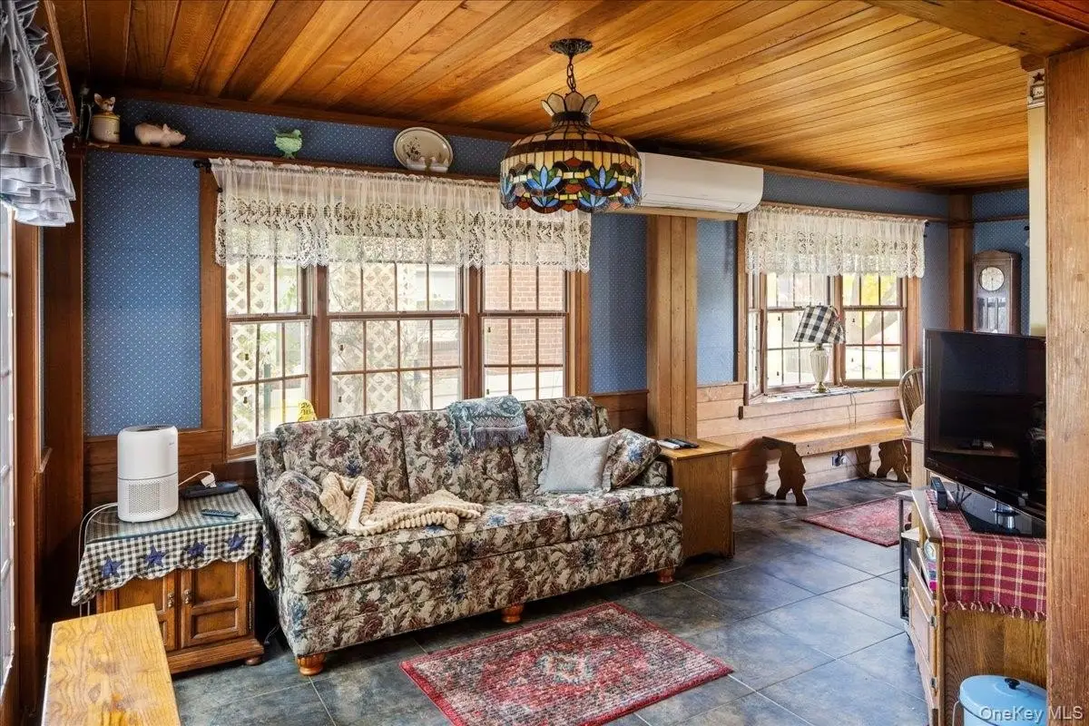 Welcome to 331 Mineola Boulevard, Mineola. Very rarely does a home of this grandeur, this pedigree and in the famed “Boulevard Section” come on the market. It has been almost 50 years since this JEWEL of the Boulevard Section has been for sale. This could be a once in a lifetime opportunity. This classically designed Colonial Revival home was custom built in 1921 and was one of the original grand estates on Mineola Boulevard. The classic and timeless details of this masterpiece of a home are found throughout. It grandly sits on a raised property on one of the largest parcels in the area. The oversized and magnificent property has 100 foot frontage. The lot dimensions of 100 x 232 x100 x 235 make an approximate lot of 23,400 square feet which is over a half acre of lush grounds. The palatial backyard has covered porches, a large koi pond, a stunning large and separately fenced area perfect for a pool and a newly built oversized detached two car garage. Looking at the grand facade of this home you can feel the history and character of its 104 years. Inside on the first floor you enter the home through a spacious foyer which leads to a grand and oversized living room with original beamed ceilings, original woodwork that has never been painted and a large mantled wood burning fireplace. Off the living room is a porch with all brand new windows with original stained glass, fireplace and split AC/heating unit. The truly grand and formal dining room exudes timeless grandeur with original stained glass, original wood decorations and an dropped ceiling shelf to showcase cherished momentos. The oversized eat in kitchen also has a separate butlers pantry and opens up to a cozy den with original stained glass windows and sliding doors to the rear of the home. Also on the first floor is a half bathroom and the original library of the home which is also used as a home office. The kitchen also has a split staircase for easy access to the second floor. The second floor consists of a large primary bedroom that has an interior door that connects it to another full bedroom that could be used a dressing room. The other four bedrooms on this floor are all oversized. The second floor also has a large landing area as well as a full bathroom. A full wide staircase opens up to the huge attic that can be utilized for storage. The basement of the home is full and partially finished with several finished rooms, a half bathroom, Bilco door access to the rear property, laundry area as well as extensive storage. 331 Mineola Boulevard, Mineola is a dream come true…make it your reality.