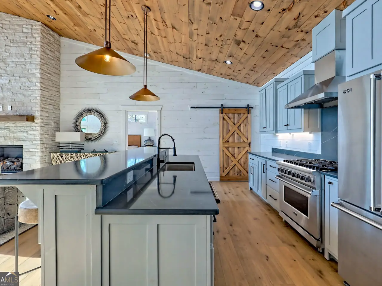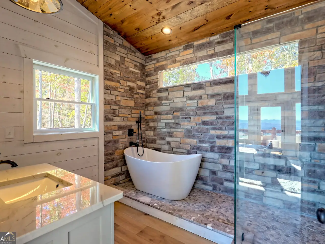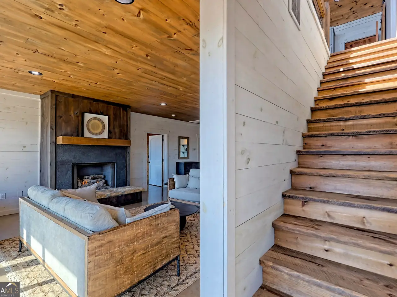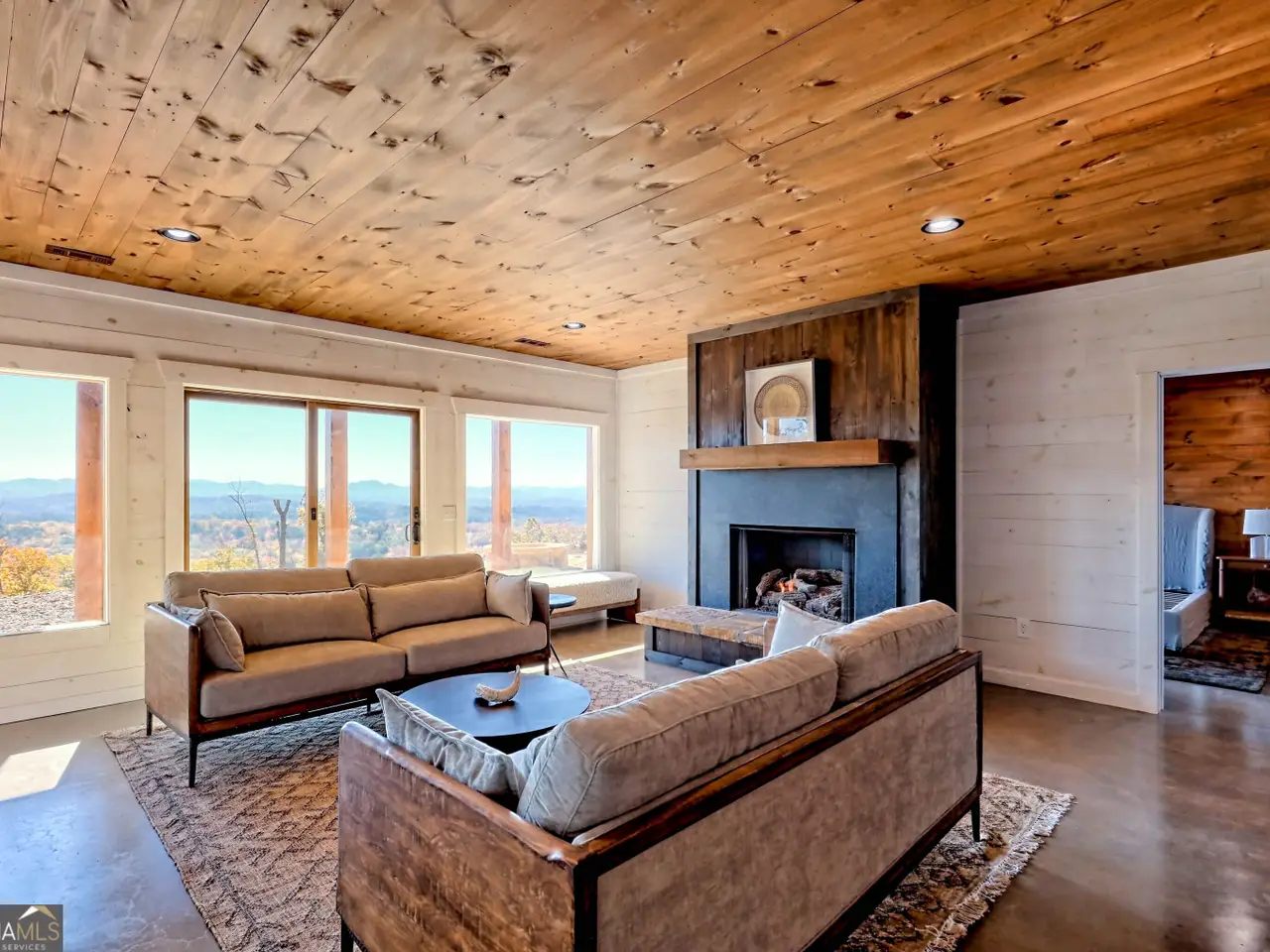 Perched in the peaceful North Georgia mountains, 530 Tower Road in Mineral Bluff offers the perfect blend of modern elegance. This stunning, fully furnished 4-bedroom, 4.5-bath home boasts an open, airy layout with vaulted ceilings and expansive windows that fill the home with light while framing the incredible long range views. The kitchen is a chef's dream, complete with high-end appliances and custom finishes, ideal for both everyday cooking and entertaining. The spacious great room, centered around a cozy fireplace, provides the perfect spot for gathering with friends and family. Step outside to the sprawling deck, where the fresh mountain air and gorgeous views create a peaceful retreat for relaxation or outdoor entertaining. Two primary suites on the main level offer spa-like amenities and access to the outdoors, while the additional 2 bedrooms each have their own en-suite baths, providing privacy and comfort for family and guests. With proximity to world-class hiking, trout fishing, and the charming town of Blue Ridge, 530 Tower Rd is a mountain retreat where luxury meets nature, perfect for both relaxation and adventure.