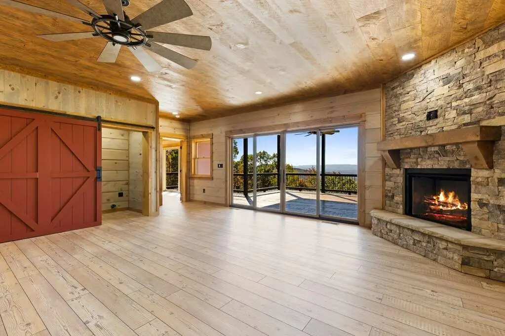 ITS ALL ABOUT THE VIEW...and QUALITY! Easily accessible on all paved roads, this stunning mountain retreat offers 180 degree long range YEAR ROUND mountain views. Thoughtfully designed throughout. 3 KING SIZED bedrooms, each with full bath, plus 2 half baths, this property blends rustic charm with modern efficiency. The master suite on the main level provides comfort and privacy while multiple decks and four fireplaces -including an inviting fire pit with concrete seating pads create the perfect spaces for relaxation or entertaining. Beautiful professional landscaping enhances the outdoor experience. Built with the latest technology and for peace of mind, the home includes a concrete driveway, 22kw whole house generator, 7.2 battery backup, prewired EV charging outlet, solar ready connections, along with portable and essential circuit generator hookups. Enjoy an included 20k appliance package, LED soffit lighting, washer/dryer and additional enclosed storage under terrace level. The low maintenance exterior with all clad windows/doors ensures lasting beauty with minimal upkeep. Conveniently located, this property is the ultimate in mountain serenity, modern preparedness and enduring quality- a true have for those who appreciate comfort , views, and adventure.
