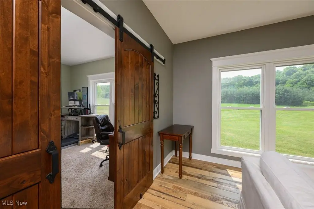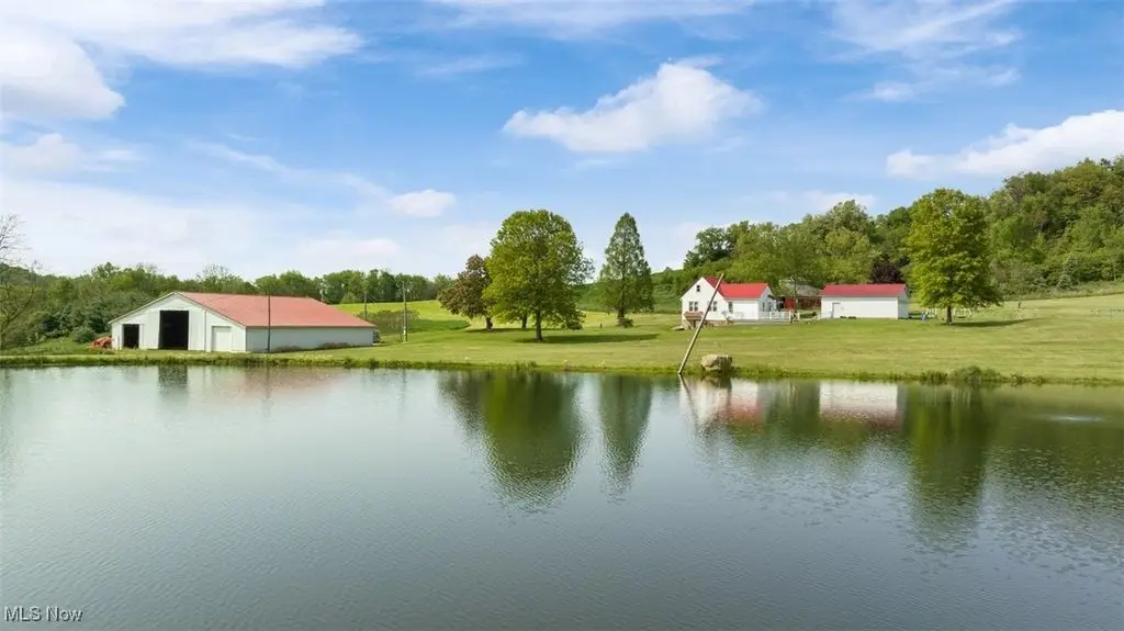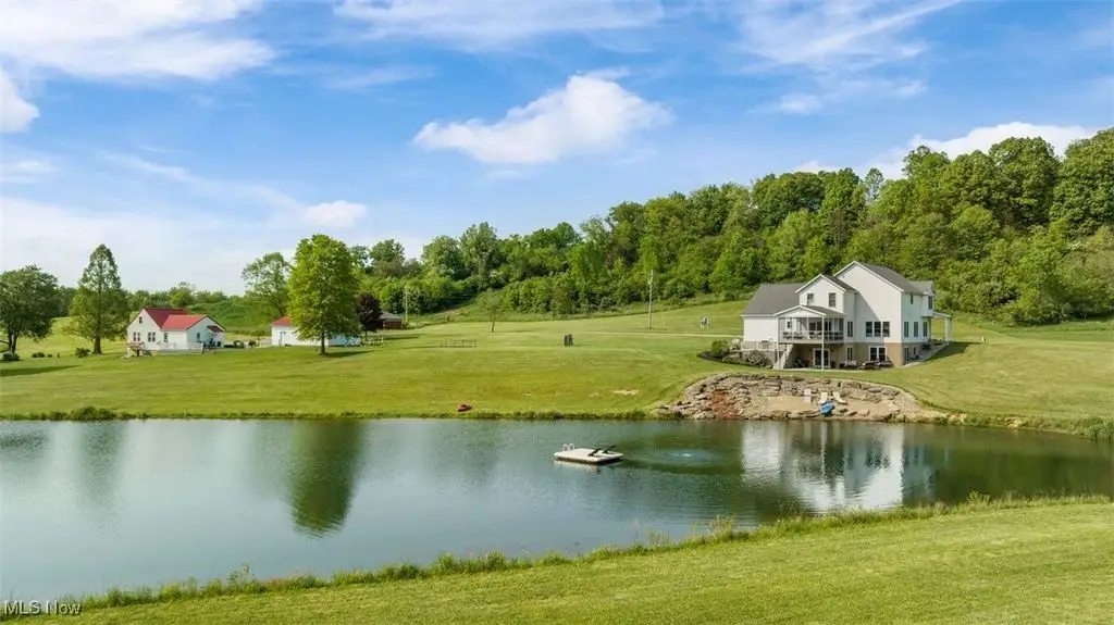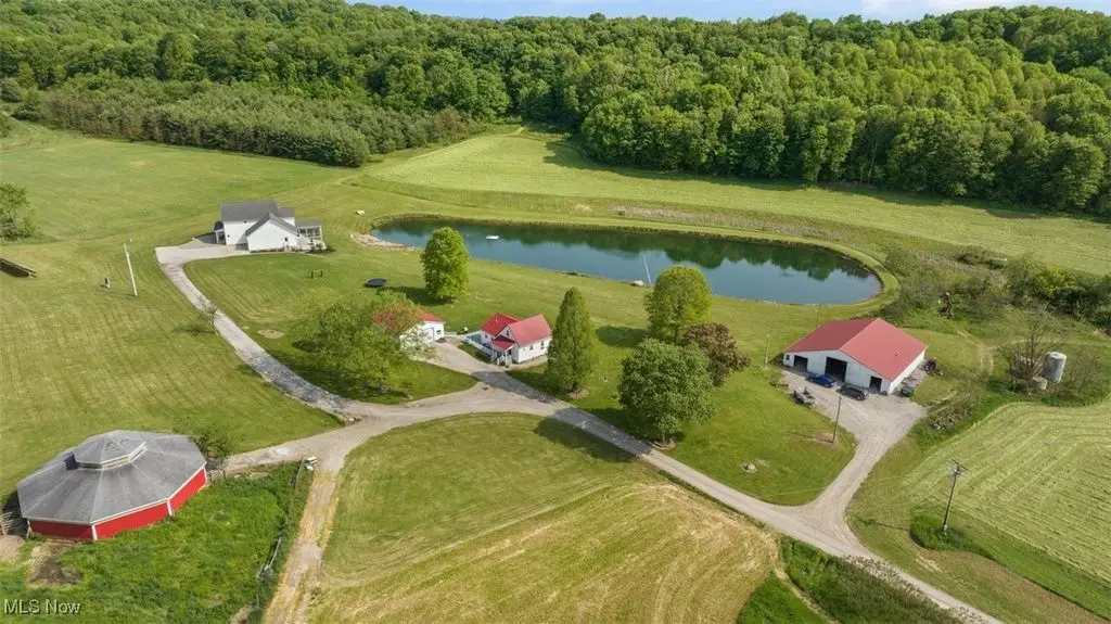 Take the bridge over the stream and pass through the woods to be transported into "Buttermilk Hollow!" This 40-acre secluded paradise features 15 acres of crop land, stocked pond w/ catfish and bass, 60 x 64 pole barn with heated workshop, and a 56-foot octagonal barn with 14 stalls w/ water and electric! There are two houses on the property. The main home was custom built by Weaver construction in 2015 and features 4 bedrooms and 3 1/2 baths. Features include exposed brick walls, reclaimed barn wood flooring, expansive windows overlooking the property, 9-foot ceilings, and abundant Riceland cabinetry. Incredible open concept in the living area with barn doors to the first-floor office and triple slider to the screened in porch that leads to a deck and covered patio. Phenomenal back hall w/ built in lockers, mudroom, and walk-in pantry. Incredible master suite w/ double sinks, tiled shower, tub, and huge walk-in closet. Spacious second-floor laundry. Walk out lower-level w/ exercise room, bedroom, full bath, kitchenette w/ bar, projector/screen, and sliders to the patio. The main home overlooks the pond with a sand beach area and floating dock. The additional century home has a first-floor bedroom, laundry, and full bath. Additional features 2nd attic bedroom, expensive decking, and a 28 x 28 detached garage. Owner invested in solar panels that produce $200/month savings & there is free gas to the home! A natural spring refreshes the pond. Absolute dream property!