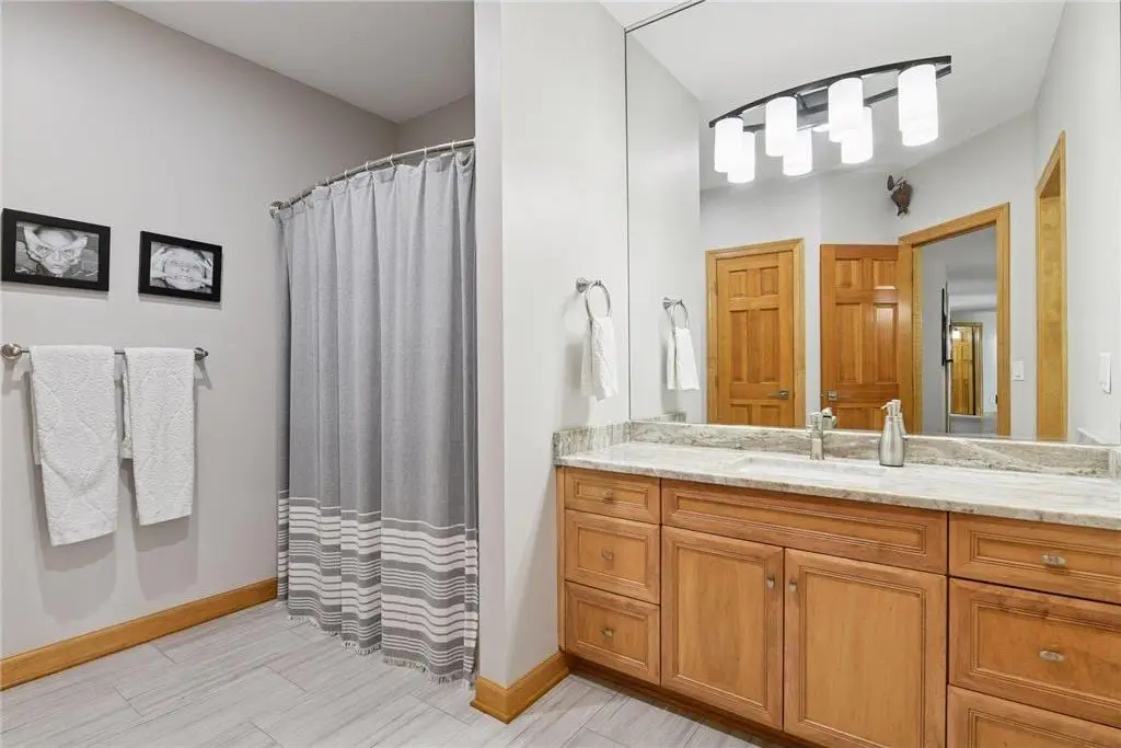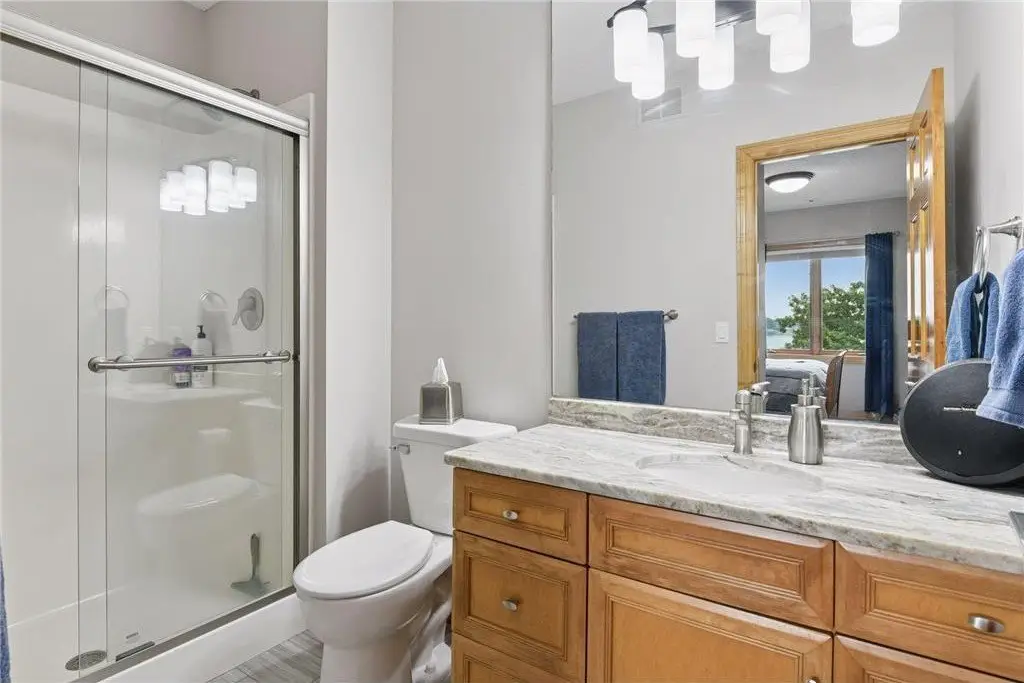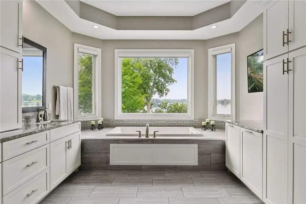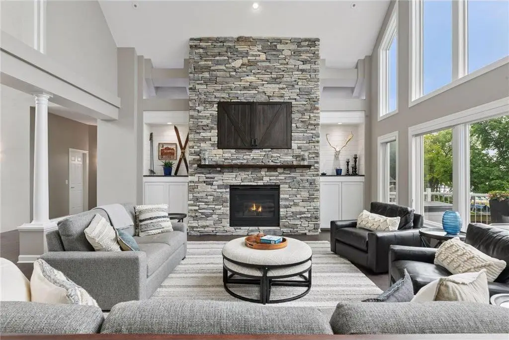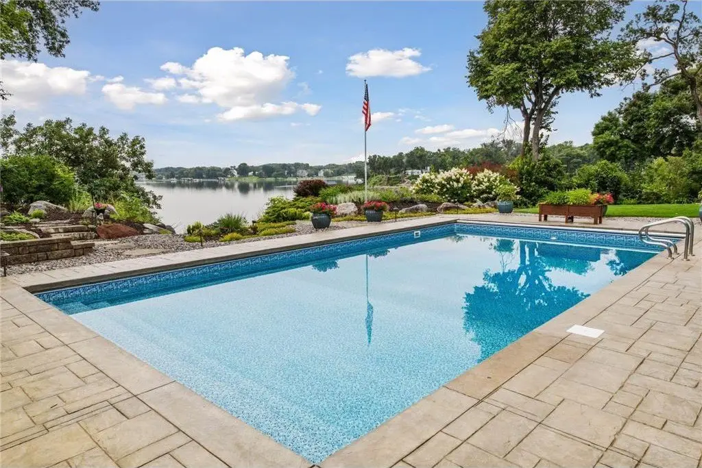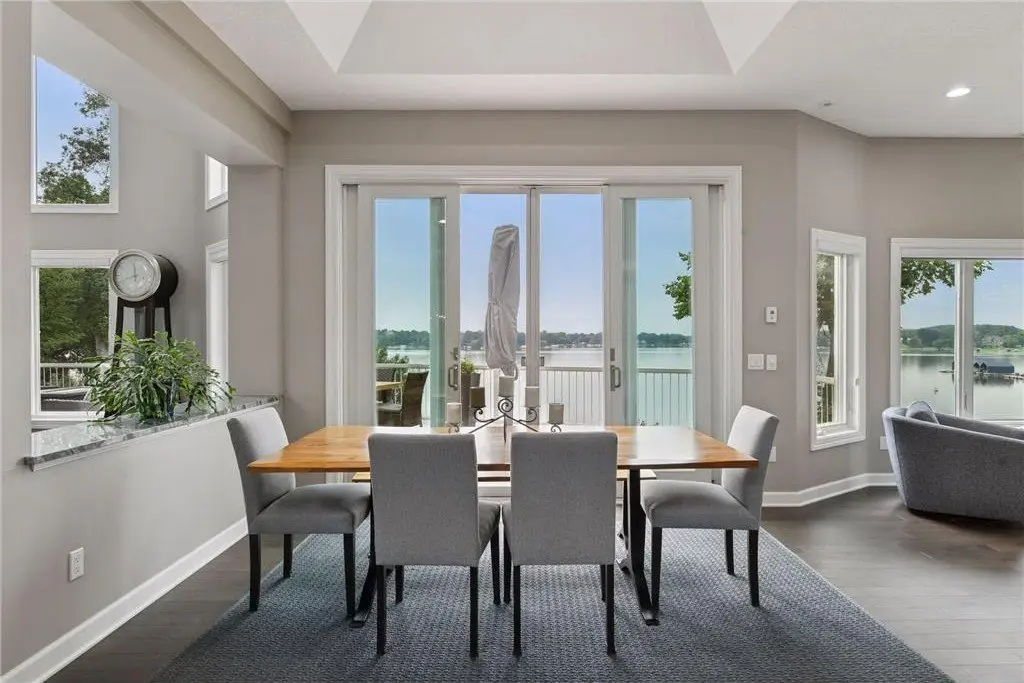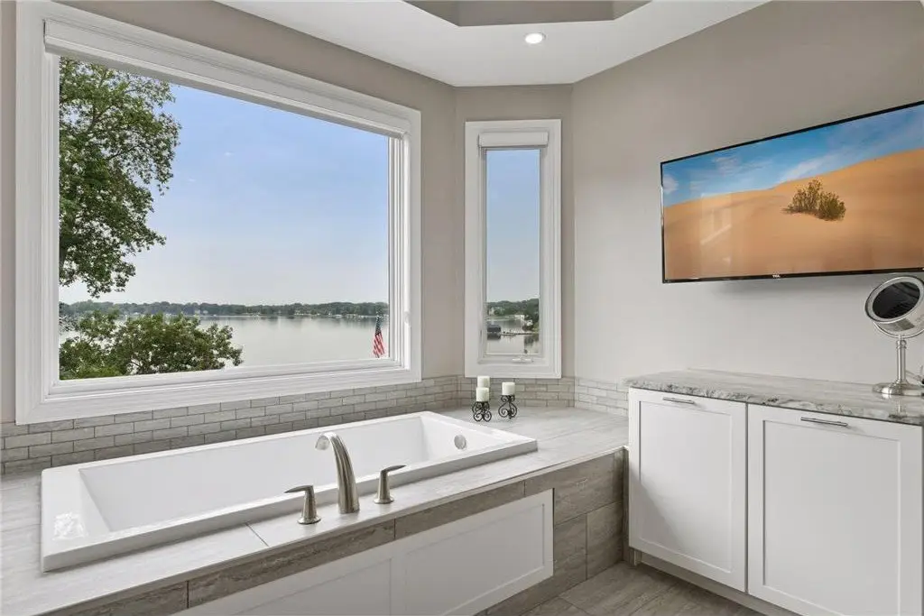 This amazing Lake Minnetonka home sits on 128 feet of south-facing shoreline overlooking Jennings Bay. A refreshing 20 x 40-foot saltwater pool and tranquil waterfall feature and beautifully manicured landscaping seamlessly connects the pool area to the lakefront. This exceptional home is filled with natural light, dramatic vaults, stunning lake views, hardwood floors, and amazing updates throughout. A vaulted wall of windows showcasing long lake views takes center stage. The redesigned chef’s kitchen - well-appointed with premium amenities, an informal dining area with deck access + bayed sitting area are the heart of the home. Main level living convenience includes the primary suite with stunning bath with steam shower and soaker tub, a walk-in primary closet with center island, a vaulted office, laundry, mudroom and two additional baths on this main level. The walk-out lower level is entertainment ready with its large family room offering a gas fireplace with stone surround & large doors which slide open to connect to the pool area + an adjoining 2nd kitchen and billiards/game area. Also find three bedrooms and three baths, and a huge workshop and second laundry and storage areas. Geothermal heating and cooling and sound system throughout the house. Incredible curb appeal with circular concrete drive, mature landscaping, and room for six cars between the upper and lower garages.