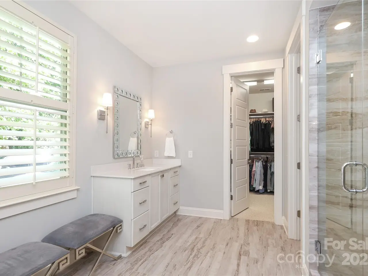 Primary suite with spacious bedroom, bathroom, and closet areas
