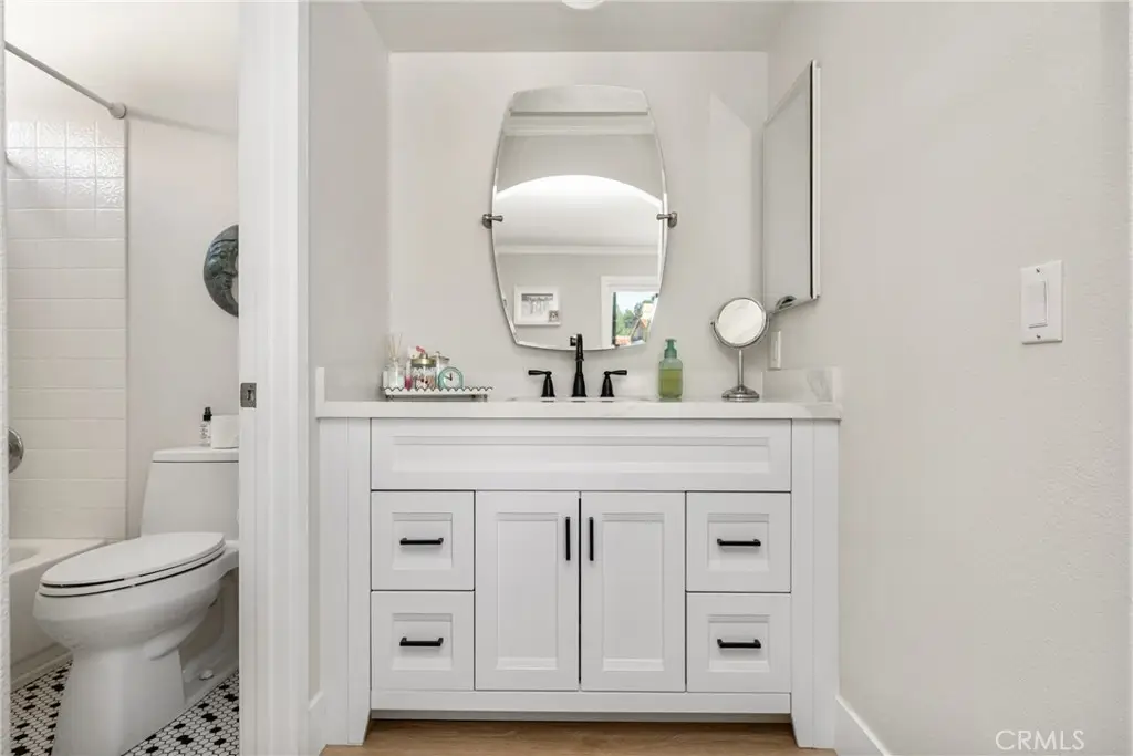 Beautiful upgraded 3 bedroom home (main floor bedroom does not have a closet). So many upgrades that have been done in the last 5 years includes: house re-piped, new front door, rain gutters, exterior of house painted, front porch re-tiled, 3 sliding doors have been replaced, new tile on front porch, roof up to the crown has been replaced, 2 new vinyl gates on the side of the house, new wrought iron fence across the back of the house, 2 pergolas covering both sliders, tankless water heater has been installed, HVAC has been replaced, downstairs fireplaces have been refaced and mantles added, downstairs bathroom has an updated sink, faucet, toilet, vanity with quartz counter and a new mirror, kitchen has a updated microwave, cooktop and oven, new etched glass door on the pantry and shelves have been replaced, primary bathroom shower has been enlarged and has a custom glass shower door, upgraded sinks faucet and toilet, new countertop with quartz, upstairs bathroom cabinet has been replaces as well as sink and faucet, al flooring has been replaced. This home is immaculate!!! Enjoy the exclusive Lake Mission Viejo and all the amenities. Close to shopping, schools and parks