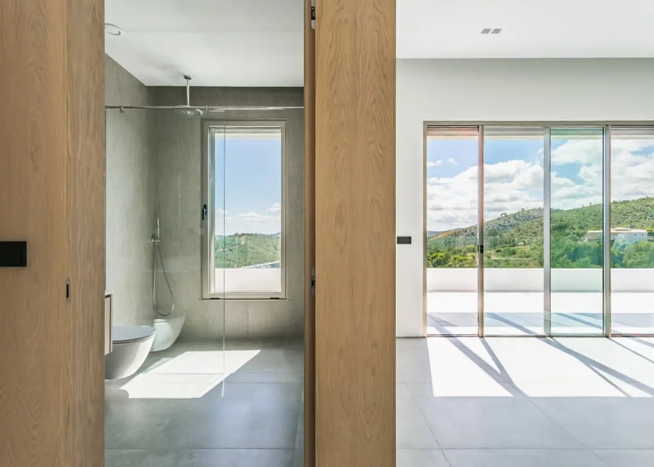 This fantastic three-bedroom luxury villa, all en suite, is located very close to the Monchique thermal baths, with stunning views of the mountains and the coast on the horizon. With a modern and unique architecture, spread over two floors, all the rooms are designed to take advantage of the wonderful view and the existing outdoor spaces have, like the interior, maximum comfort and harmony. On the upper floor, we find the three spacious suites, with access to the spectacular balcony that runs the width of the house. Going downstairs, or using the elevator, we find an open-plan kitchen, living room and dining room with fantastic areas, with sophisticated details and finishes in every corner. Outside, in addition to the generous terrace, there is also a surprising infinity pool and a spectacular garden that values privacy and tranquility and fits in perfectly with the landscape and beauty outside. Outside the villa, there is private parking for up to four cars. This villa is set in an area of true natural beauty, unique in the Algarve region, surrounded by greenery, just 15 minutes from the region's best beaches, and around 45 minutes from Faro International Airport. CHARACTERISTICS: Plot Area: 2 000 m2 | 21 528 sq ft Area: 300 m2 | 3 229 sq ft Deployment Area: 215 m2 | 2 314 sq ft Bedrooms: 3 Bathrooms: 4 Energy efficiency: A+ FEATURES: 3 bedrooms Fully equipped kitchen Balcony / Terrace Elevator Garden Infinity pool Private parking