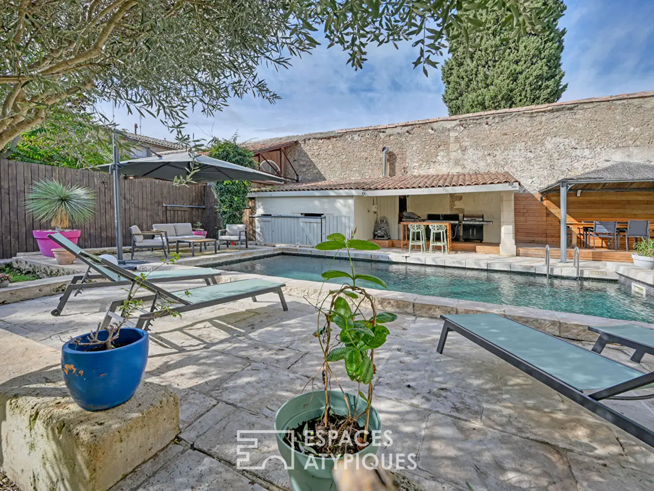 Located in the heart of Montagnac, near Pezenas and the Thau lagoon, discover this superb village house with 390 sqm of living space. Completely renovated with taste, this former distillery combines charm and large volumes, and offers generous outdoor spaces. The house rises on two levels and includes four large bedrooms, an office, a games room and a spacious living room. On the ground floor, you will find a bright living room of 81 sqm, a large office, and a games room of 57 sqm which can also be used as a second living room. The first floor houses the night area, made up of four beautiful bedrooms with generous dimensions ranging from 31 sqm to 49 sqm. Some have their own bathroom, others a mezzanine. They all have one thing in common: they are spacious and full of charm. Outside, a garden sheltered from view invites you to enjoy a pleasant relaxation area with swimming pool, summer kitchen and terrace. This quiet character house is located a stone's throw from the center of Montagnac and benefits from easy access. ENERGY CLASS: D / CLIMATE CLASS: B Estimated average amount of annual energy expenditure for standard use based on 2021, 2022 and 2023 energy prices: between EUR2,350 and EUR3,250 Information on the risks to which this property is exposed is available on the website Georisques Additional information * 7 rooms * 4 bedrooms * Outdoor space : 1005 SQM * Property tax : 4 345 €