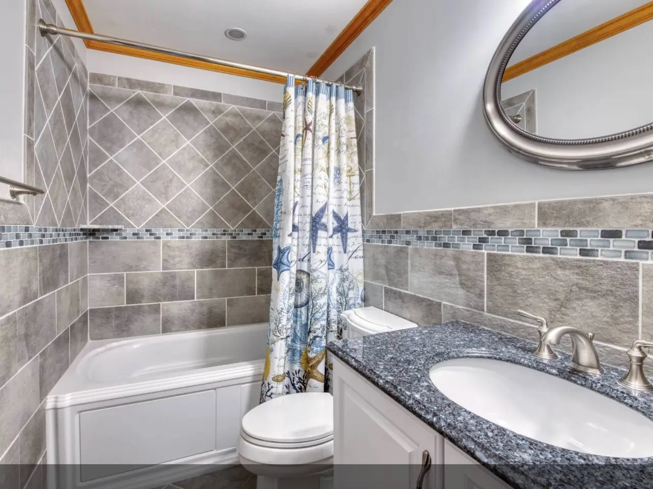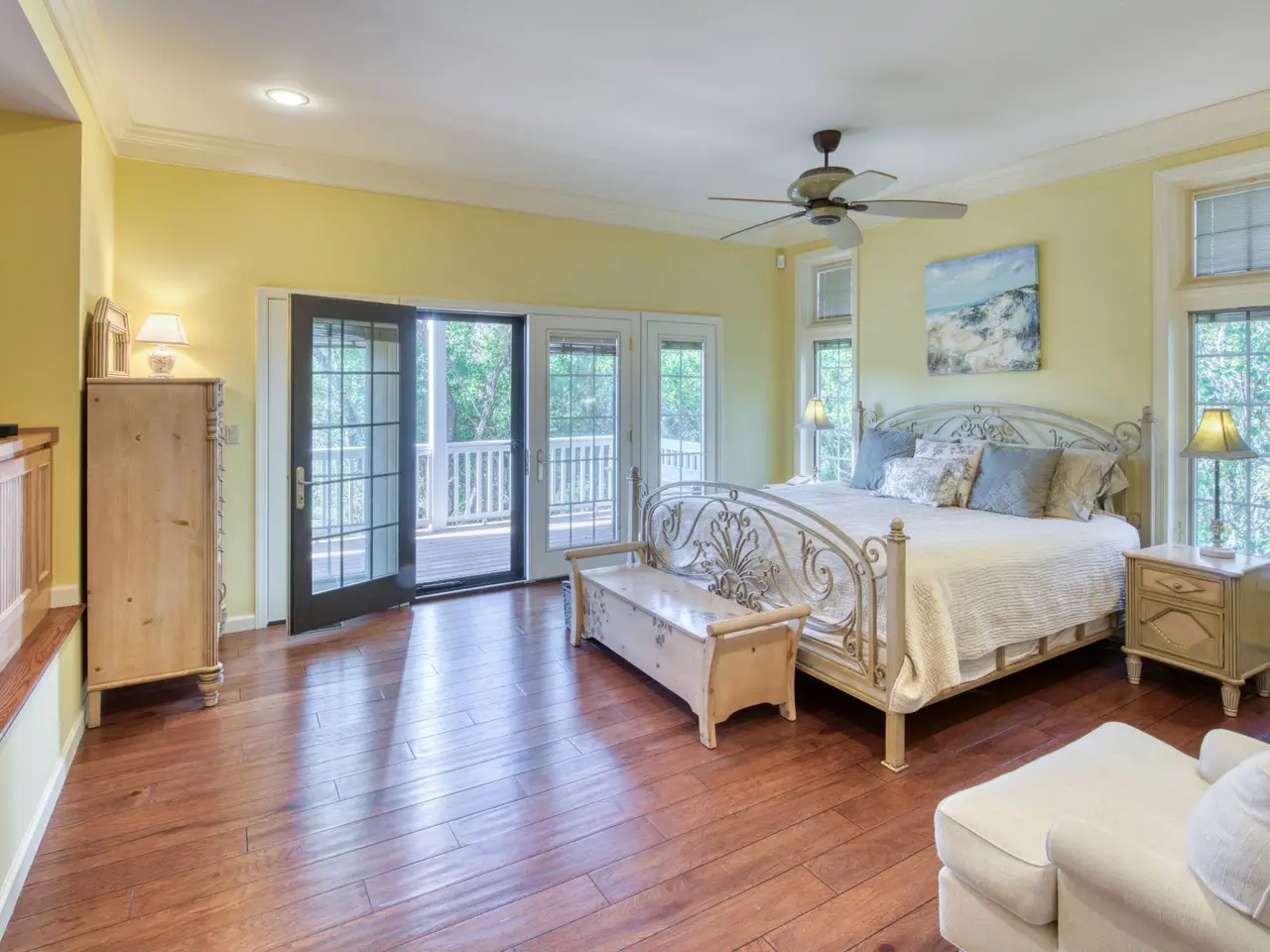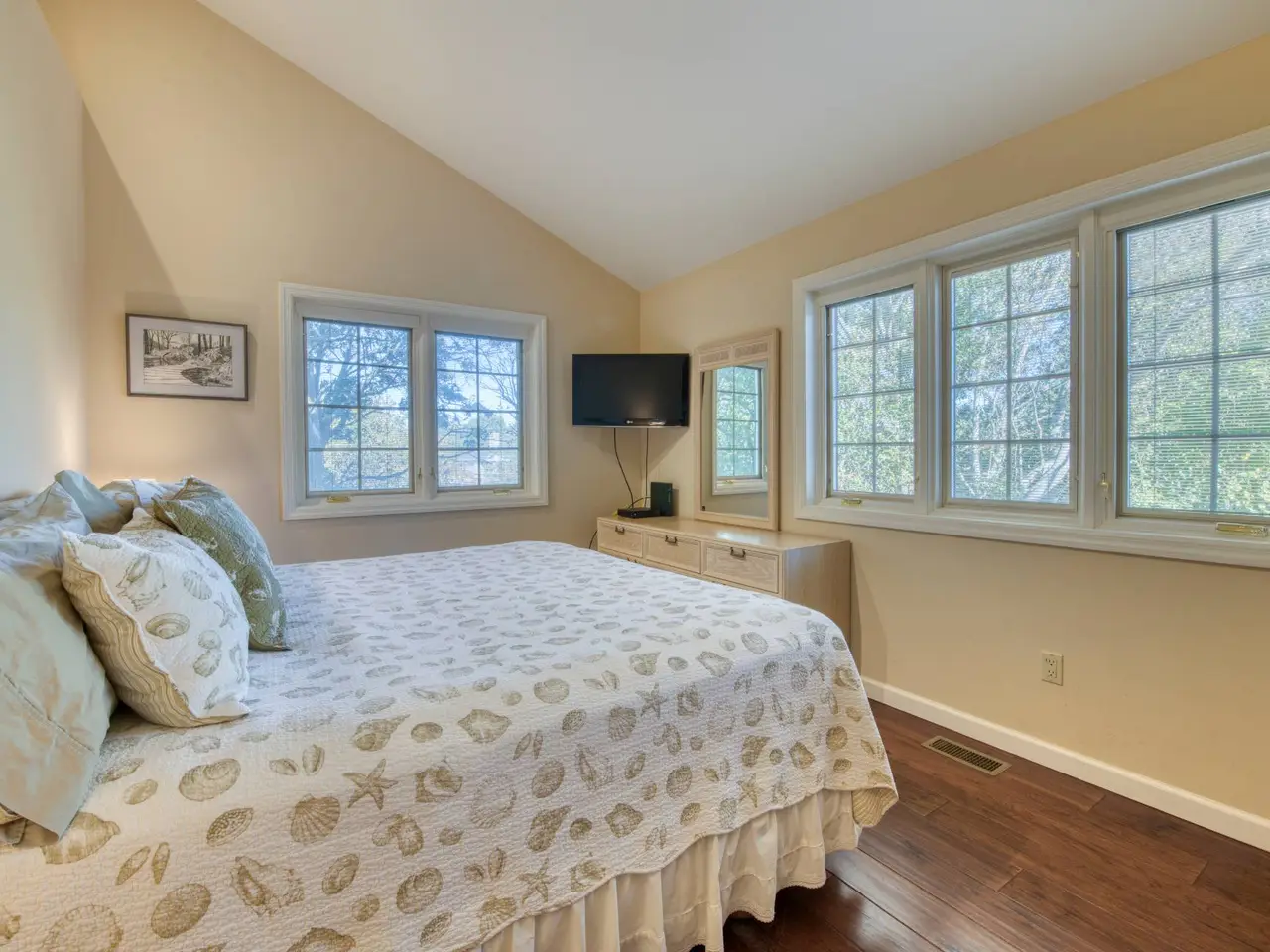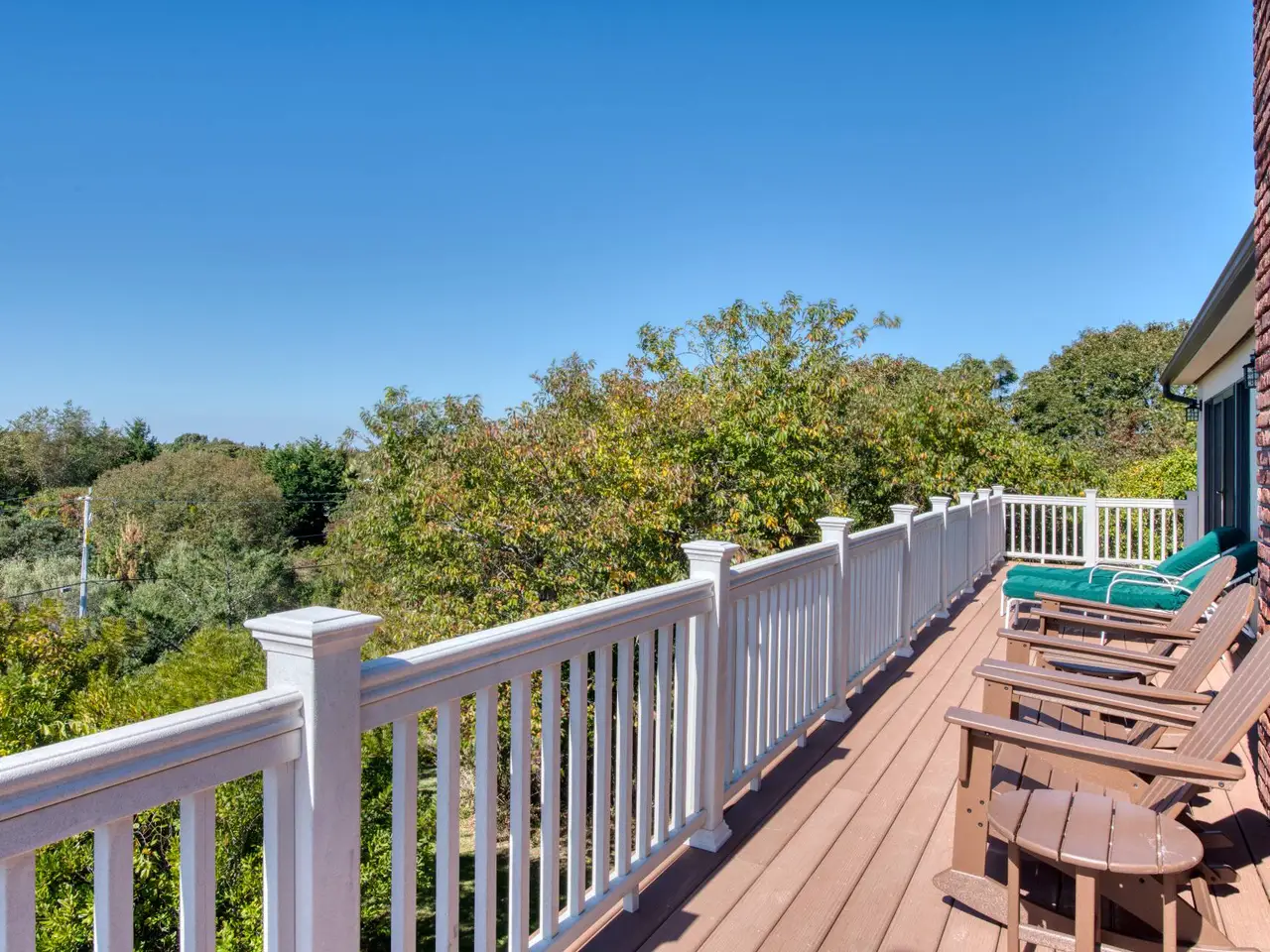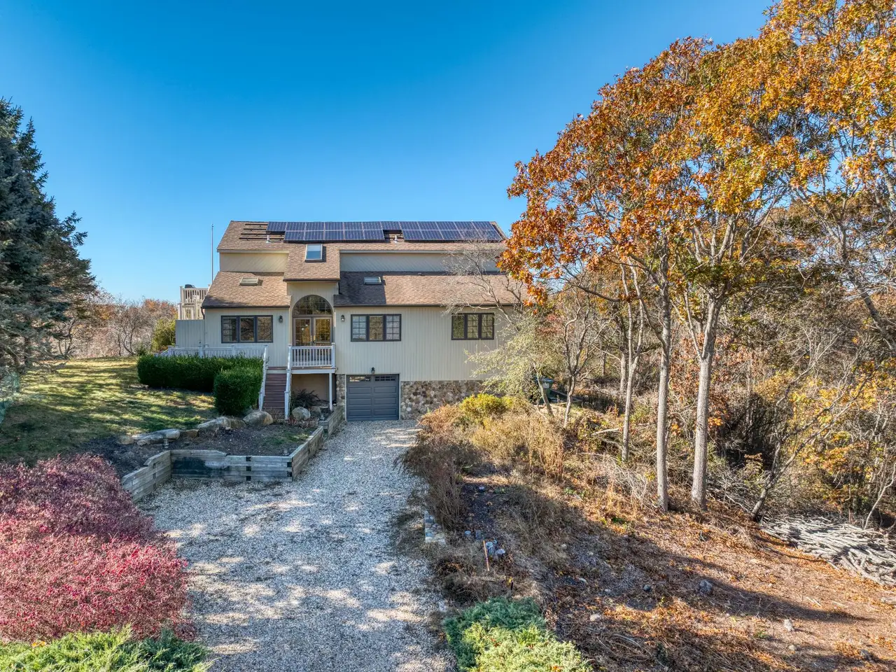 Nestled on a shy three quarters of an acre, this five bedroom, four and a half bath home offers the perfect balance of luxury and comfortable living. This three-story property features over 4,000 square feet of thoughtfully designed space, including two levels of wrap-around decks. The kitchen includes expansive counter space, a large island with room for five, stainless steel appliances, and a generous walk-in pantry. The adjacent dining room, with a center fireplace, comfortably seats ten and leads to a vaulted ceiling living room, large enough to host two separate lounging areas. French glass doors span the length of the floor and open to the upper deck, where you can enjoy Montauk sunsets. The layout of the bedroom floor ensures privacy and comfort for everyone. Two generously proportioned primary suites, each with access to the lower deck, have custom walk-in closets and beautifully appointed baths. Three additional bedrooms are considerably sized and can accommodate queen, king or bunk beds. All are bright and share a large bath. Bonus rooms on the entry floor offer versatility for multiple design possibilities. With an additional full bath and a good deal of closet space, create a gym/yoga space, wine cellar or home office. Currently configured as a den, office and additional sleeping quarters, this space can easily be adapted to suit your needs. Survey with pool envelope, winter glimpses of the water, and a strong rental history complete this offering!