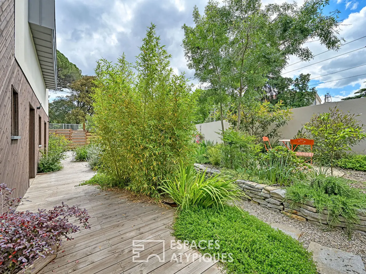 Located in the Arceaux district of Montpellier, this 140 sqm contemporary house combines modern comfort, ecological features and an exceptional living environment.Nestled in a quiet environment, it benefits from a completely unobstructed view of a green setting and exceptional brightness thanks to its large openings. A house designed for a gentle urban life.Only a few steps from the tramway, local shops, the market, schools and a 10-minute walk from the Écusson, this house offers a unique quality of life as well as quick access to the outside of the city.The ground floor opens onto a 55 sqm open living room/kitchen overlooking the landscaped garden, a master suite with shower room, a storeroom, and a separate toilet. The upper floor provides access to a 32 sqm solarium, 3 bright bedrooms, a bathroom, a separate toilet, and a laundry room.And finally, the basement invites the development of 2 rooms on 58 sqm: games room, workshop, gym or storage:A space of opportunity is offered to your imagination. A rare opportunity in one of the most sought-after areas of Montpellier.Do not hesitate to contact us for more information or to organize a visit.Energy Class: A - 48 / Climate Class: A - 1Estimated average amount of annual energy expenditure for standard use, established from the energy prices of the years 2021, 2022, 2023: between EUR590/year and EUR850/year.Information on the risks to which this property is exposed is available on the georisques website for the areas concerned.REF. 11024Additional information* 6 rooms* 3 bedrooms* 1 bathroom* 1 bathroom* 1 floor in the building* Outdoor space : 320 SQM* Parking : 2 parking spaces* Property tax : 3 241 €Energy Performance CertificatePrimary energy consumptiona : 48 kWh/m2.yearHigh performance housing*48kWh/m2.year1*kg CO2/m2.yearA*B*C*D*E*F*GExtremely poor housing performance* Of which greenhouse gas emissionsa : 1 kg CO2/m2.yearLow CO2 emissions*1kg CO2/m2.yearA*B*C*D*E*F*GVery high CO2 emissionsEstimated average annual energy costs for standard use, indexed to specific years 2021, 2022, 2023 : between 590 € and 850 € Subscription IncludedAgency feesThe fees include VAT and are payable by the vendorMediatorMediation Franchise-Consommateurswww.mediation-franchise.com29 Boulevard de Courcelles 75008 ParisInformation on the risks to which this property is exposed is available on the Geohazards website : www.georisques.gouv.fr