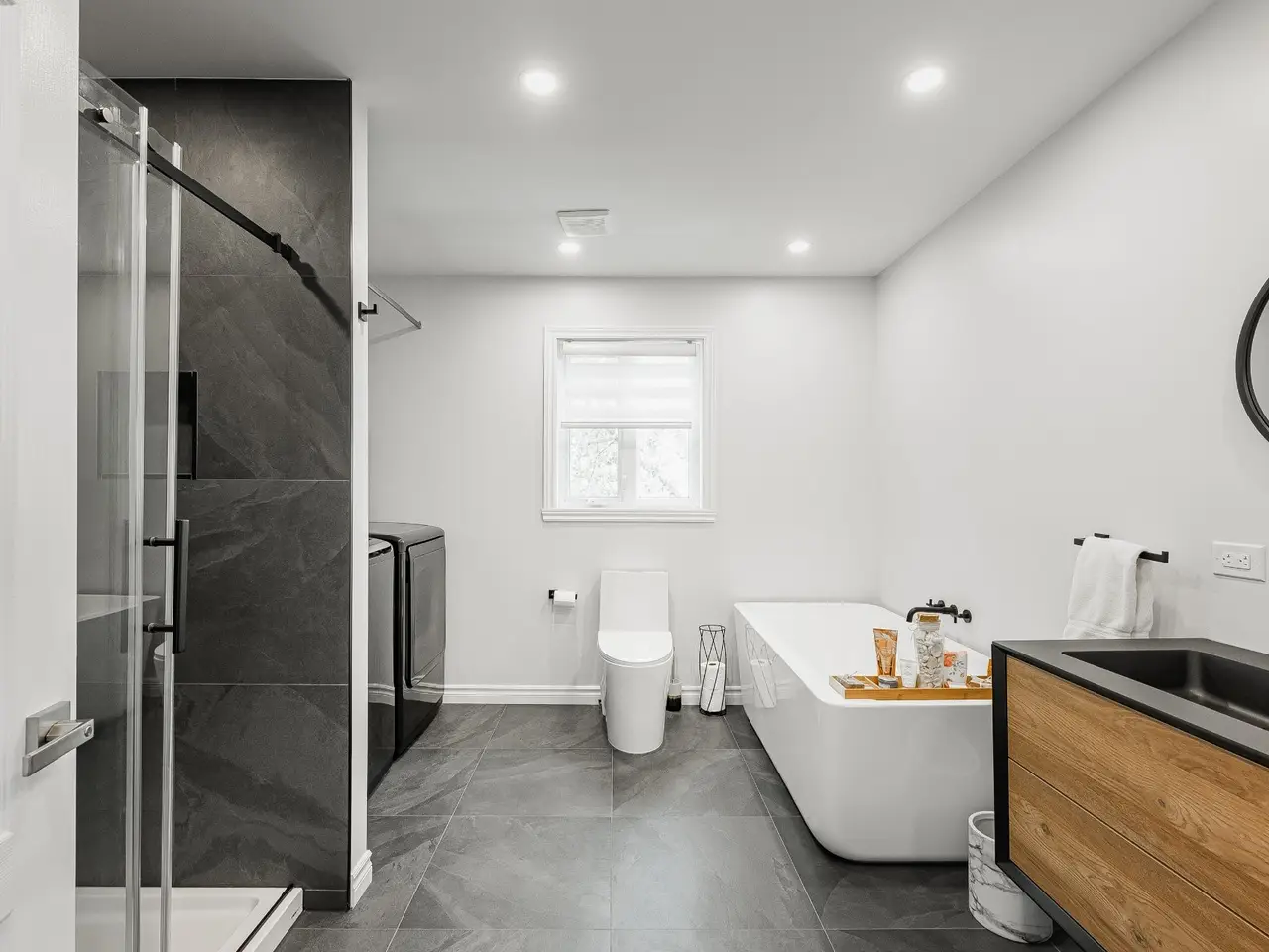 Turnkey elegance meets lush nature in this modern contemporary home in the heart of Ile-Bizard. Fully renovated and move-in ready, it offers 4 large bedrooms, 3.5 fully renovated bathrooms, refinished hardwood floors, and a luxurious primary suite with walk-in and ensuite bathroom. The open-concept kitchen and living room flow seamlessly, complemented by a private dining room and a fully finished basement. Outside, enjoy a private backyard with inground pool and no rear neighbors. Steps from Golf Saint-Raphael, The Royal Montreal, and Bois-de-l'Ile-Bizard Nature Park.