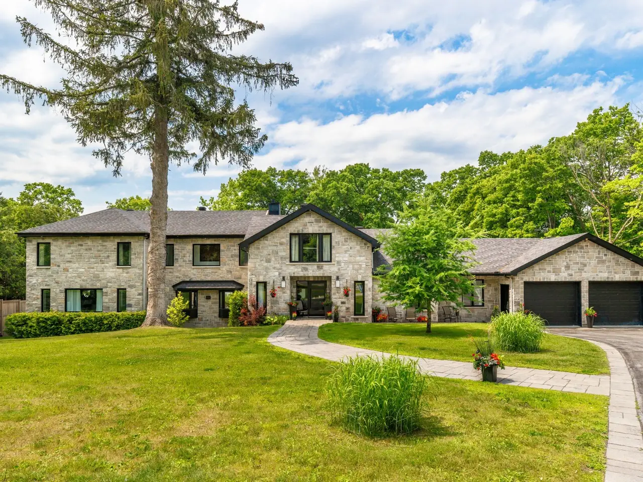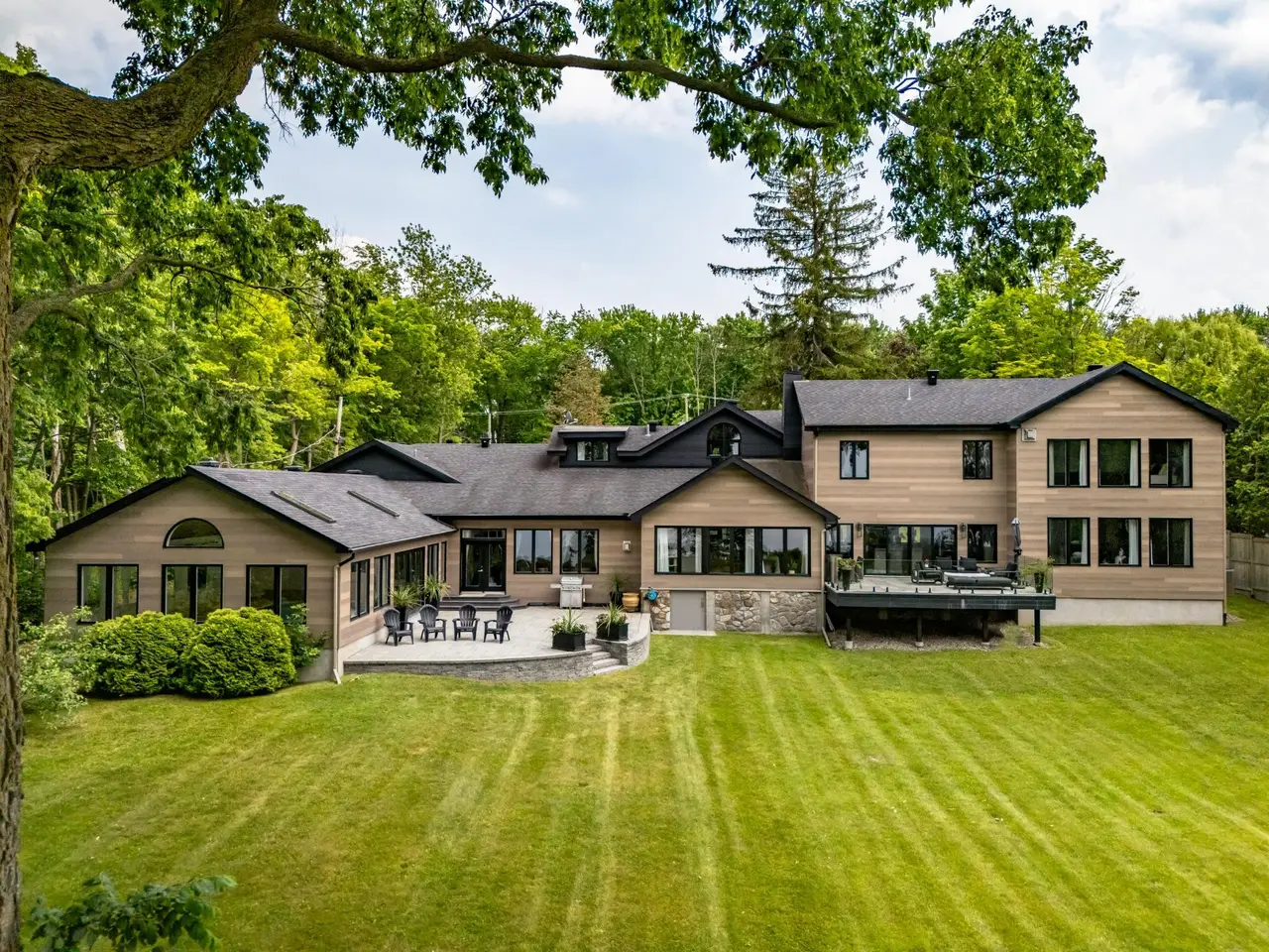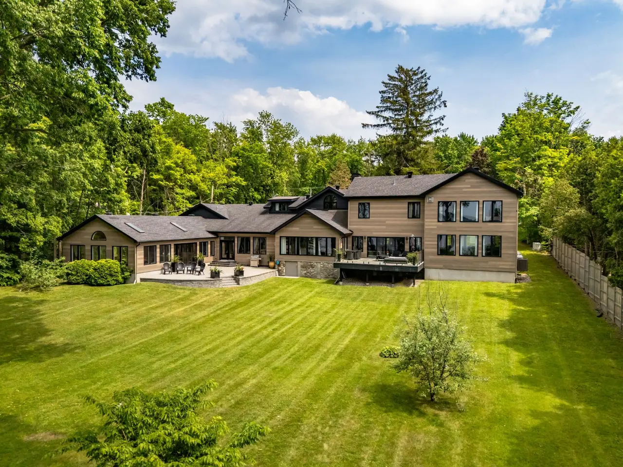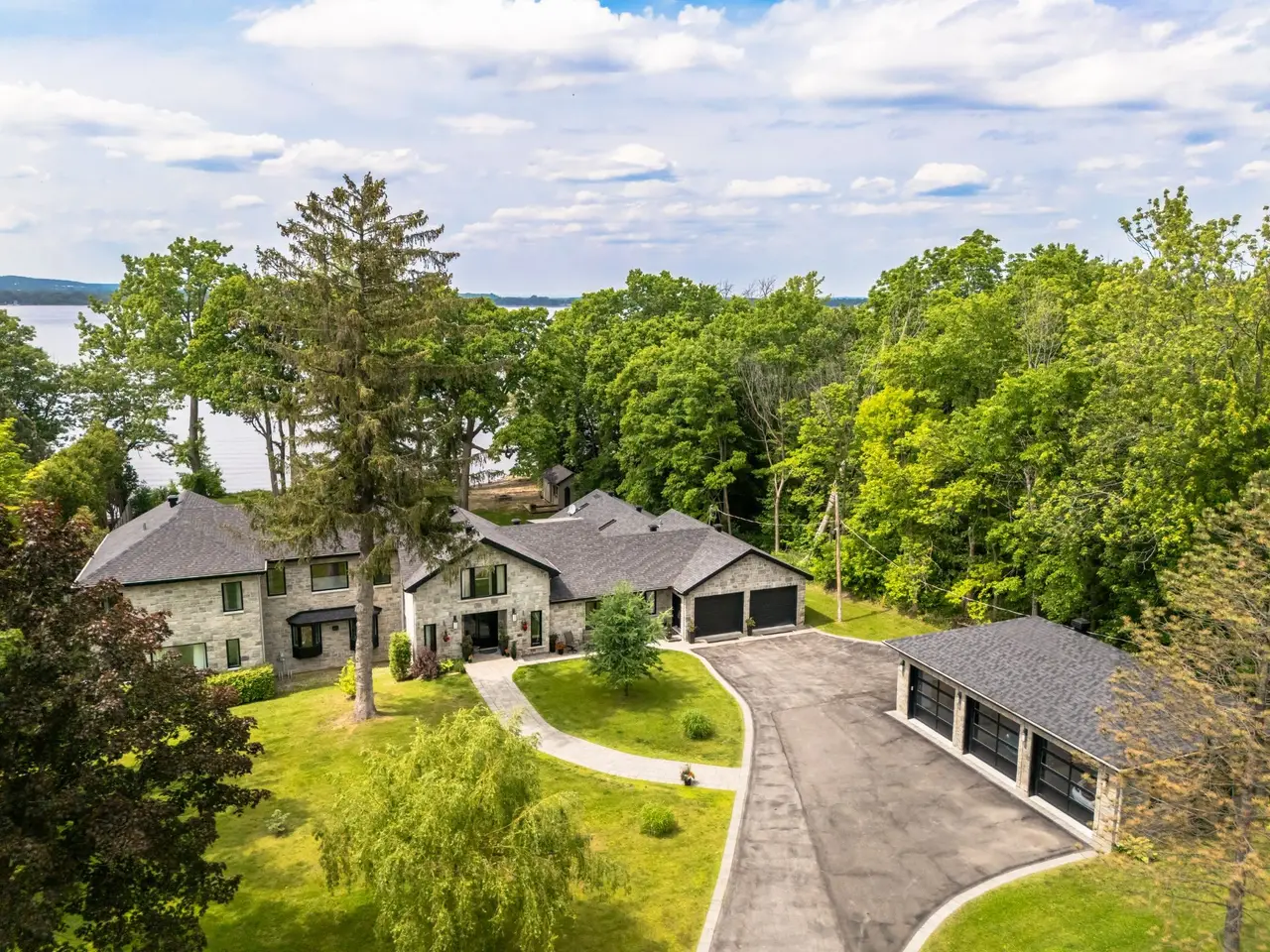 Handsome and imposing waterfront estate, in prime location, w/ panoramic views; this all-stone 7,348 sqft residence, set on a large 52,842 sq ft lot, was built and renovated to a high standard, w/ quality fixtures & finishes, and boasts 5-car garage(2 + 3),7 bedrooms,6.5 bathrooms(4 ensuite),luxury indoor pool pavilion + shower,bar,4 fireplaces, grand oak staircase(basement to 2nd floor),porcelain and hardwood floors (1st & 2nd),chef's custom wood kitchen with premium appliances, dinette, formal dining room,2 living rooms, games room/family (cinema) room, primary bedroom suite, custom walk-ins, balcony & large unistone patio, private backyard & sandy beach.