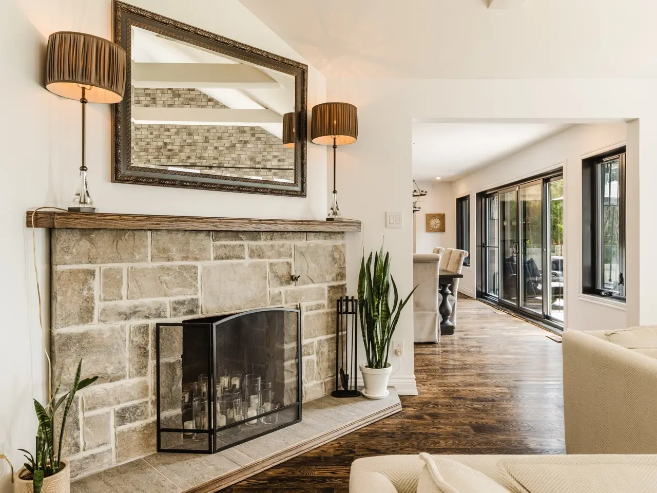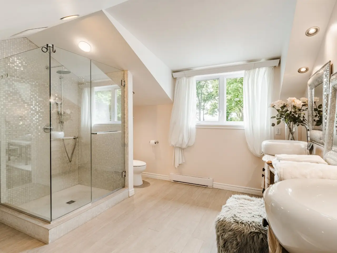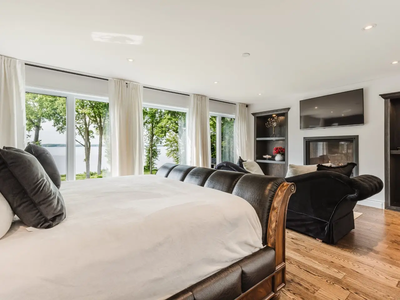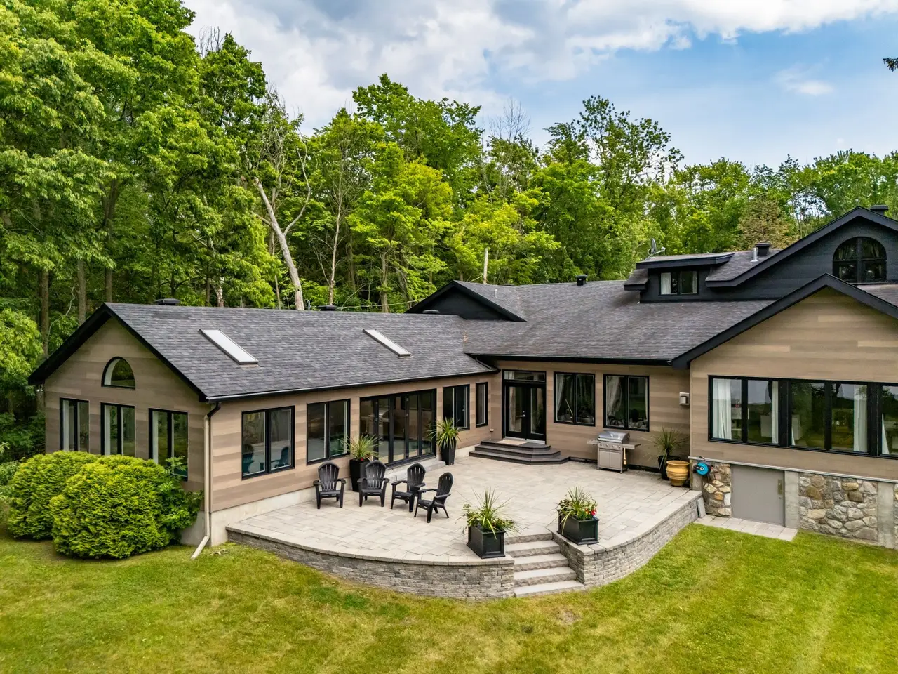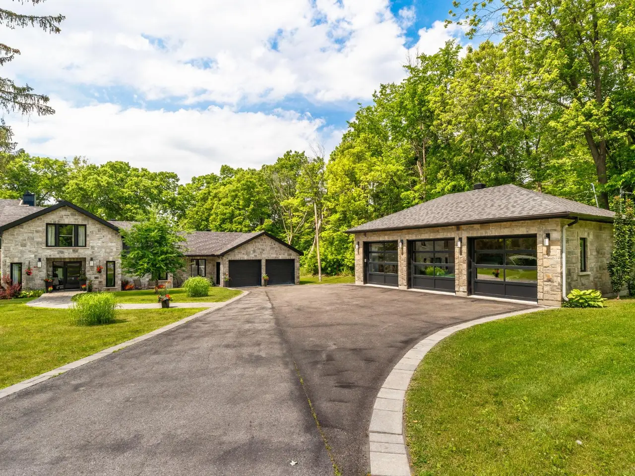 Handsome and imposing waterfront estate, in prime location, w/ panoramic views; this all-stone 7,348 sqft residence, set on a large 52,842 sq ft lot, was built and renovated to a high standard, w/ quality fixtures & finishes, and boasts 5-car garage(2 + 3),7 bedrooms,6.5 bathrooms(4 ensuite),luxury indoor pool pavilion + shower,bar,4 fireplaces, grand oak staircase(basement to 2nd floor),porcelain and hardwood floors (1st & 2nd),chef's custom wood kitchen with premium appliances, dinette, formal dining room,2 living rooms, games room/family (cinema) room, primary bedroom suite, custom walk-ins, balcony & large unistone patio, private backyard & sandy beach.